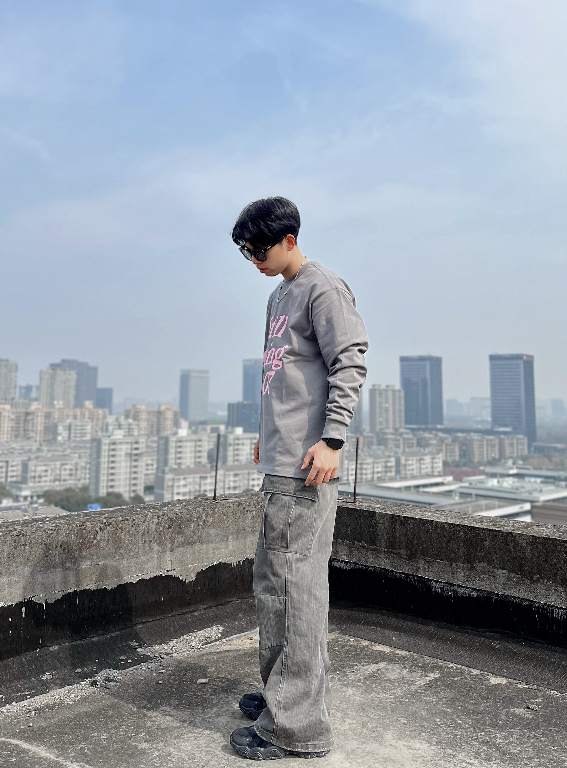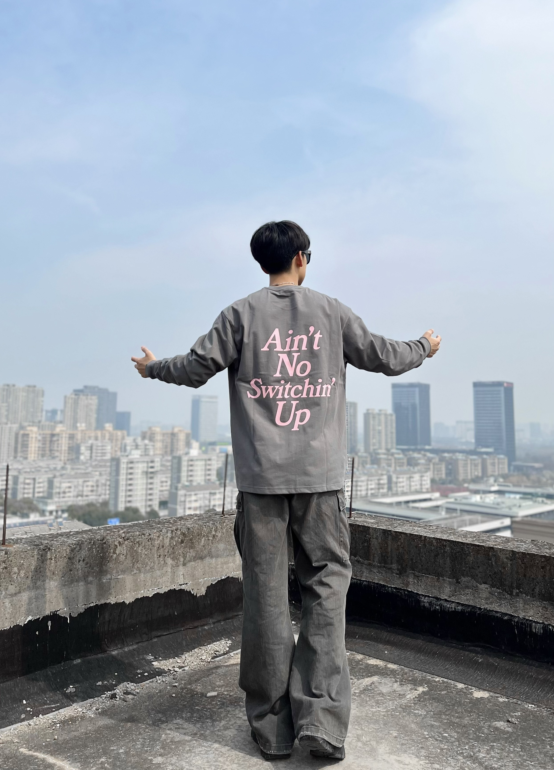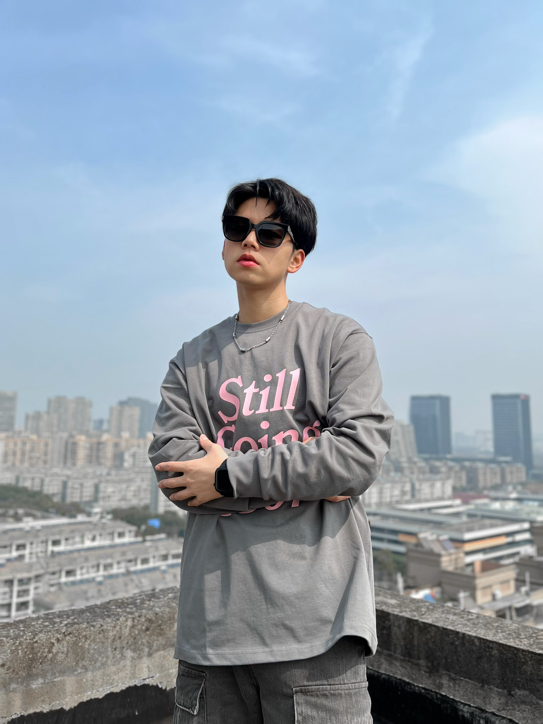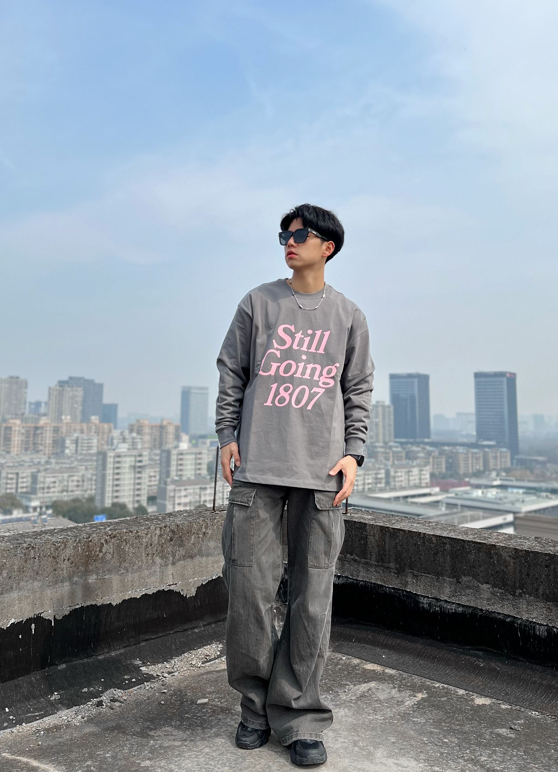 基础款的衣服还得是重磅面料的 今天上身的这件1807的长袖就很不错 260g 纯棉 上身舒适透气也不错 正肩的设计 衣服很好撑起来 秒变双开门 个人177 68kg 穿 XL 宽松