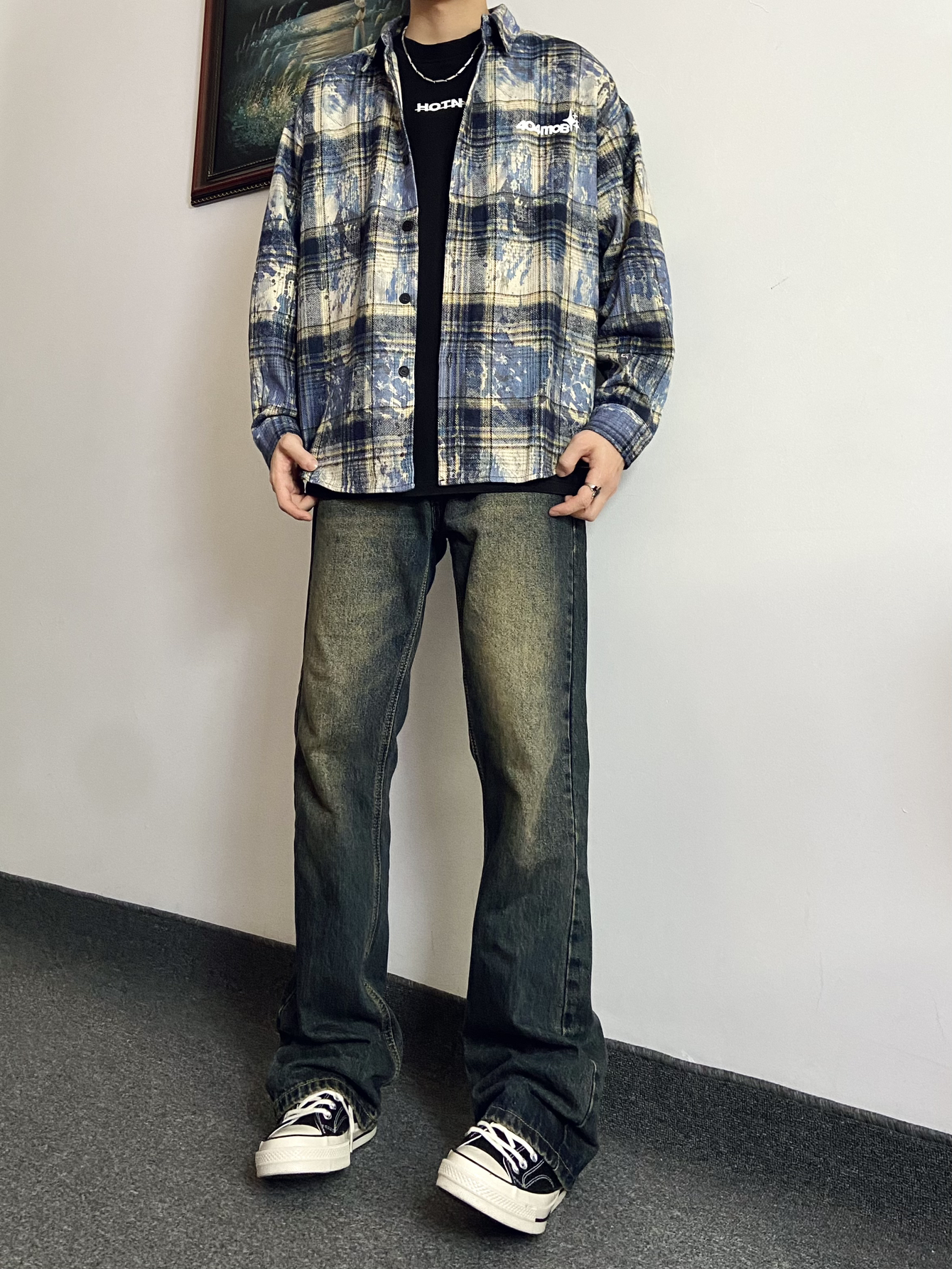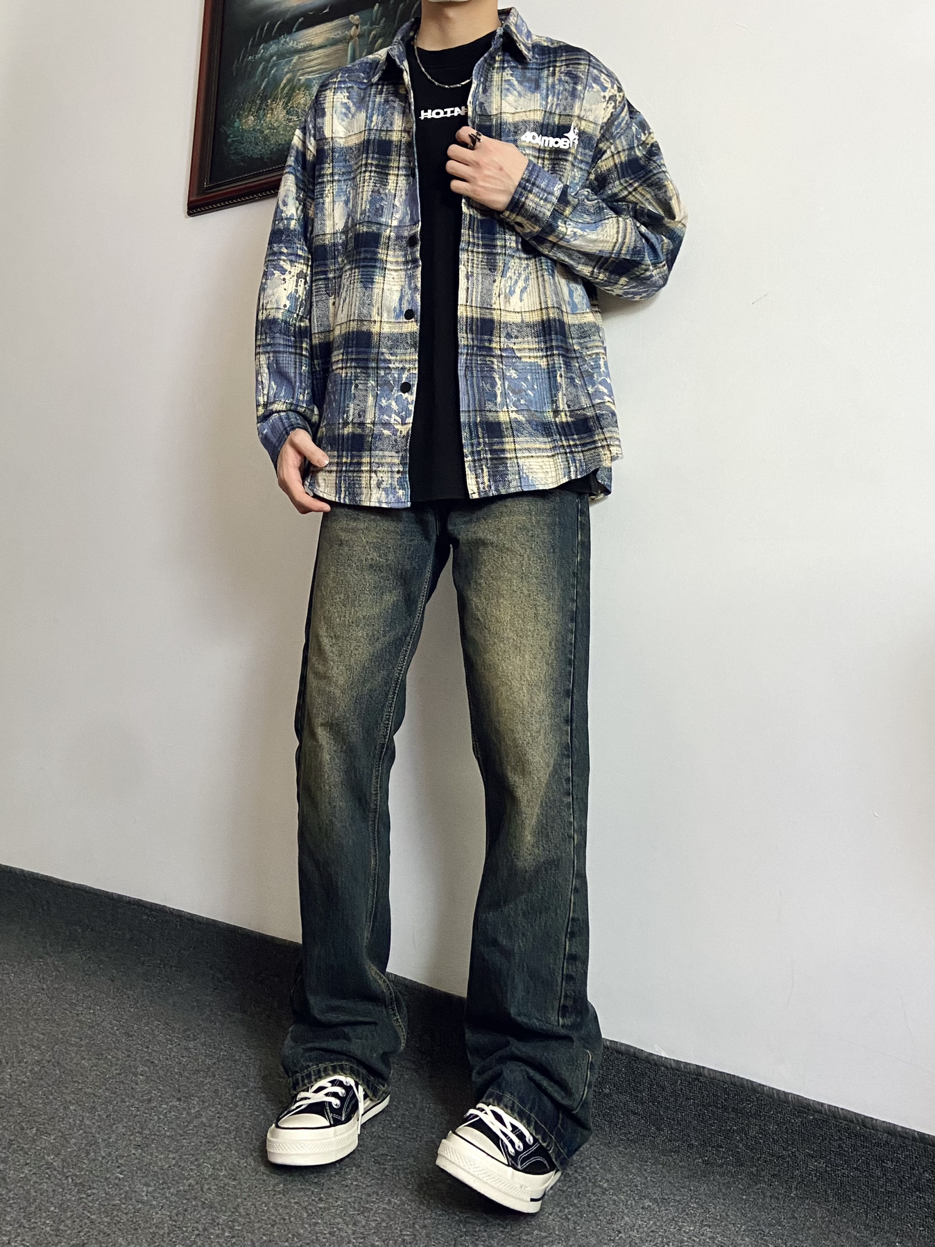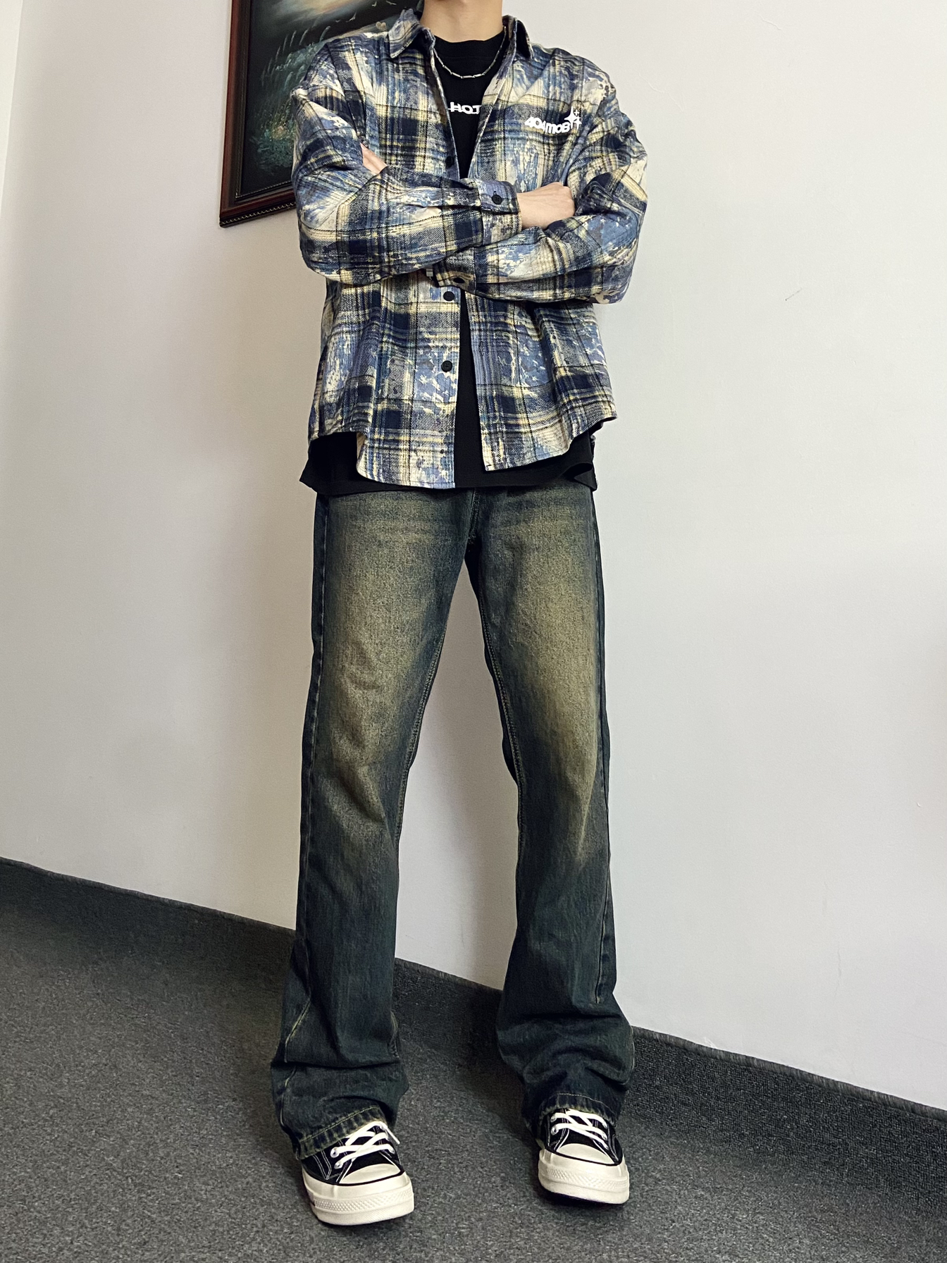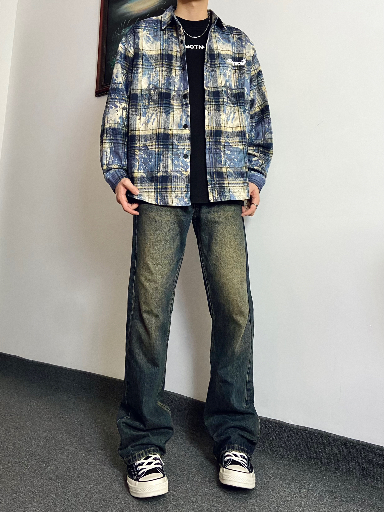 身高|体重:181|130 今日份穿搭: 👕上衣搭配404MOB GANG 美式嘻哈扎染泼墨格子长袖衬衫 扎染工艺的格子衬衫太有设计感,美式街头感满满,宽松的版型,直接当外套或者是内搭叠穿都合适都是帅的 👖裤子搭配UNKNOWTAL 水洗做旧微喇叭弹力牛仔裤 微喇版型带有微微弹力,面料柔软舒适,水洗做旧深蓝色很有复古感,是一款既百搭又显瘦的牛仔裤 每天分享不同好看穿搭,感谢支持!