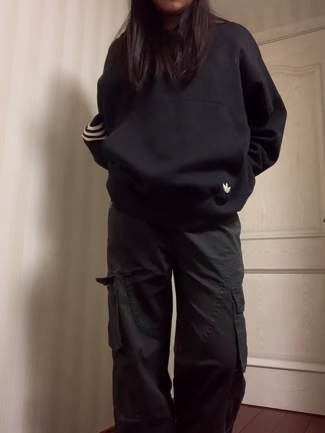 #工装裤 #中性风穿搭 #oversize #无性别穿搭 #阿迪达斯卫衣 #卫衣穿搭 #连帽卫衣 #拍照姿势