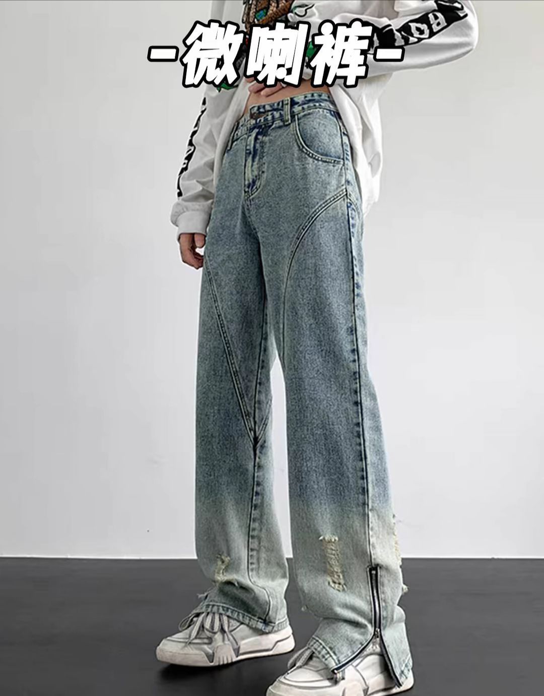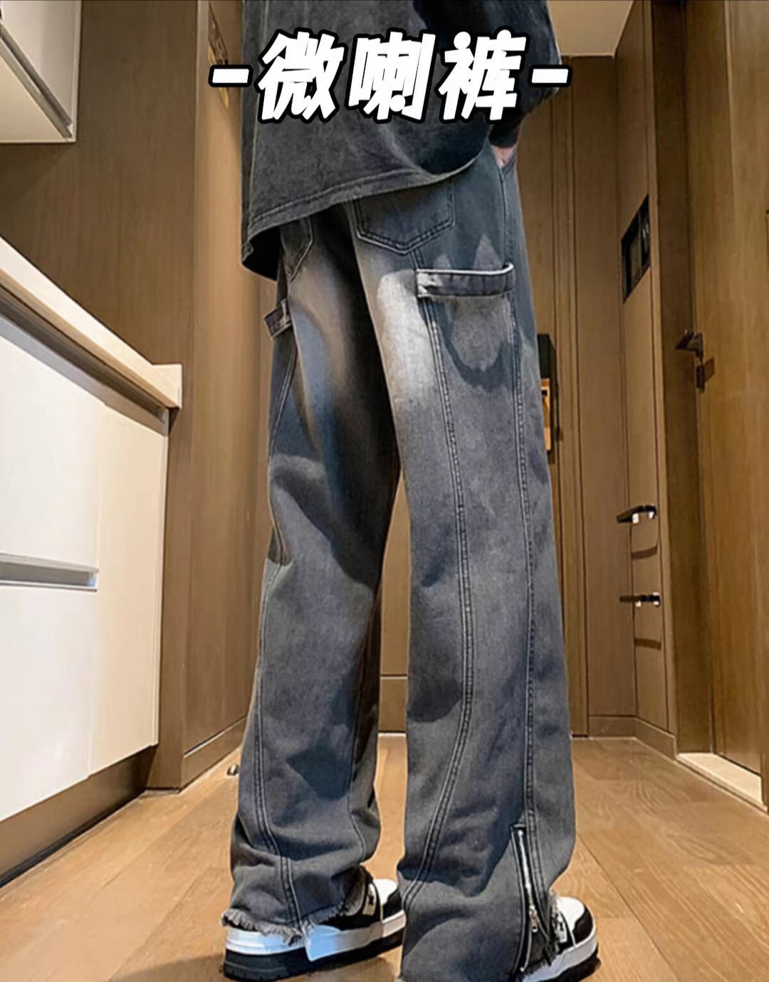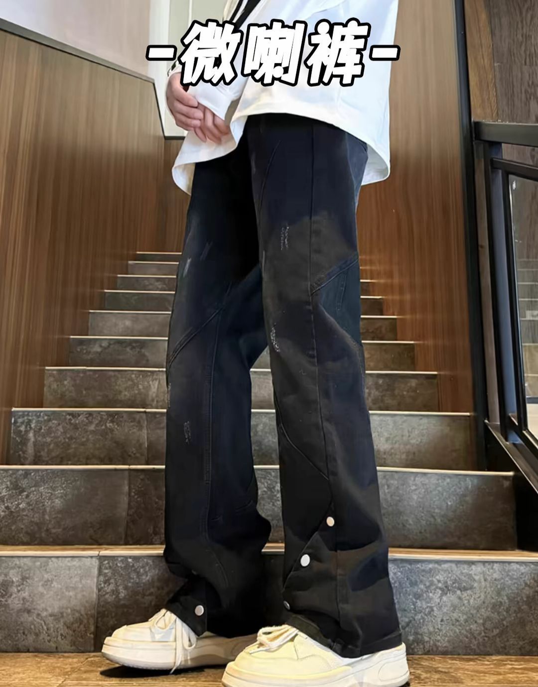 你还在穿那些千篇一律、毫无特色的普通牛仔裤吗?是时候给自己的穿搭加点料了!微喇叭来了!! 它完美融合了复古与潮流元素。微喇叭的裤型设计,巧妙修饰腿型,不管你是O型腿、X型腿,都能轻松驾驭,瞬间拥有笔直大长腿,这不香吗? 面料选用优质牛仔布,柔软舒适又透气,久穿不变形,耐磨耐穿。细节之处尽显品质,精致的缝线、复古的铜扣,每一处都经得起推敲。 日常出行,搭配简约白T和运动鞋,休闲又随性;约会时,换上一...