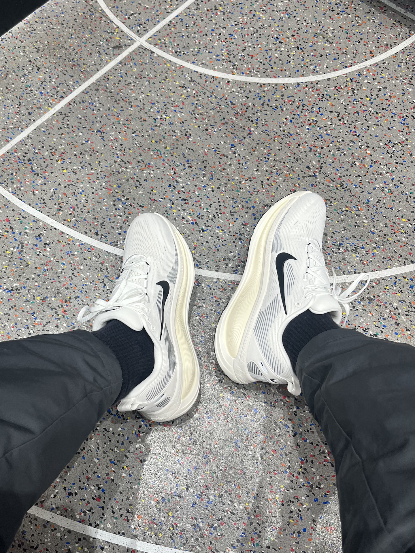 ‼️既喜欢ZoomX泡棉的舒适脚感,又想要ReactX的耐用稳定,这双新款的Vomero 18刚好结合了两种科技泡棉,缓震大升级!!! 🔥中底是全掌ZoomX➕ReactX,双层双密度泡棉,厚度我用尺子量了46毫米左右,上脚后很明显感受到柔软回弹,并且很平稳落地!!! ✔️灰白色比较耐看,也比较适合日常通勤穿着;带有内靴,所以尺码偏小,但鞋舌会比较柔软舒适一些。 ⚠️双层网眼布鞋面,不怎么好清洁,...
