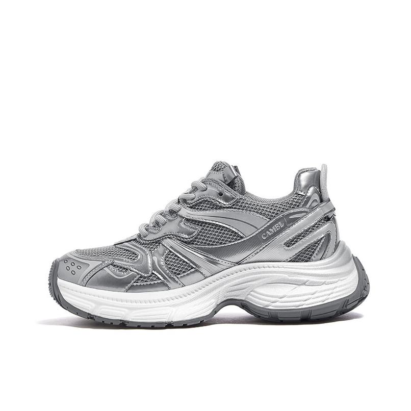 【CAMEL骆驼耀月老爹鞋】这款女鞋巧妙融合甜酷美学与机能设计,5cm厚底瞬间拉长腿部线条,小个子女生轻松驾驭。鞋身采用立体绗缝工艺搭配撞色饰条,既保留老爹鞋的复古轮廓,又注入潮流动感基因。透气网纱内里搭配蜂窝气孔设计,春夏穿着清爽不闷脚。低帮造型适配九分裤、短裙等多种穿搭,轻量化EVA大底兼顾缓震与回弹,逛街通勤全天舒适。从运动休闲到街头混搭,轻松解锁多种风格,是今季不可错过的增高潮搭利器。