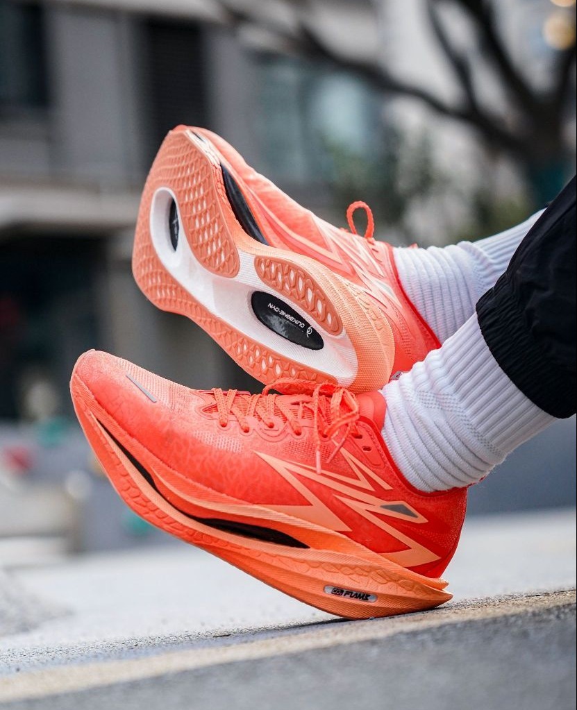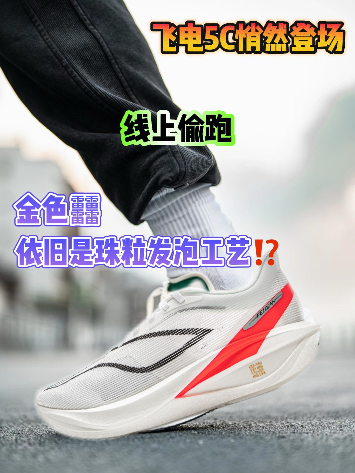 飞电5C,粉色配色! 颜值确实好看! 包裹和鞋脚一体很棒 䨻缓震,脚感舒服! 外底纹路清晰,耐磨不错的 适合马拉松,进阶跑者穿! 新的一天!新的实战跑步鞋