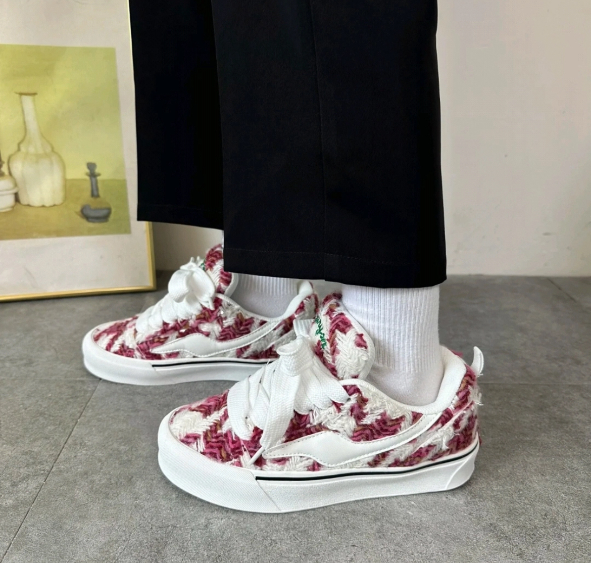 毕加索画作联名面包鞋真的百搭又好看!整体针织鞋面搭配耐磨橡胶大底,内里柔软增高鞋垫加上鞋跟鞋舌加厚处理,脚感舒适不磨脚!设计感满满,价格美丽喜欢的兄弟直接冲!百搭休闲宝藏面包鞋,喜欢的小伙伴快冲,实物图更好看