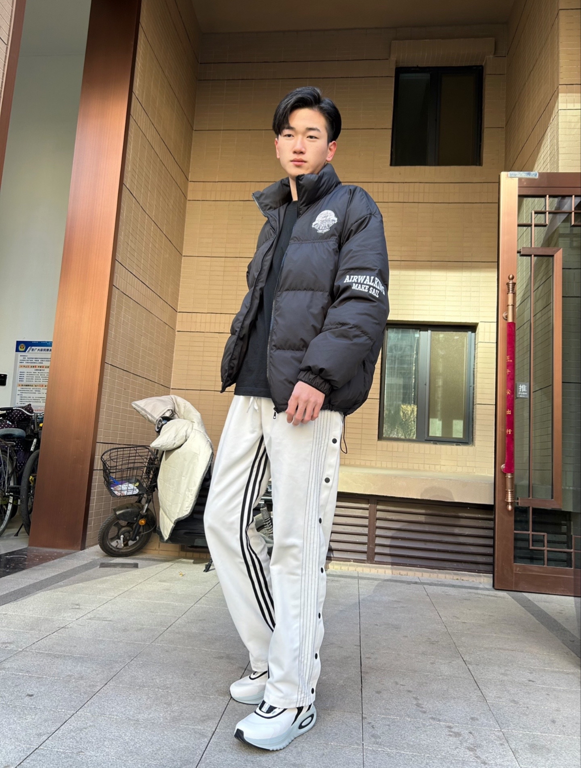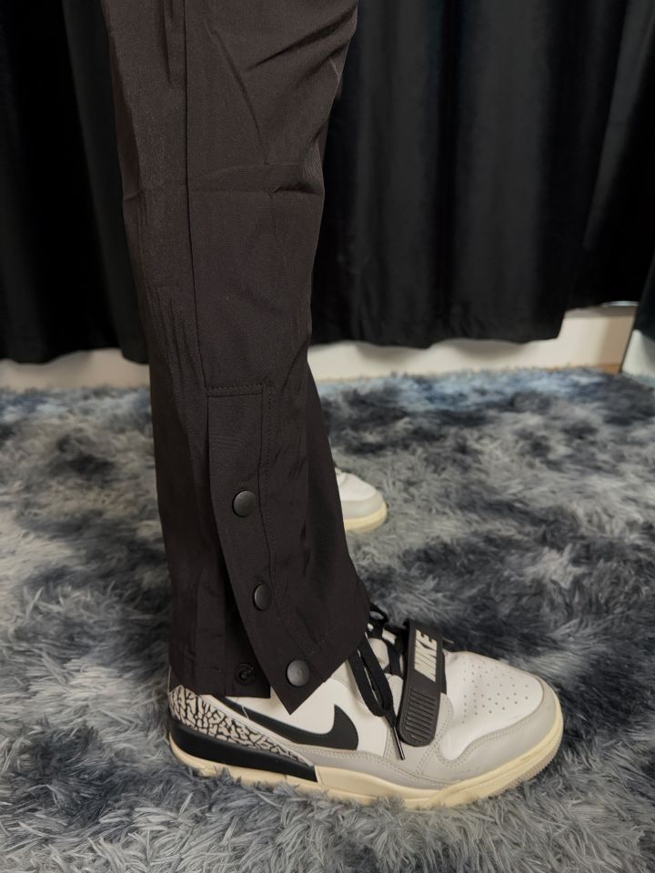 ✨推荐一款我自己特别喜欢的排扣裤 ✨上身百搭舒适,可以适应各种穿搭风格,运动鞋,篮球鞋,拖鞋都可以非常好的搭配。裤脚处的排扣设计使得这条长裤可以一裤两穿,直筒版型和微喇版型,可以很好的修饰腿型,透气效果也十分出色,运动时可以更你带来非常棒的体验! ✨我172,110穿L码 (图源网络侵删)
