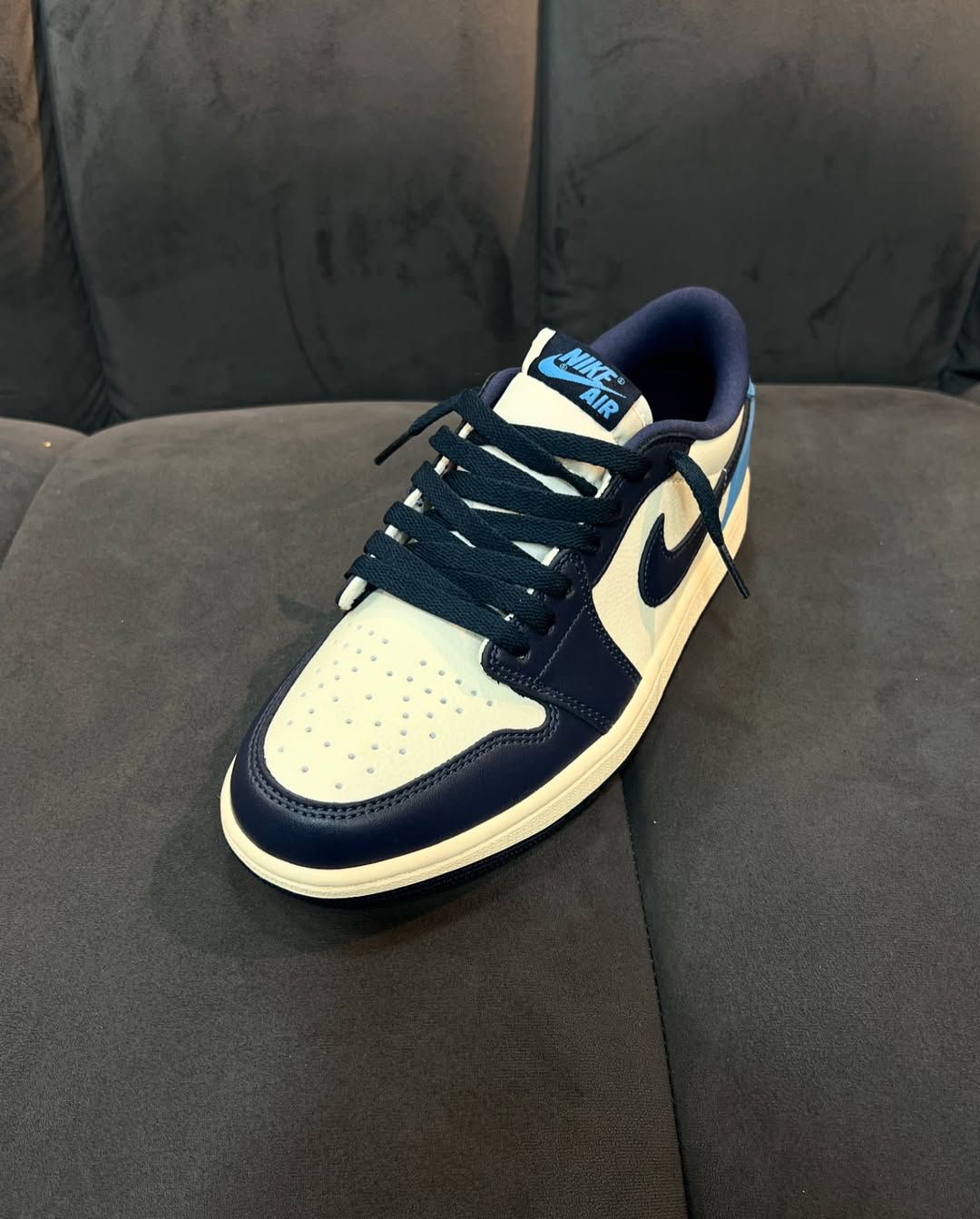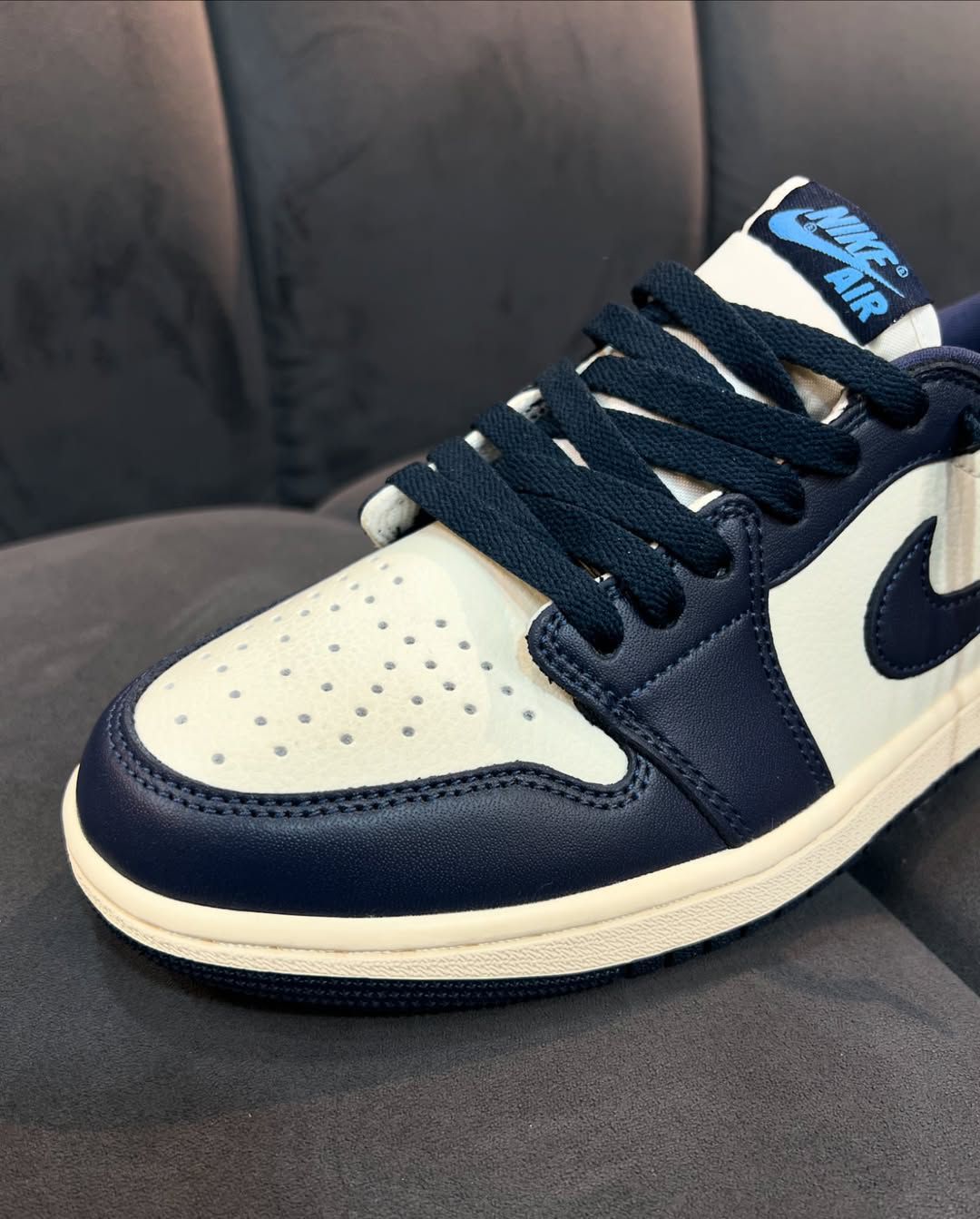 当北卡蓝遇见黑曜石迷雾,这双让鞋柜自动升级的AJ1 Low OG用博物馆级复刻致敬1985年原始模版! 🔮【色彩炼金术】🔮 ▫️鞋头磨砂皮x后跟牛巴革打造奢华触觉盲盒 ▫️海军蓝麂皮叠加冷灰漆皮构成三明治撞色美学 ▫️元年矮鞋舌+复古飞翼Logo唤醒OG玩家DNA ⚓【元年彩蛋】⚓ 鞋垫暗藏元年芝加哥红白蓝三色缝线 鞋带孔金属银涂层复刻元年生产模具质感 🚢【都市航海记...