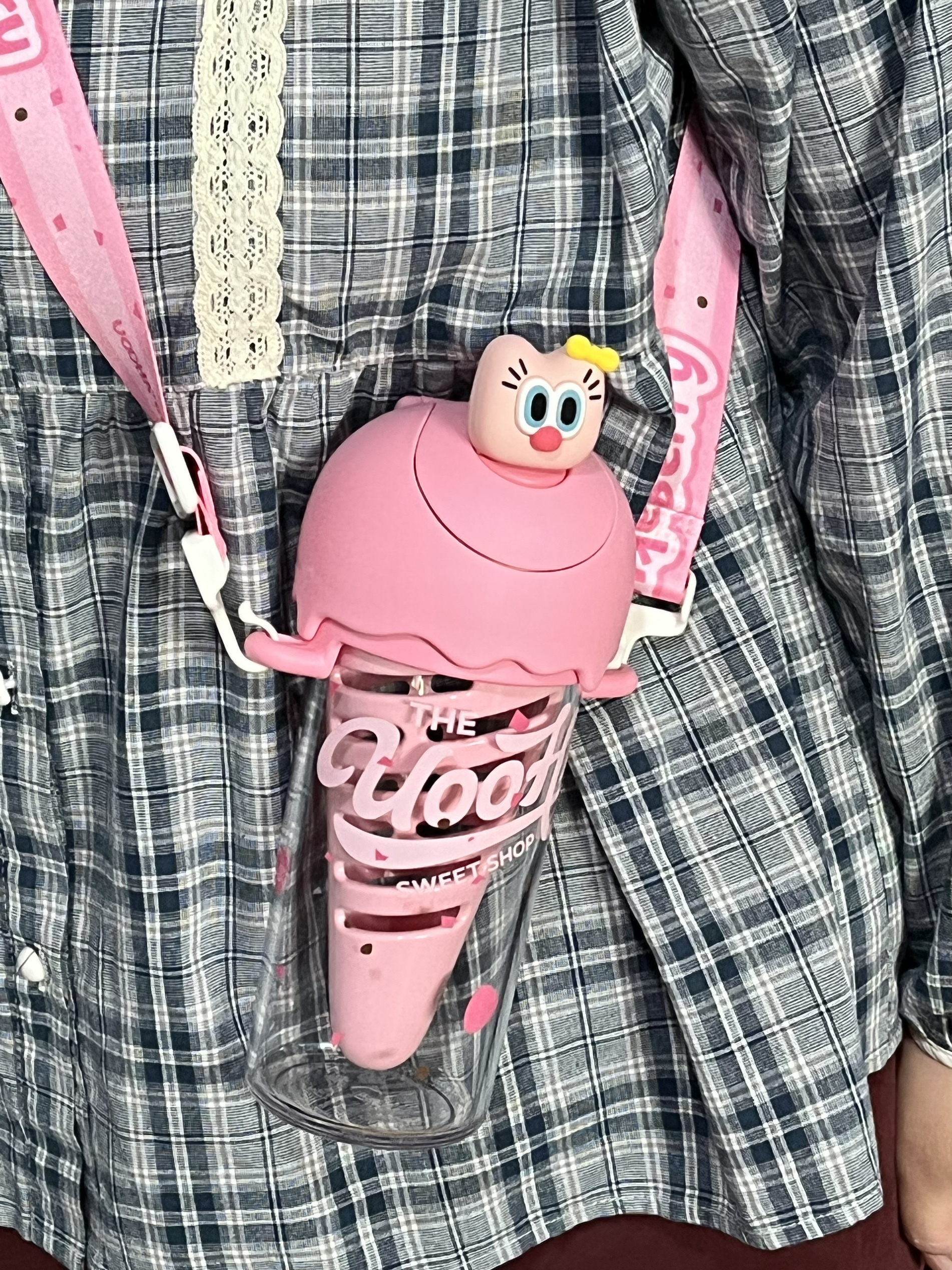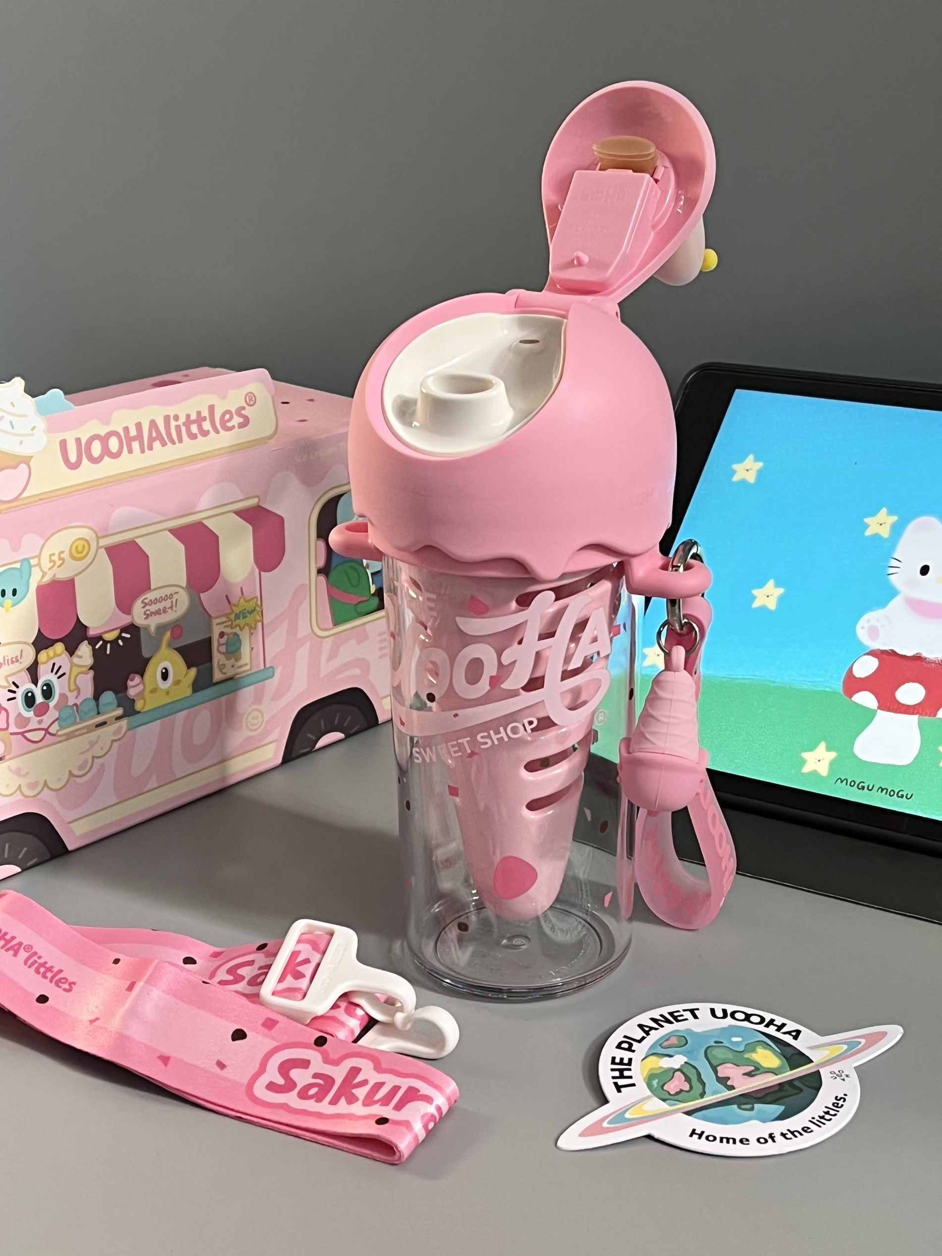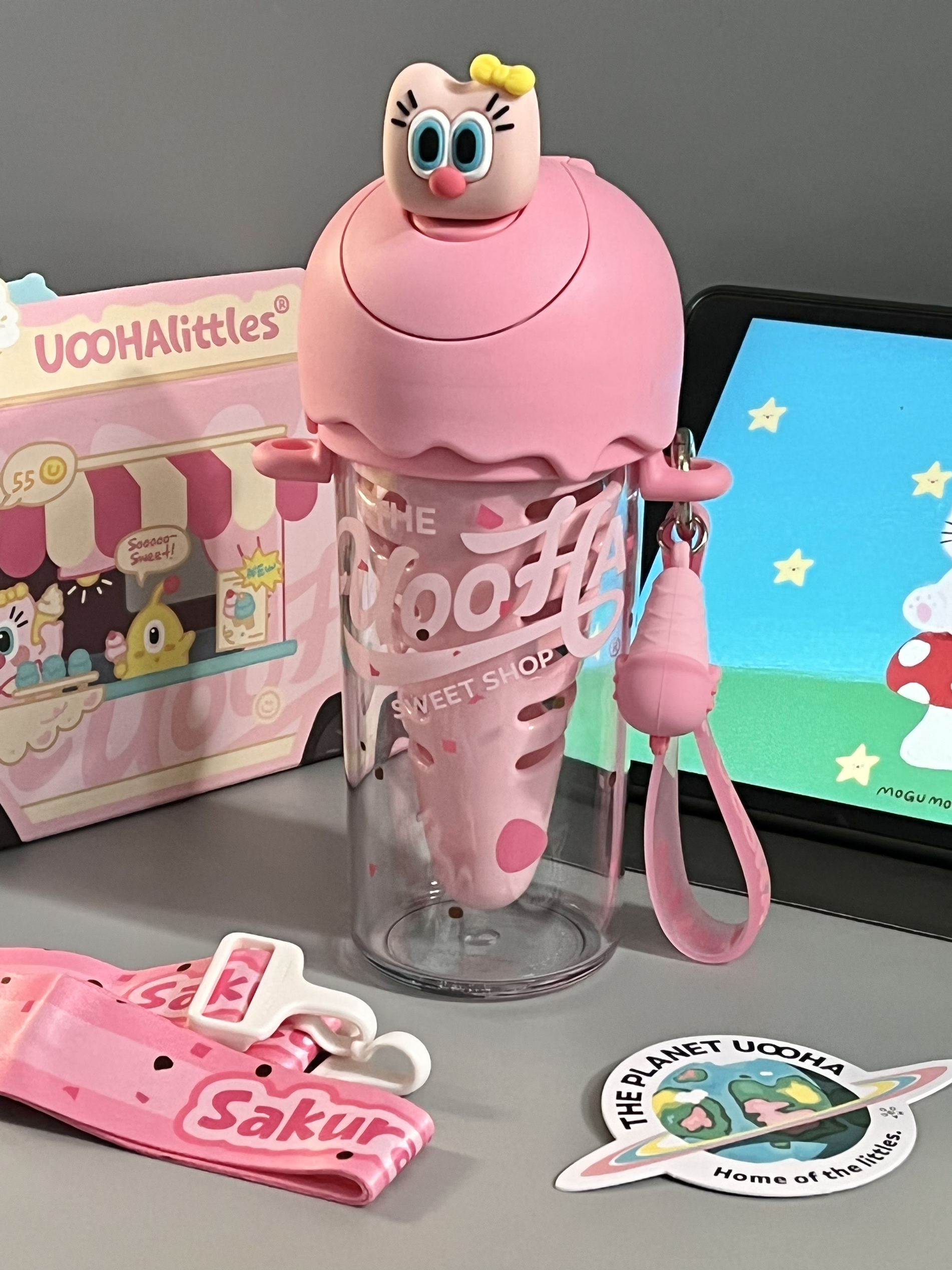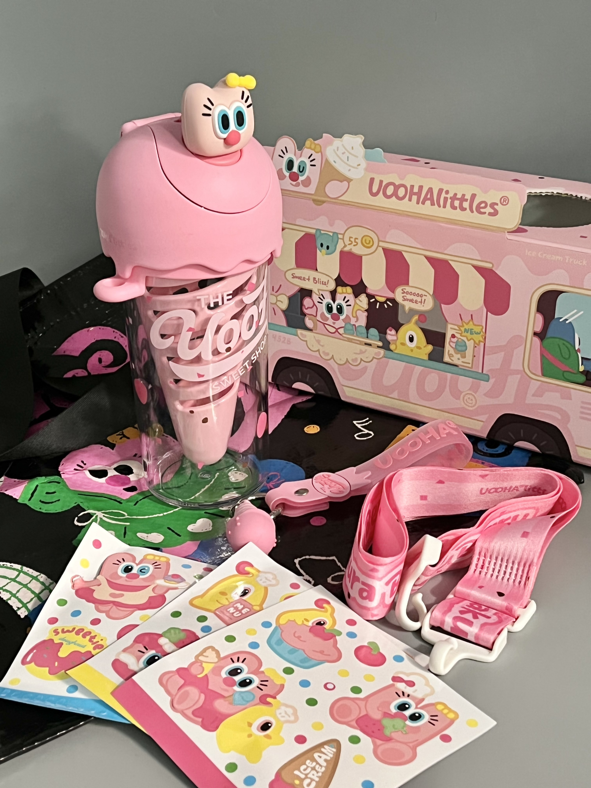 是UOOHA的甜筒杯耶! 粉嘟嘟的好有少女心 满满一盒有贴纸、手提绳、挂件、背带、礼袋… 里面自带一个甜筒果仓,泡果茶也太方便咯 480ml大容量,还是食品级材质,倒热水也不怕有味道,喝水什么的太有幸福感啦 女孩汁收到这样的礼物别提多开心咯