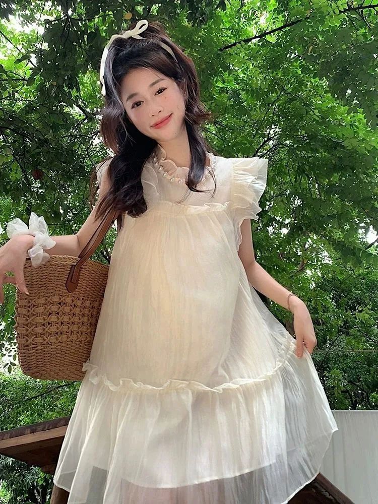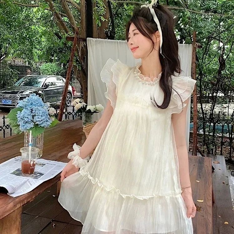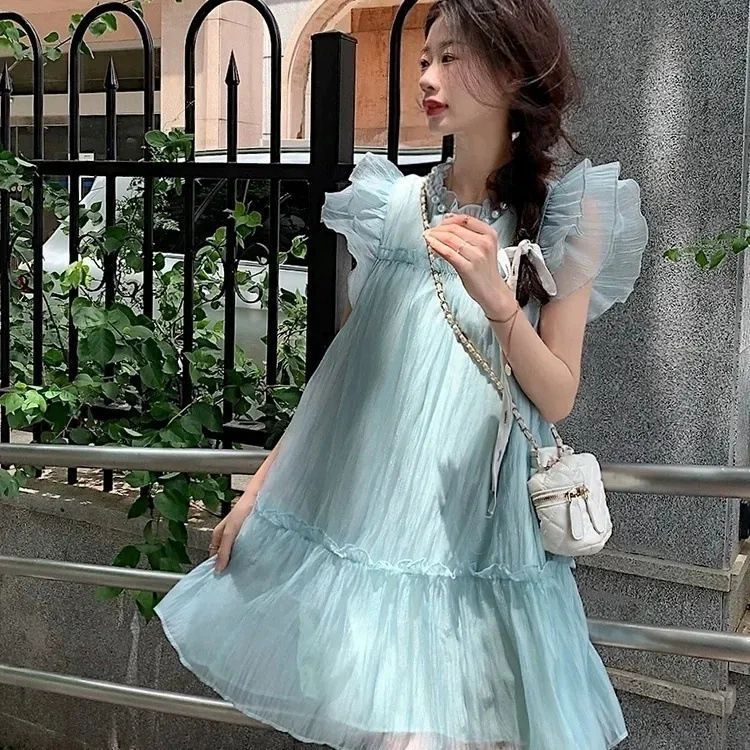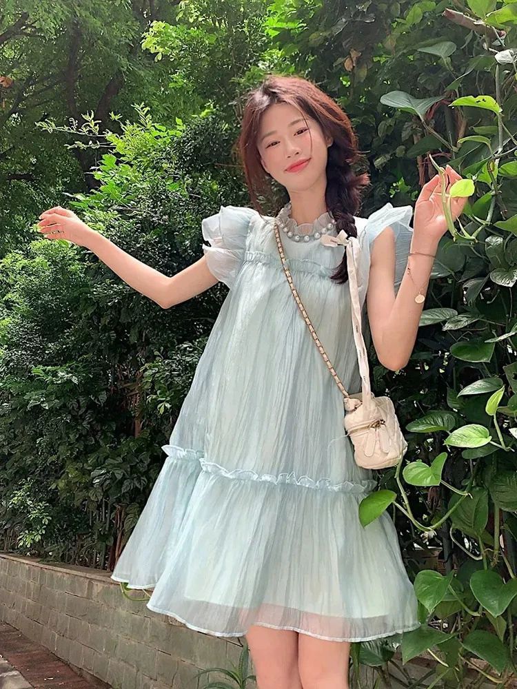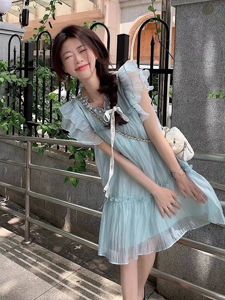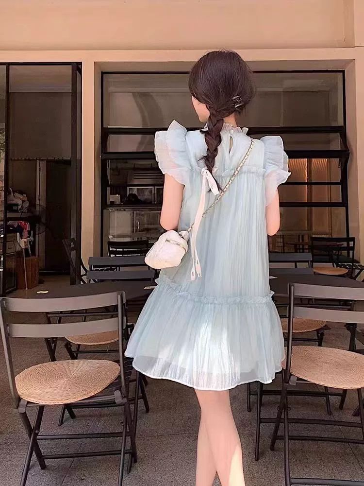法式甜美减龄小飞袖连衣裙女夏季纯欲木耳边高级感气质超仙短裙子