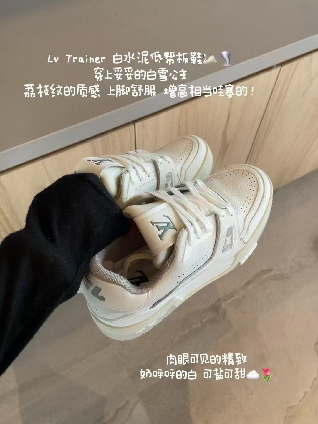 1.LOUIS VUITTON Trainer 牛皮 白水泥 低帮时尚板鞋延续了品牌经典设计,以复古篮球鞋为灵感,采用细腻粒面小牛皮材质打造鞋面,搭配压印Monogram花卉图案,低调中彰显奢华质感。其低帮设计结合白色“白水泥”配色,风格简约百搭,男女同款适配性强,可轻松驾驭休闲或轻正装造型。鞋垫嵌入超软PU乳胶物料提升脚感,橡胶外底饰有品牌标识,兼具舒适性与细节设计。该鞋款官网发售价格约1万元左...