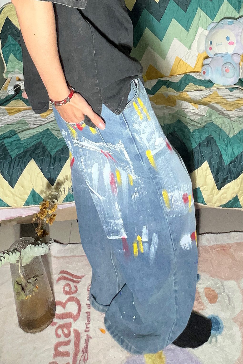 今日上身一条超帅的牛仔裤,微喇的版型设计很显腿长,裤身做的贴布感觉就像把晚霞穿在了身上~