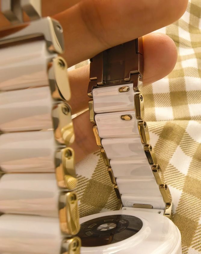 华为 WATCH GT 5 Pro(42mm)陶瓷白表体重量约44g,它搭载了1.32英寸的AMOLED大屏,在蓝宝石玻璃表镜+纳米微晶陶瓷表壳+纳米微晶陶瓷&TC4钛合金表圈+陶瓷金属表耳+纳米微晶陶瓷后壳+白色陶瓷表带的加持下,不仅防刮耐磨,更增添了一份奢华的质感,每一眼都是心动的感觉! 它的表圈、表冠均采用了金叶多切面设计,航天级钛合金与陶瓷完美结合的背后是纳米微晶陶瓷的繁复工艺与TC4材质...