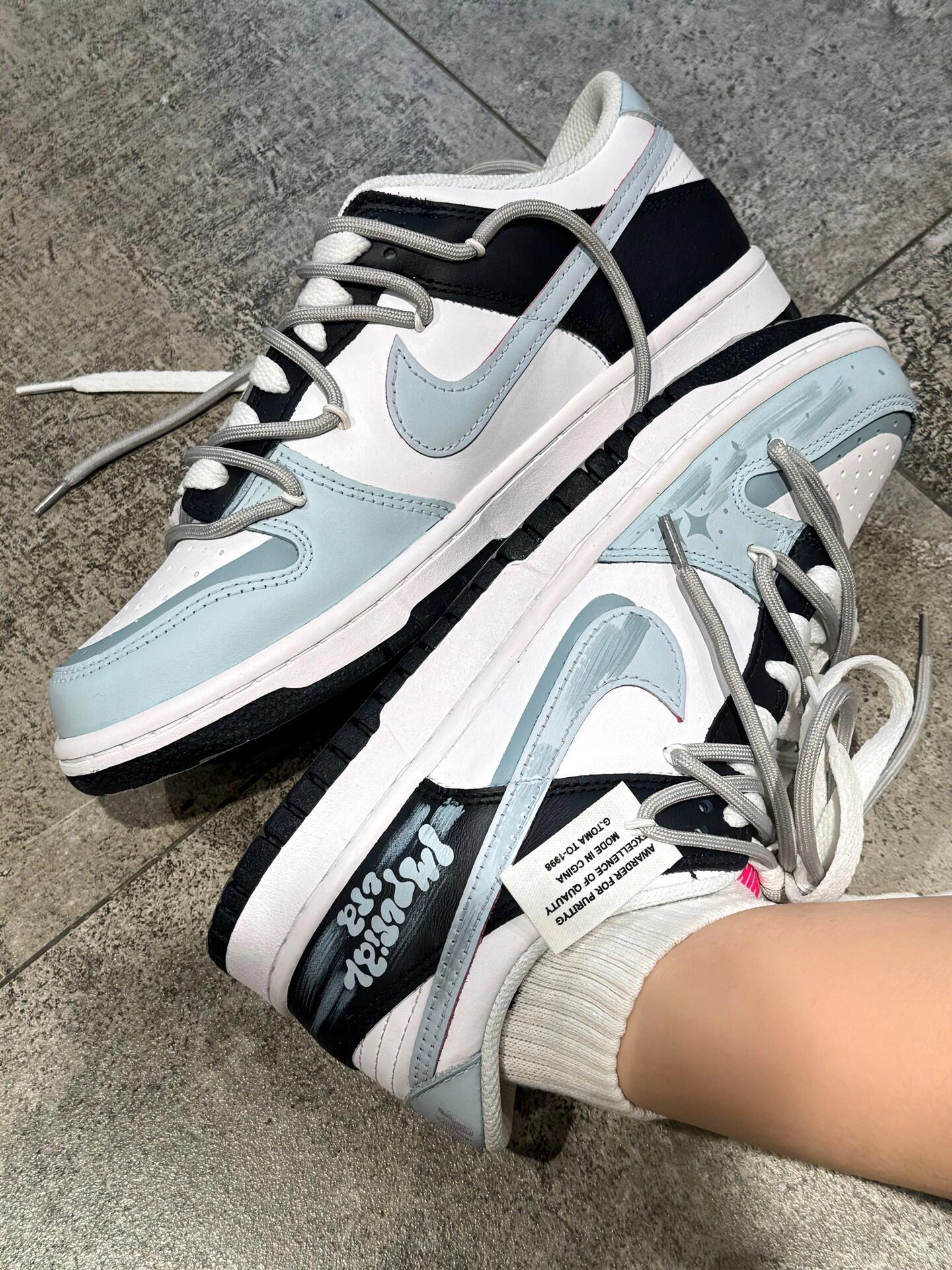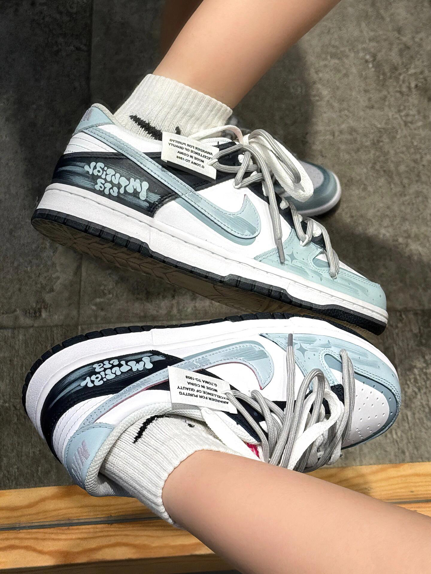 🫐低饱和的配色就显得很高级! 解构➕泼墨➕涂鸦➕便签鞋子一整个细节满满~ 上脚复古又小清新的感觉🌊 迎接春天的仪式感