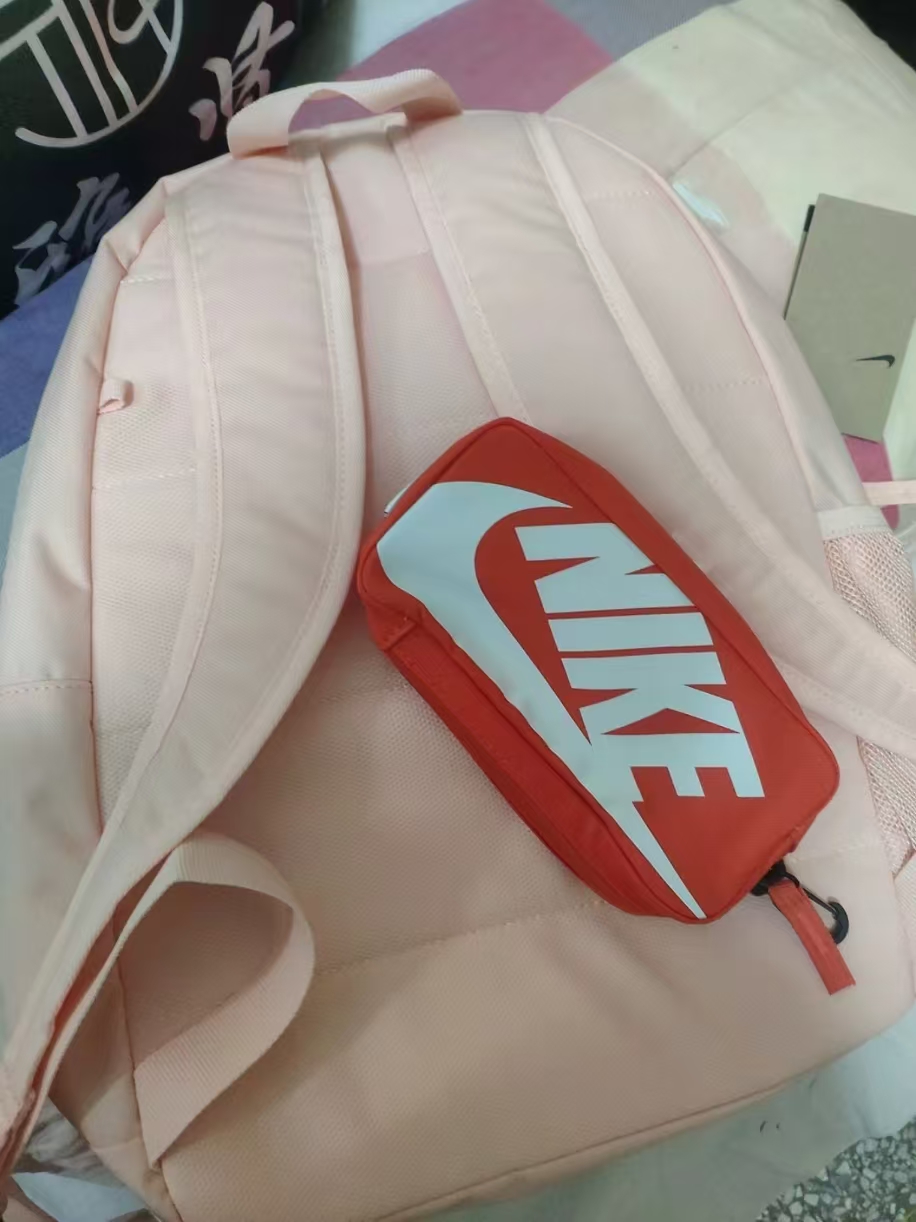 高中一直好想要这个书包 ,上大学了我的好朋友给我买了这个书包, 真的太喜欢这个粉色了!! 包包有四五个口袋, 容量超级大, 准备以后特种兵旅游就背这个包包了, 而且在只要二百二, 应该在nike双肩包里面算很便宜的了,性价比一绝了。 就是粉色有点不耐脏,但还是很爱!! 图源网络侵删