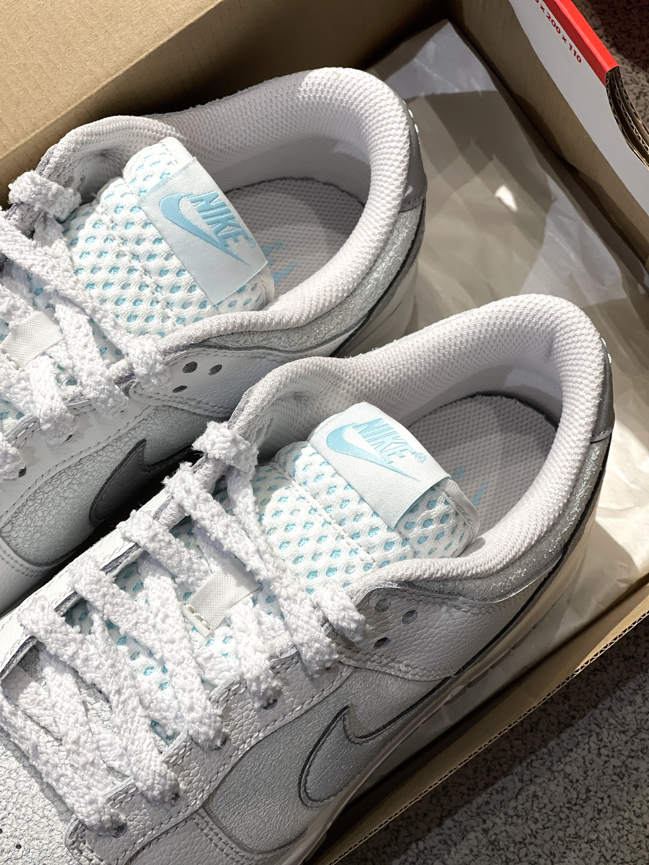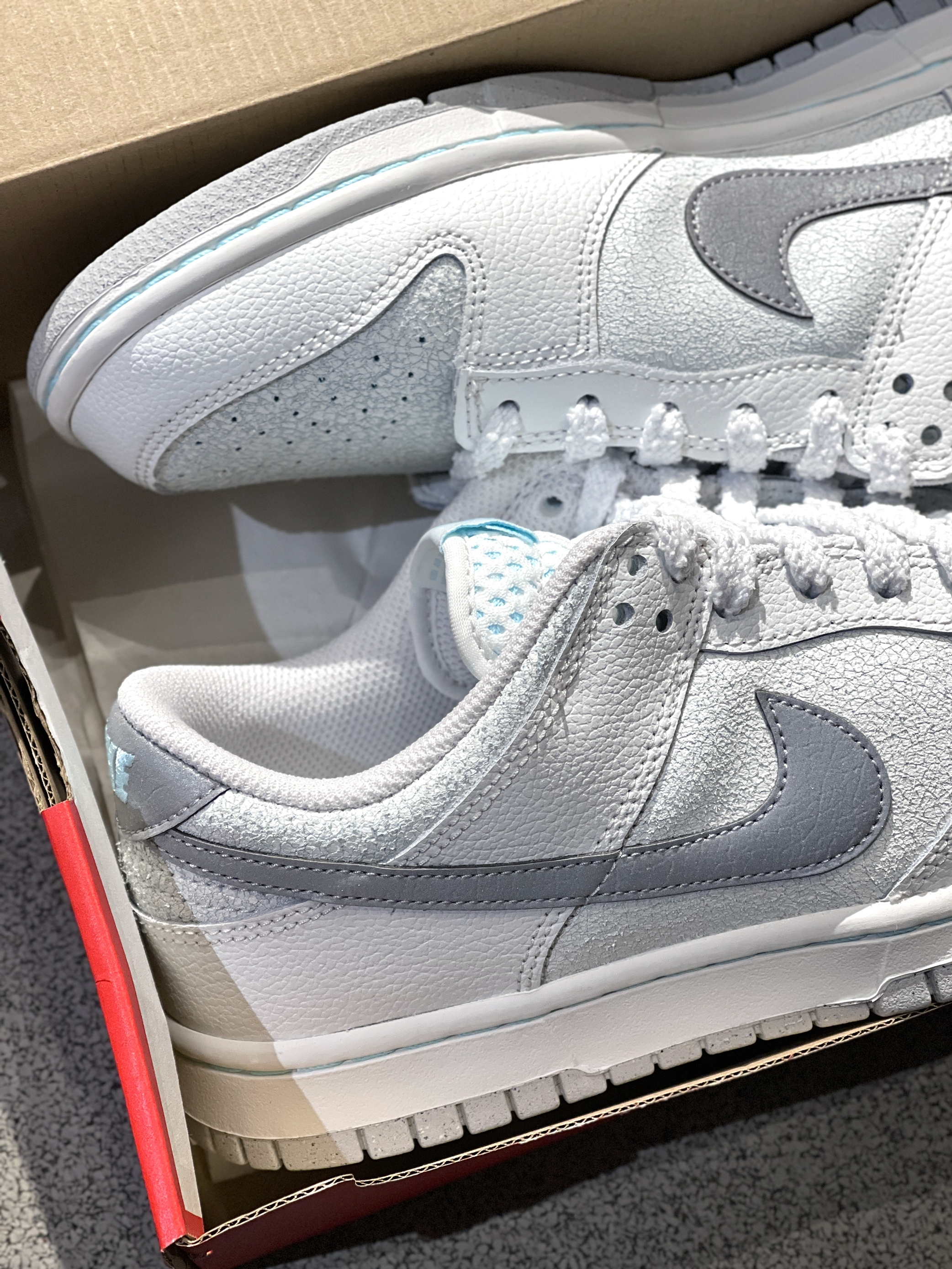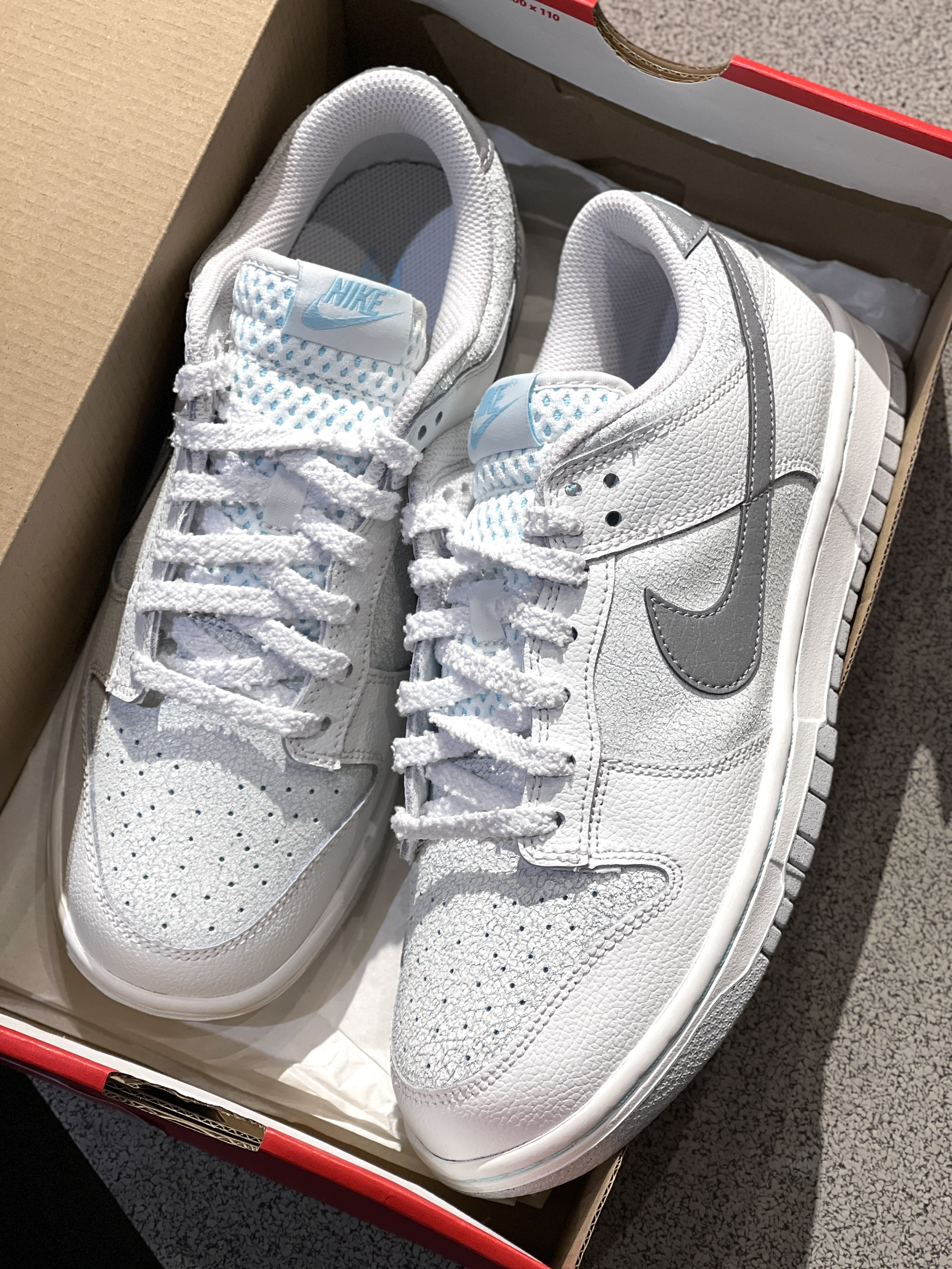 开春Dunk板鞋新配色来咯,清爽干净!😍 今天上脚的是来自Nike的新配色板鞋dunk,实物开箱干净清爽~轻便低帮dunk鞋型,鞋面独特的“碎冰冰”开裂设计➕反光Swoosh,小众又高级~😎
