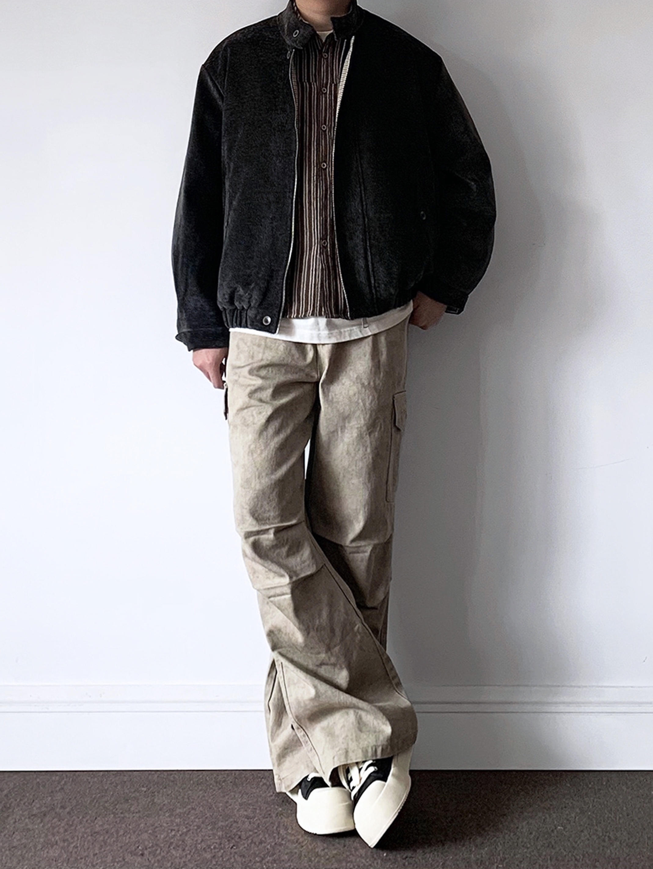 今天出门这么穿✌🏻 黑色哈灵顿夹克内搭咖色条纹衬衫 搭配卡其色直筒工装裤➕休闲板鞋 工装属性与复古感结合!秒变街头美式潮男😎