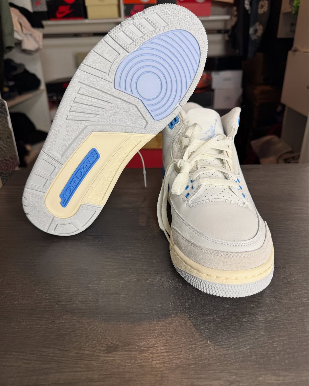 本篇笔记关联了Air Jordan 3 运动休闲鞋 潮流复古抓地支撑缓震合成革圆头 天蓝色/白色等商品,为用户提供真实的使用体验和购买参考。