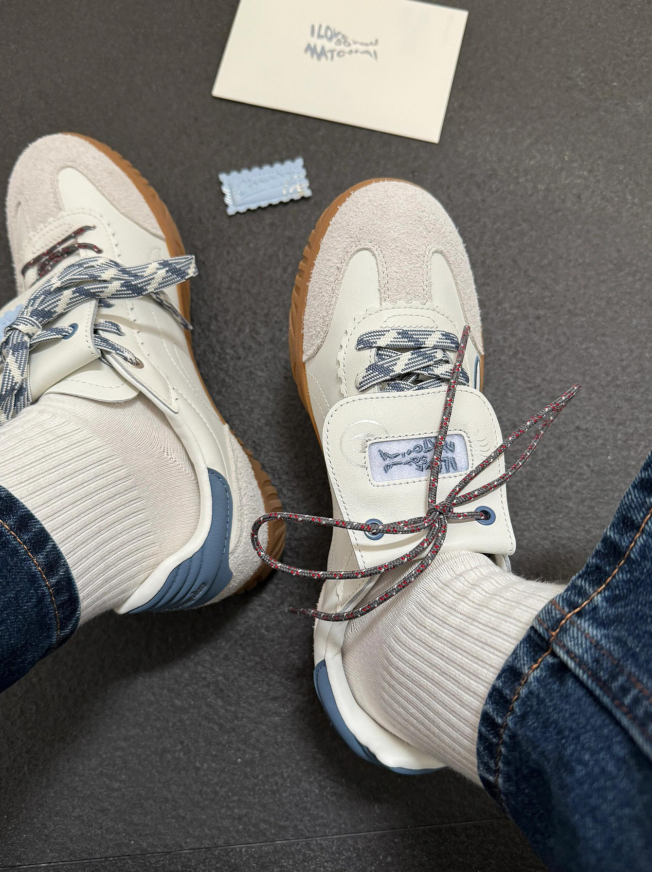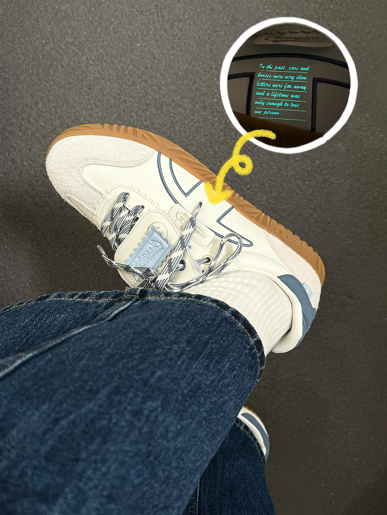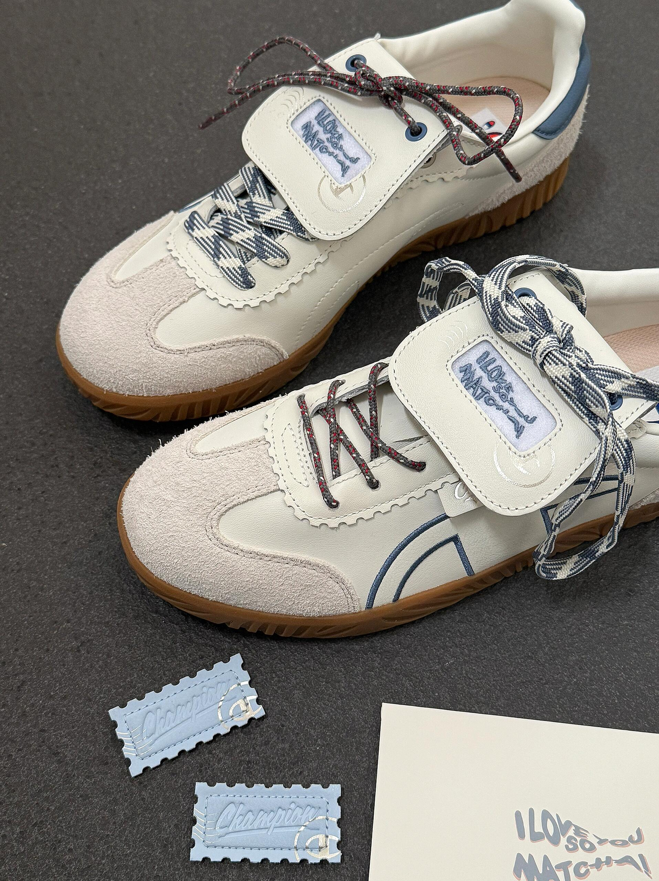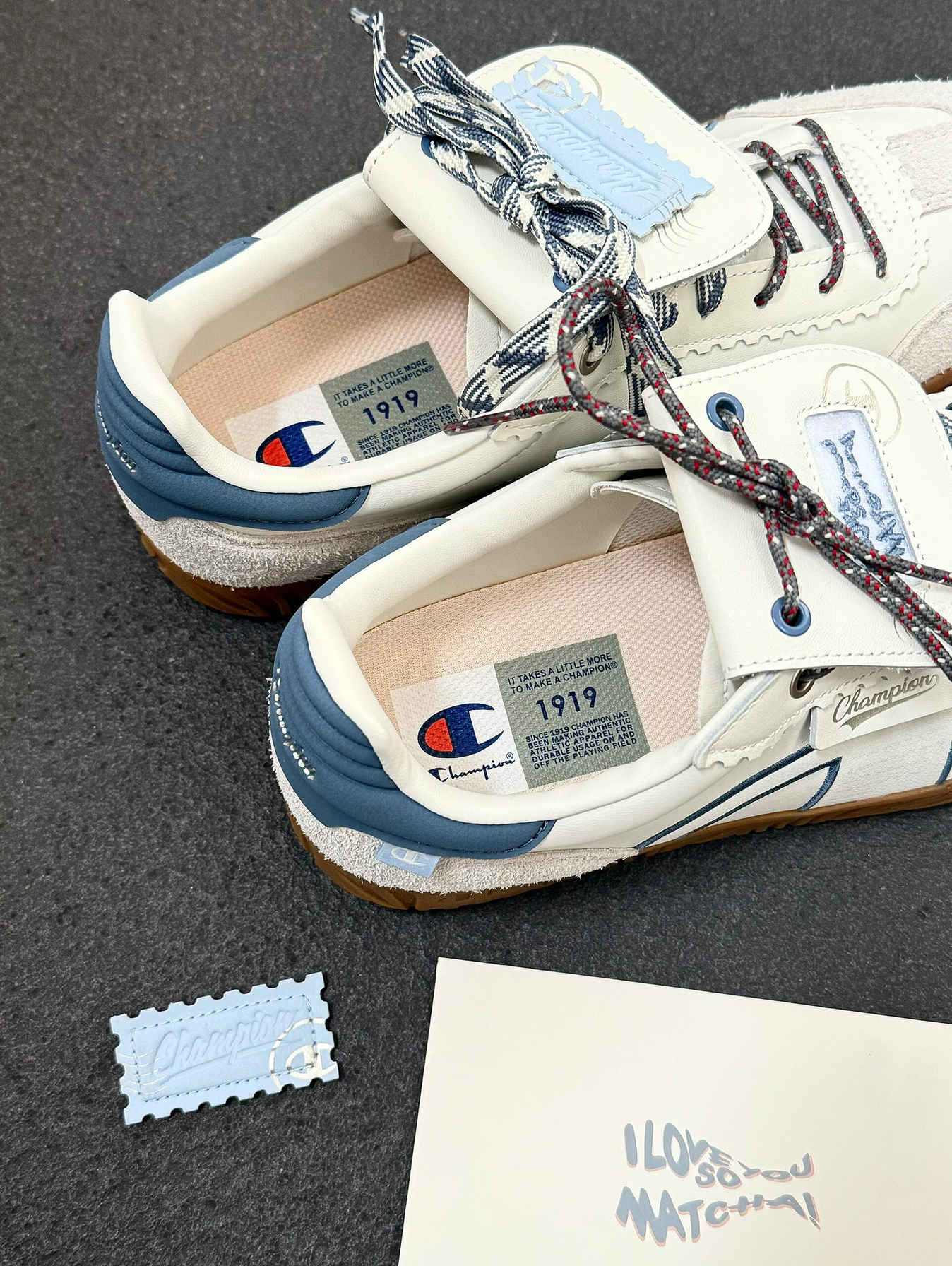 是Champion情人节限定德训鞋! 以情书为灵感设计的德训鞋 满满都是细节 鞋舌头是邮票魔术贴 撕开就可以看到表白语! 侧面C logo还有夜光情书~ 真的被浪漫了 完全就是情人节送礼TOP1 翻盖可拆卸的~一鞋两穿真的不错😌 还可以diy鞋带 换换鞋带就是一双新鞋啦 还是王俊凯同款哦! 情人节收到这样的鞋子真的会很开心!