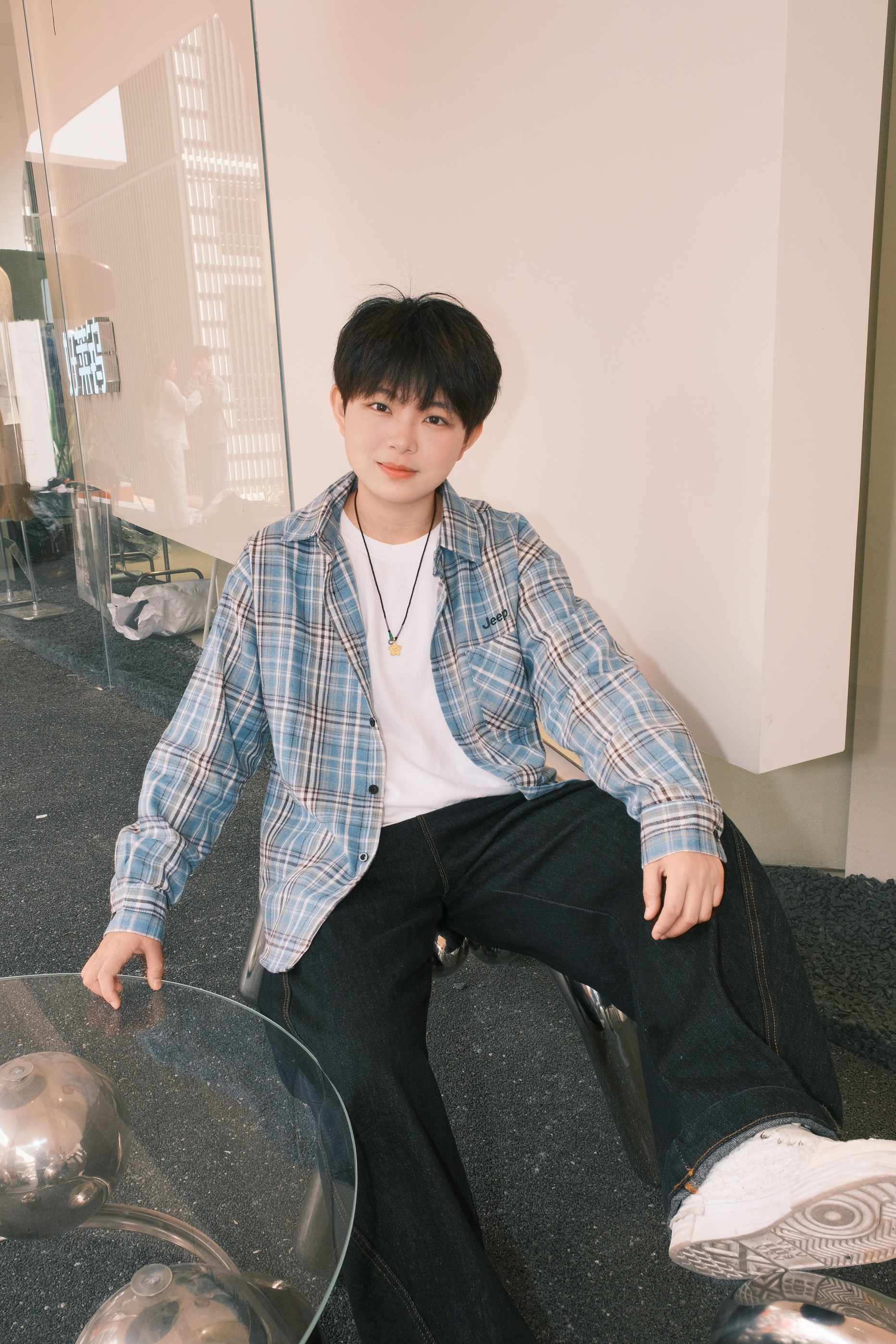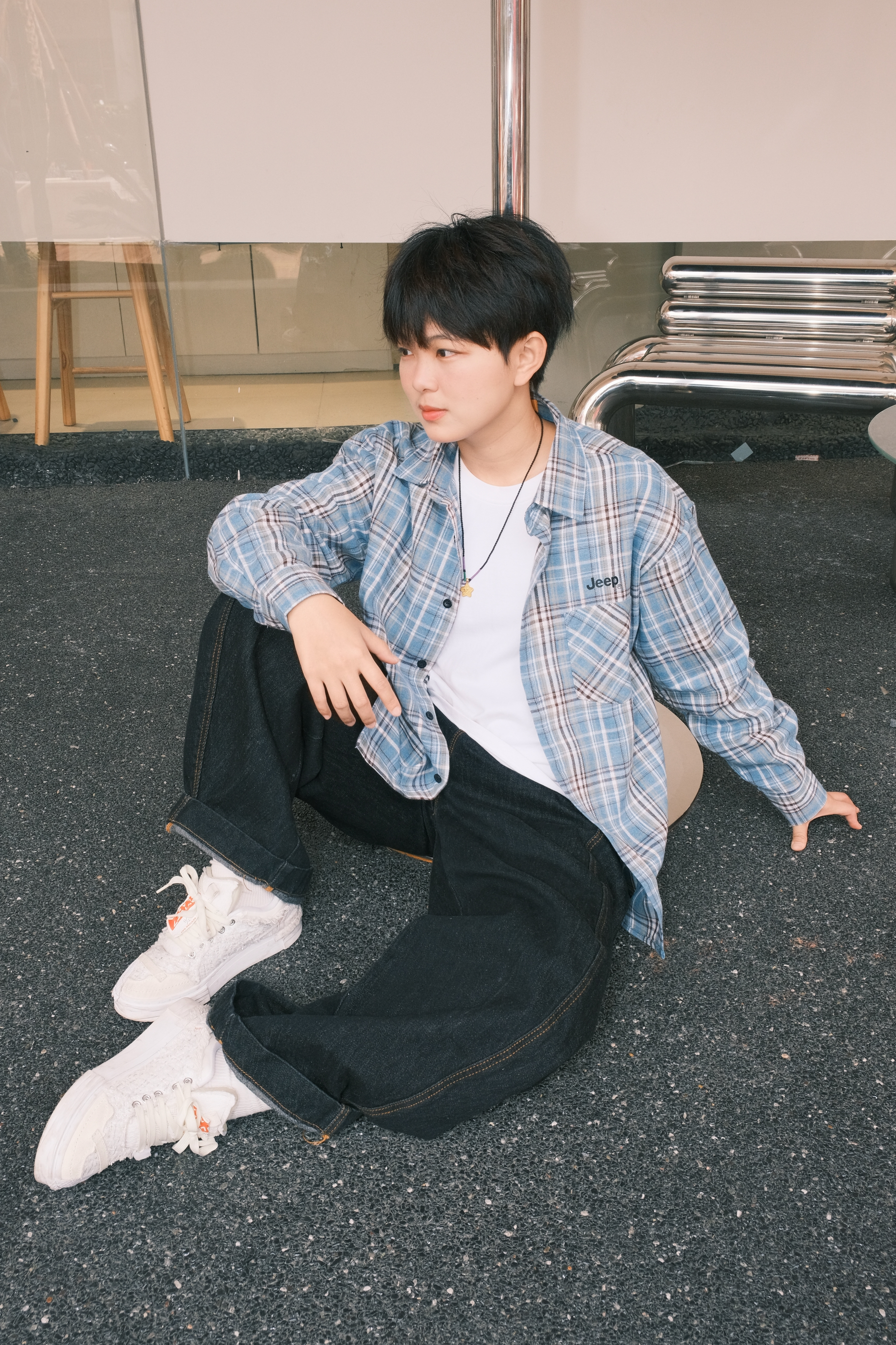 163/105 天哪没想到蓝色的 hin显白的格子衬衫! 黄黑皮姐妹一定要试试呀!上身秒变冷白皮! 松弛感拉满🆙 上身慵懒感满满的 蓝色格子衬衫真的很好穿呀 搭配黑色牛仔裤 帅der~