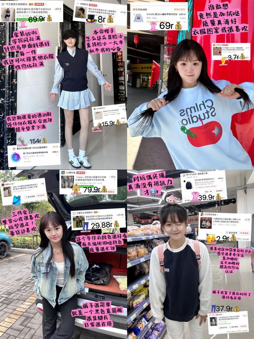 嗨嗨嗨喽啊姐妹们👭今天🐟给大家分享四套超绝平价版春季穿搭姐妹们参考照抄吧有小裙裙呦📢 1️⃣牛仔外套大小属于适中的我感觉颜色很好看 现在天气刚好穿这样的外套里面穿一件吊带🥳感觉搭裤子和裙子都可以哒属于百搭款🥳 2️⃣拼接卫衣➕白裤子 这一身我真的爱了 我日常生活中比较喜欢穿休闲可爱类型一点哒衣服 这一身真滴我爱了 上衣我真的很喜欢这个价钱还是加绒绒滴🥳 3️⃣学院风套装上身我真的爱了真滴好看 裙子...