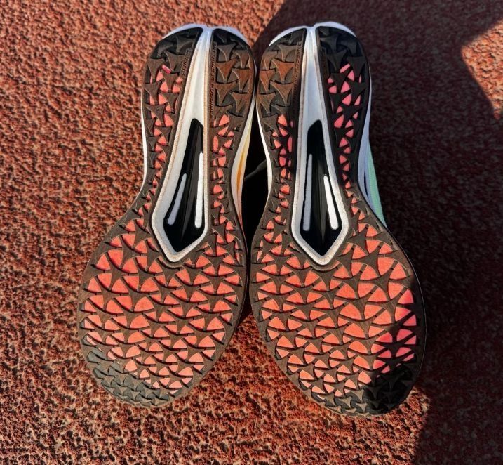 定位:体考体测,场地竞训 脚感:前掌韧弹,后掌软弹 重量:42码218g 中底科技:全掌䨻 透气:䨻丝 细节:灵活度好,弜结构加䨻科技,有诚意 门槛:新手也能驾驭,不挑跑法 防滑:防滑提升,但耐磨一般 缺点:大体重、足外翻别选,轻微压脚背,中底有掉渣风险,不好清洗 适配人群:5km至半马训练,体考体测 建议入手:六开左右