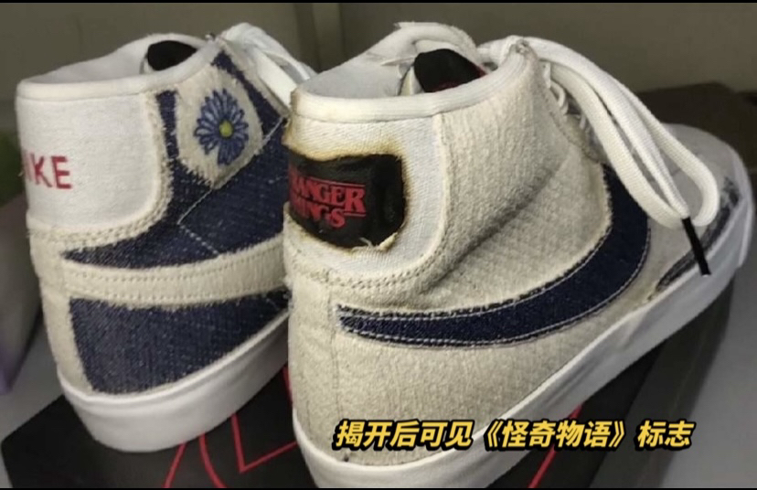 -鞋身彩蛋:鞋带孔附近的红色缝线若隐若现,模仿剧中“裂缝”的撕裂效果;鞋舌内侧标签印有“NIKE”与“ST”融合的联名标识,低调宣告跨界身份。