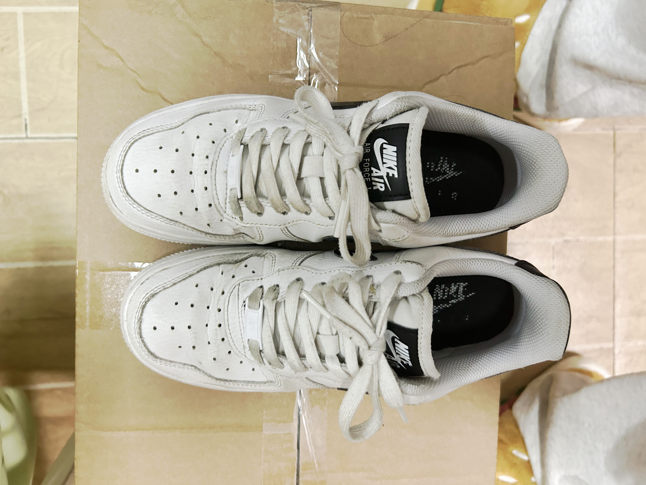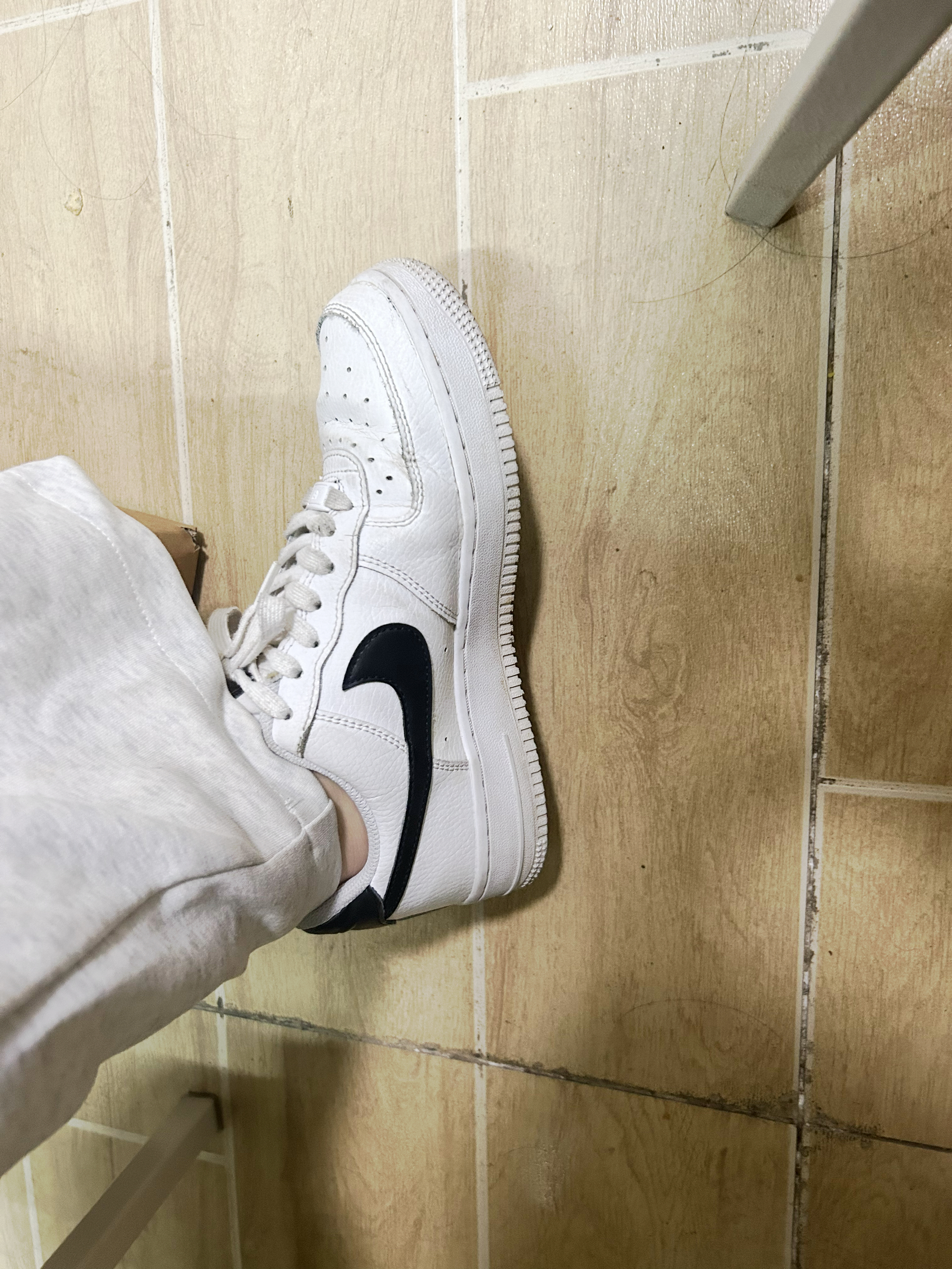 这双鞋已经穿了好久了,所以看起来脏脏的 纯白纯黑空军看腻了,换个经典配色 增高3到4公分 性价比高,作为情侣穿搭也很不错 也有小缺点,容易开胶,不太好打理 穿着久了皮质可能会裂,这边建议不要水洗,送干洗店 穿搭好看,经典必备,快冲!
