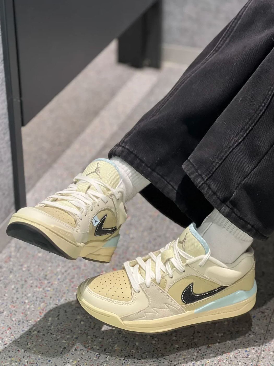 龙年限定的Jorden312新品真的好好看 😻 整体配色白绿为主,低调却又华丽,有🐉的感觉 细节满满的一双,鞋跟处金光闪闪,熠熠生辉,很亮眼好看 👀 312标配爆裂纹让这双鞋更酷了 🆒 鞋底的红色搭配,设计感满满