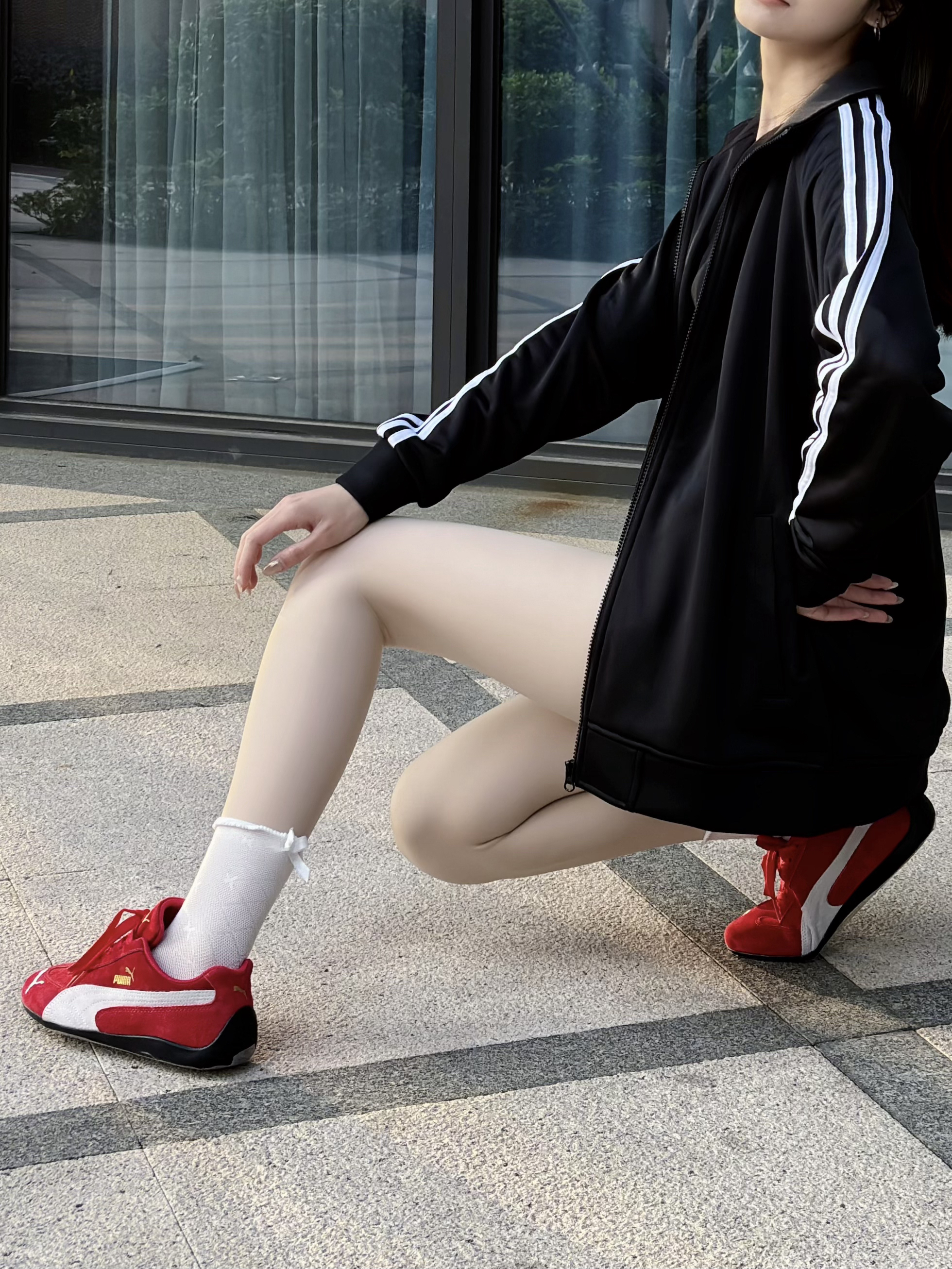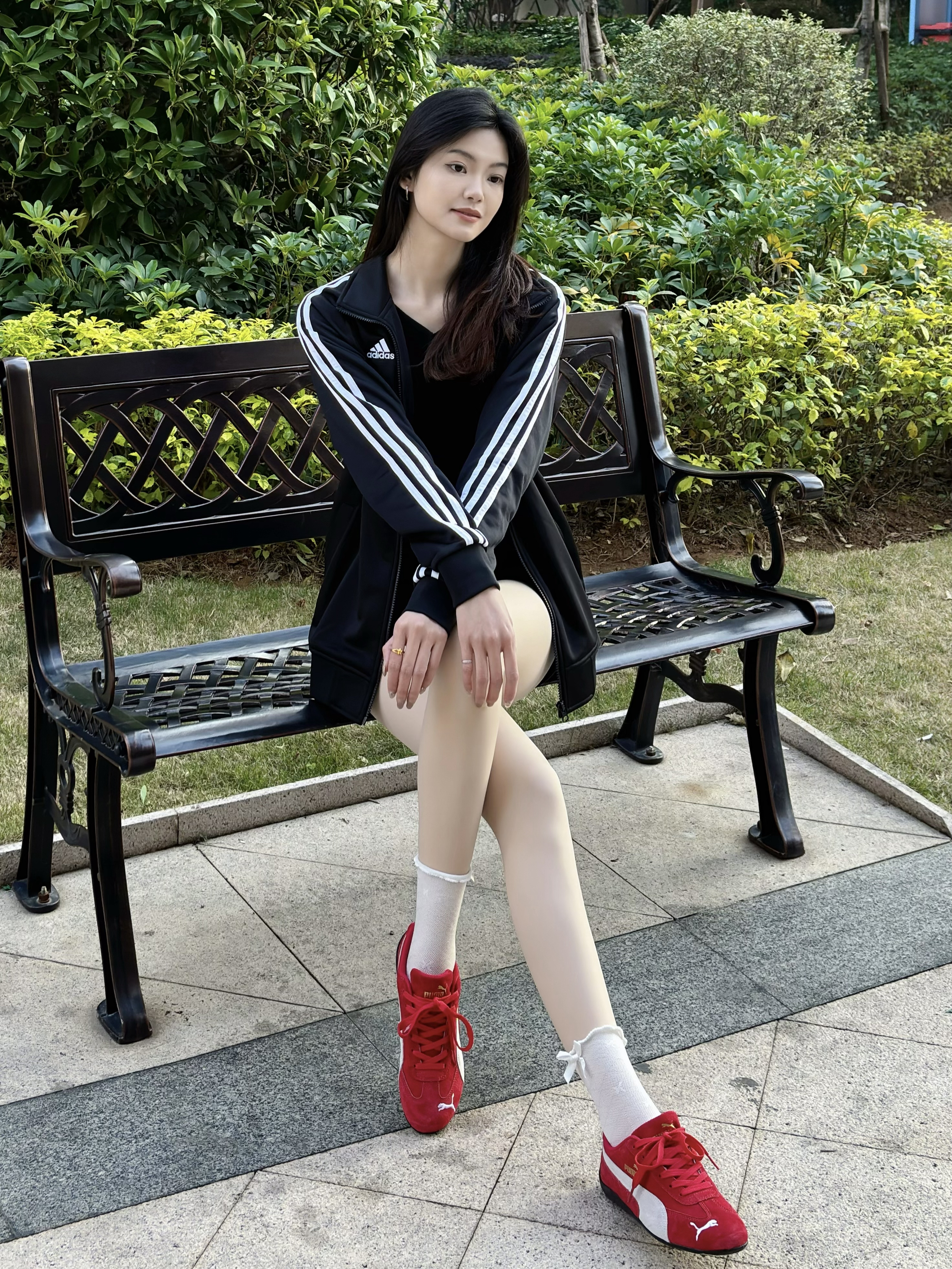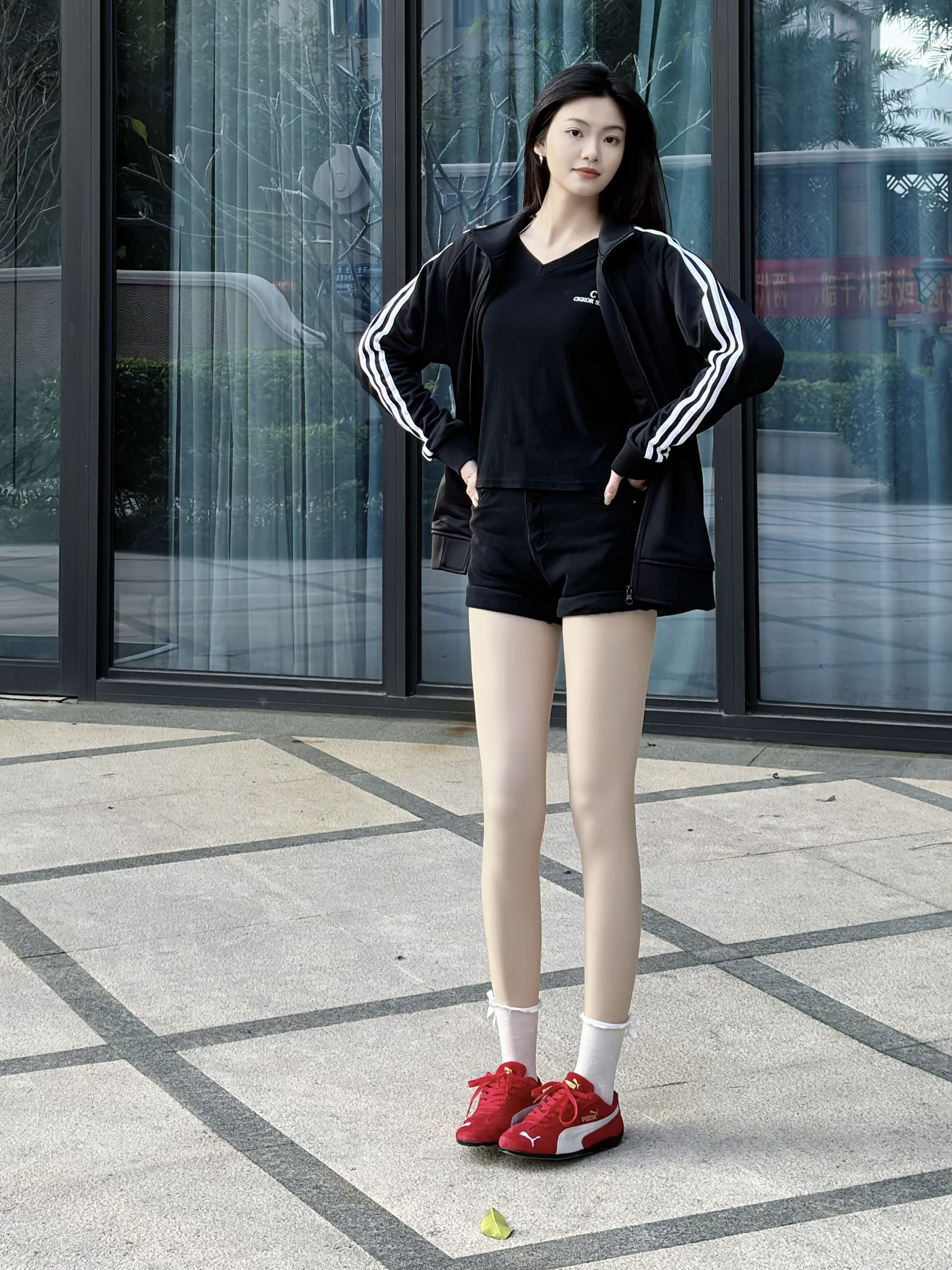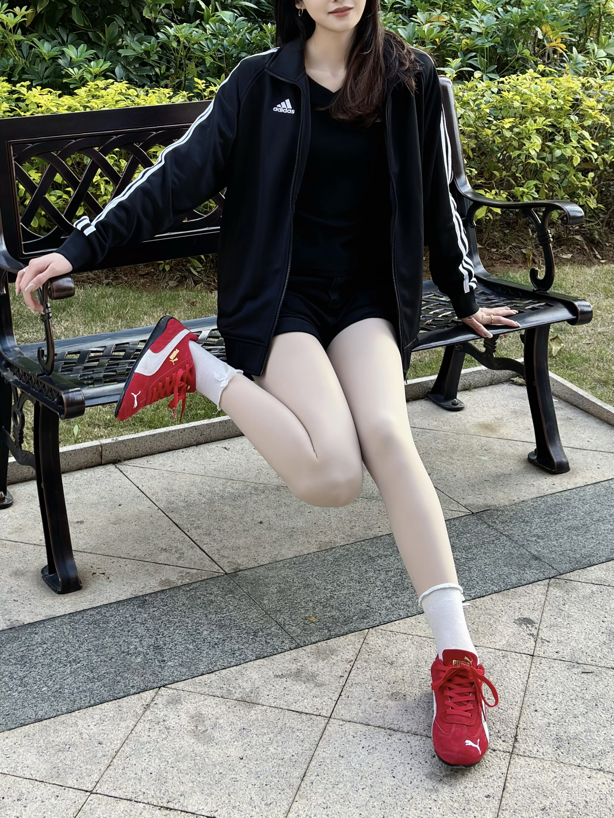 今日份OOTD 阿迪的外套上身爆好看!!经典款氛围感get满满满满的 平时搭配也简单 短裤➕烈焰红的彪马生活鞋 韩女穿搭真的超级绝绝绝