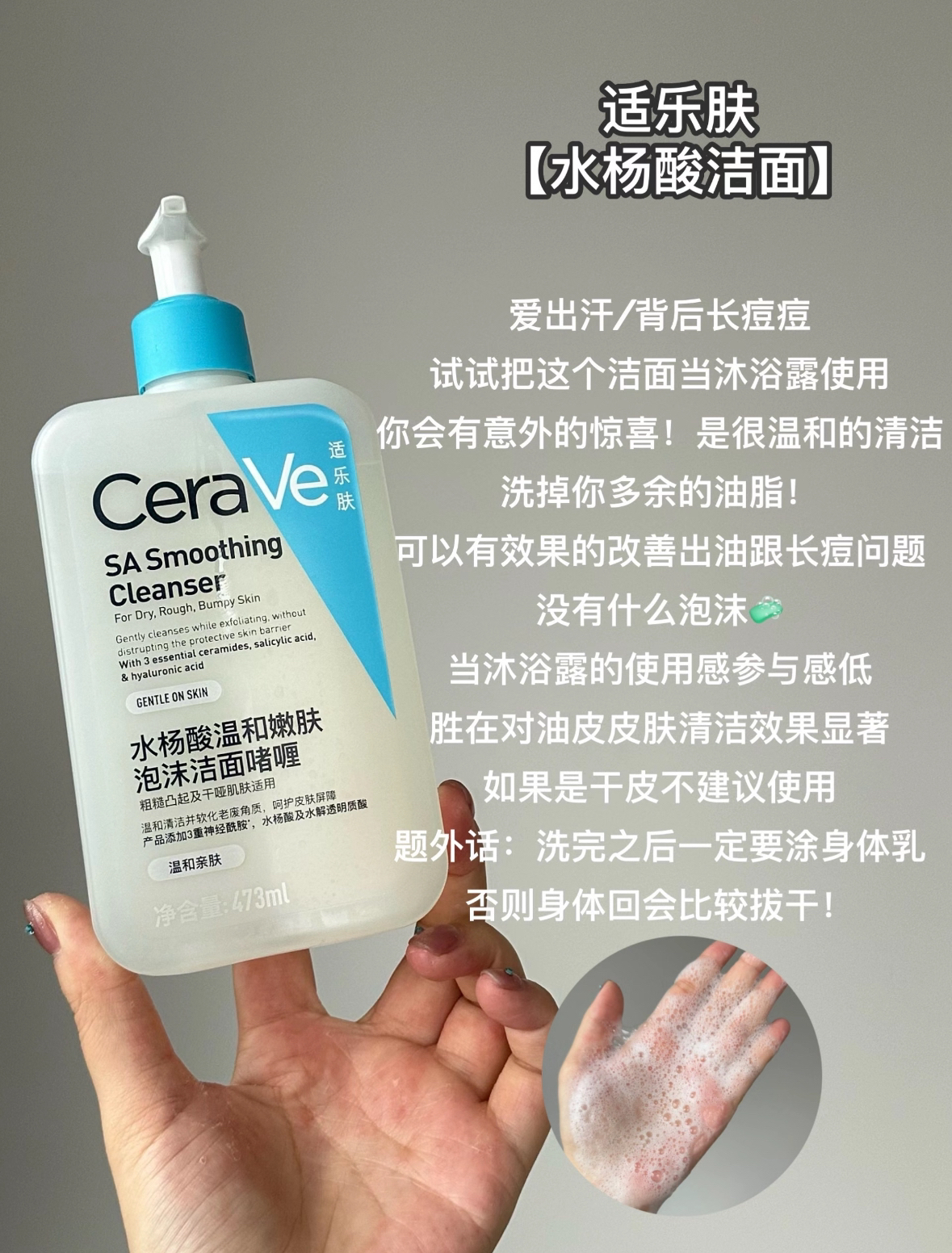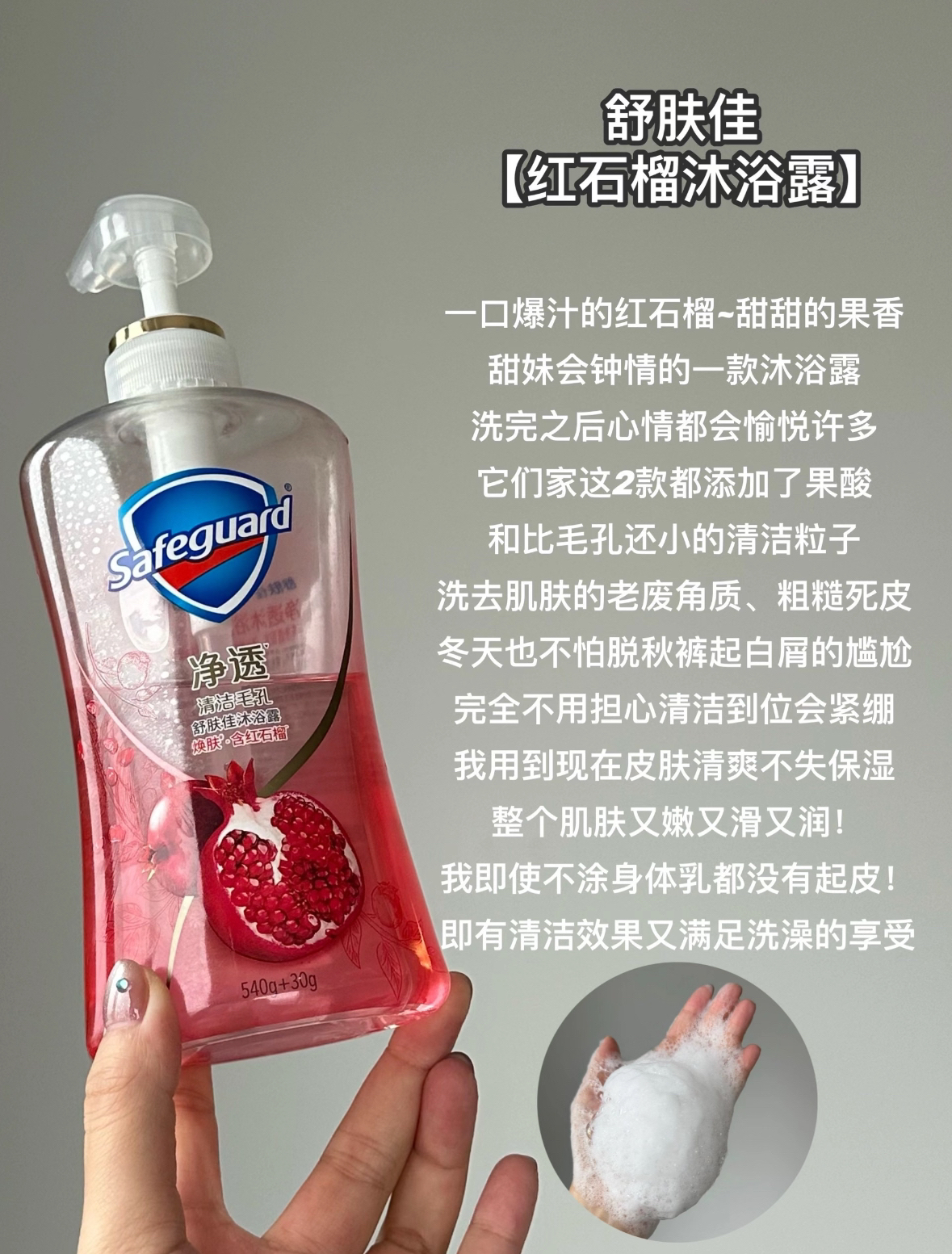 本篇笔记关联了【啫喱型】舒肤佳 净透沐浴露 果酸嫩肤清洁毛孔持久留香 红石榴、【啫喱型】舒肤佳 净透沐浴露 果酸嫩肤清洁毛孔持久留香 山茶花、CeraVe/适乐肤 水杨酸温和嫩肤泡沫洁面啫喱 清洁保湿控油祛痘去闭口去黑头去角质疏通毛孔油痘肌 【国产版】0.45%水杨酸等商品,为用户提供真实的使用体验和购买参考。