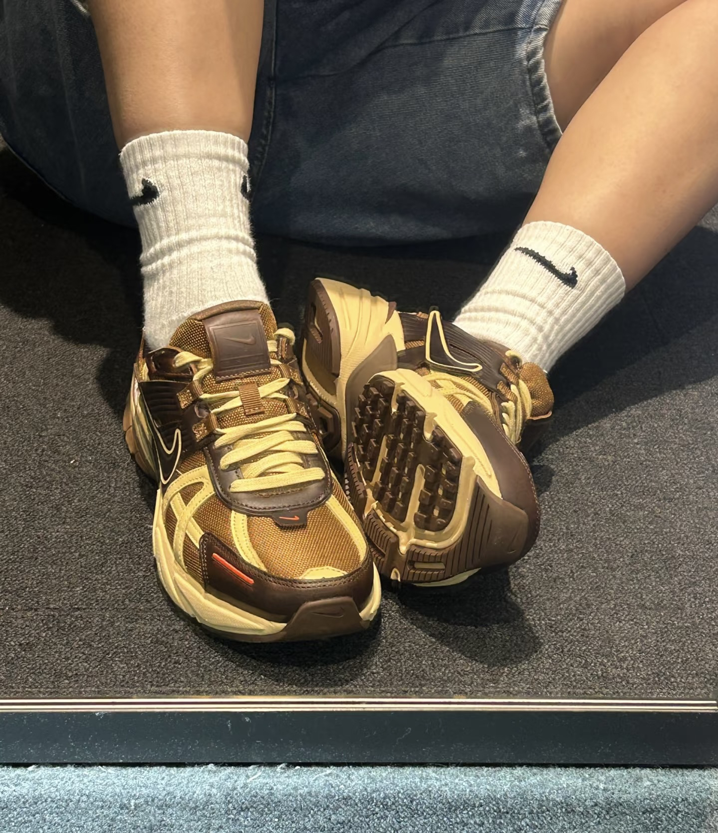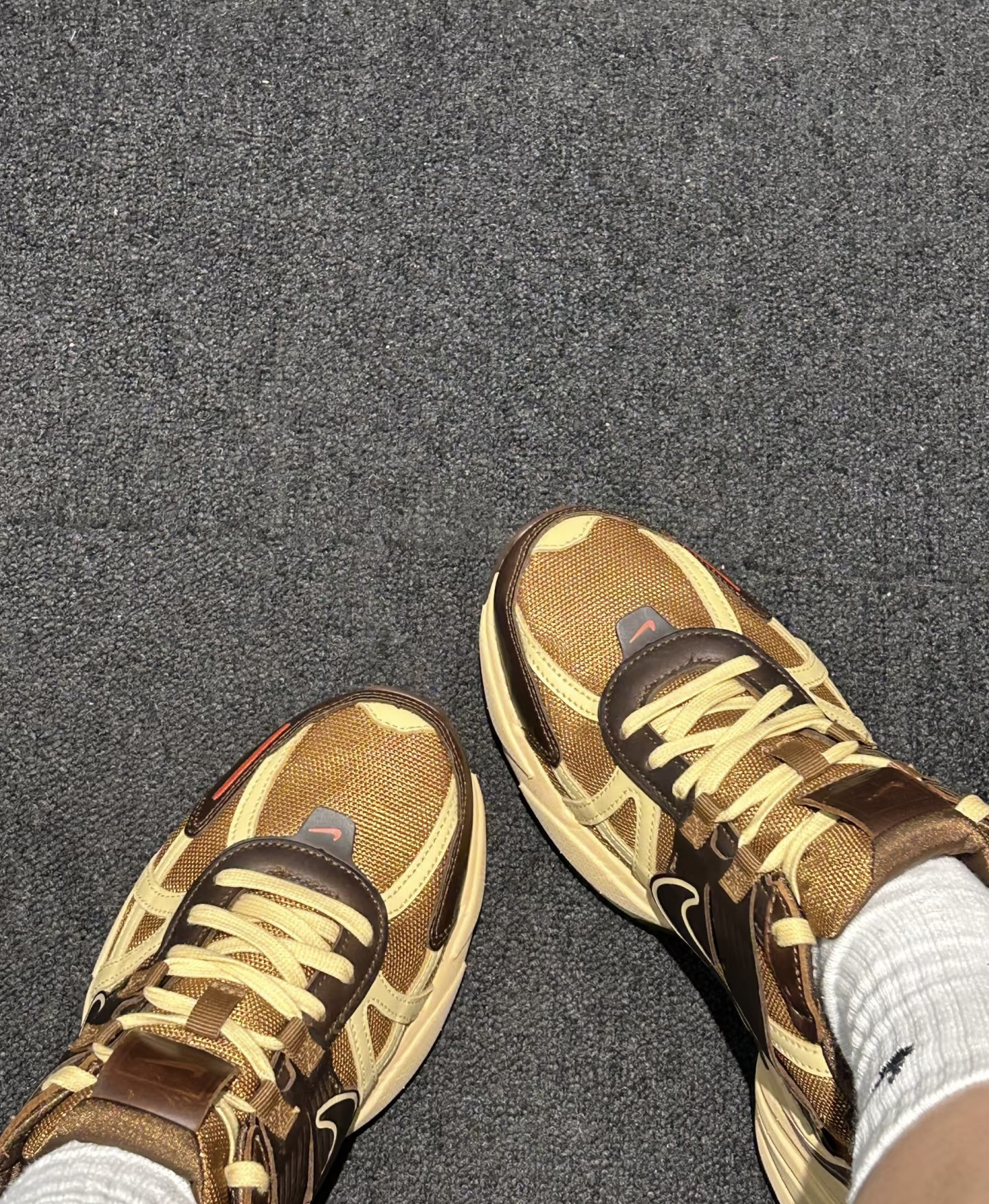 宝子们,新入的这双Nike运动鞋,一整个爱住!棕与米黄的配色复古感爆棚,自带时尚滤镜,随便搭配牛仔裤或运动裤都超吸睛。鞋面材质拼接巧妙,既有皮革的质感,又有网布的透气。穿起来脚感舒适,走路久了也不累,无论是出街还是运动都很合适,闭眼入不亏!