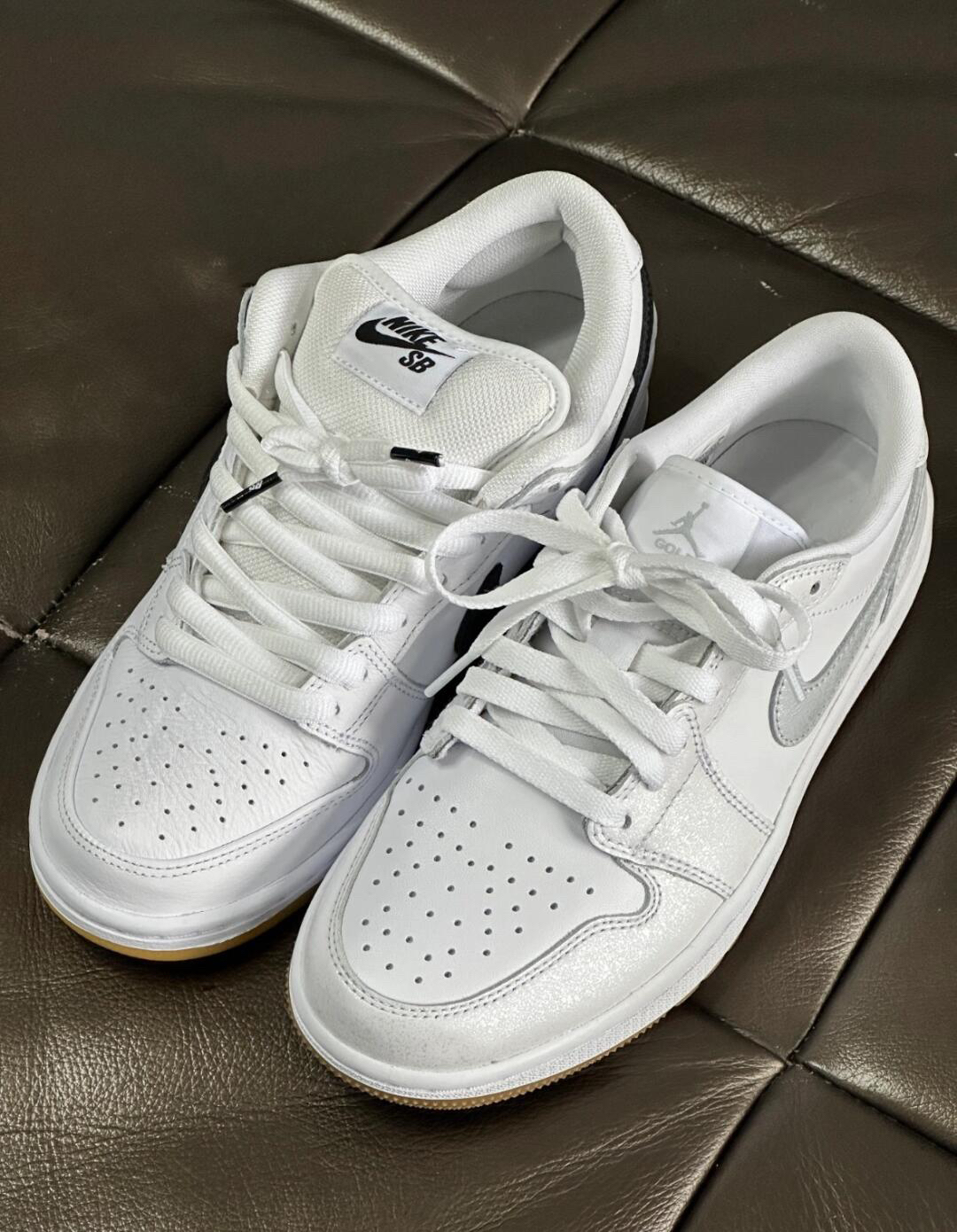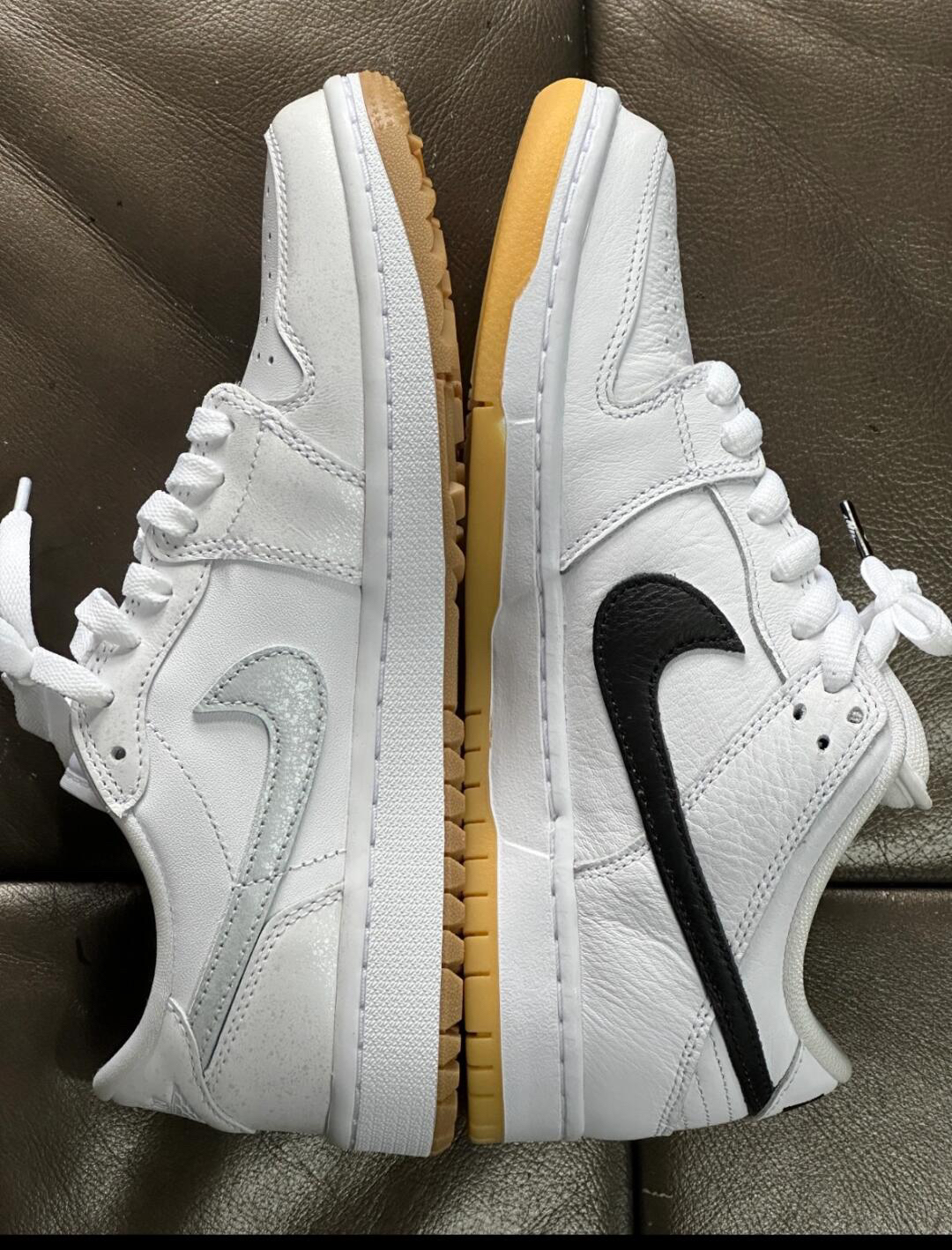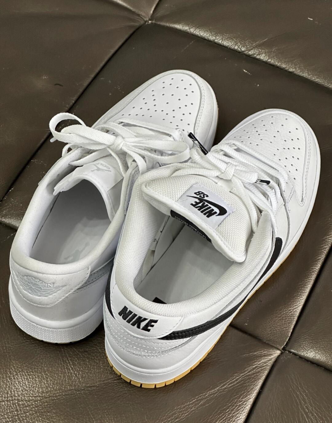 Jordan 1 Low Golf白生胶谁的颜值更能get到你呢? 口这两双鞋算是各有特色 ▶️Dunk SB白生胶的鞋型+配色出来的效果更帅气,不过AJ白生胶在鞋垫和外底的加持下则舒适性稍胜一筹 ▶️两双鞋都使用了头层牛皮革材质打造,用料出色且日常打理方便 ▶️尺码方面:Dunk SB白生胶尺码标准,AJ白生胶尺码偏大需要买小半码