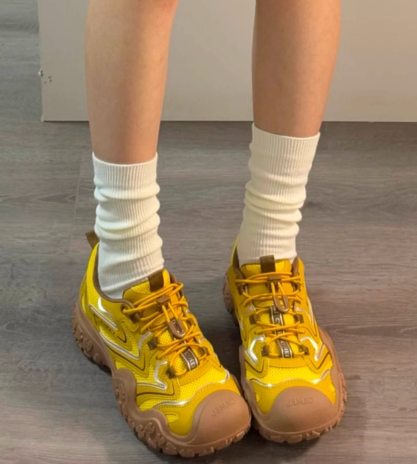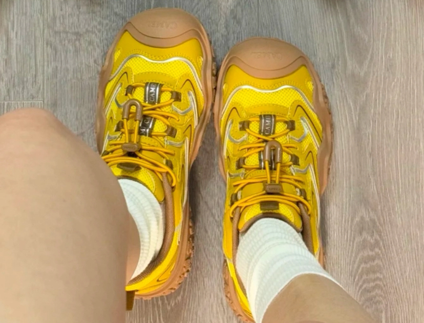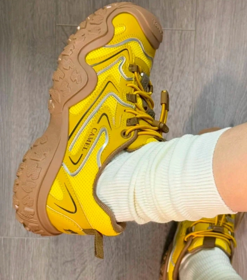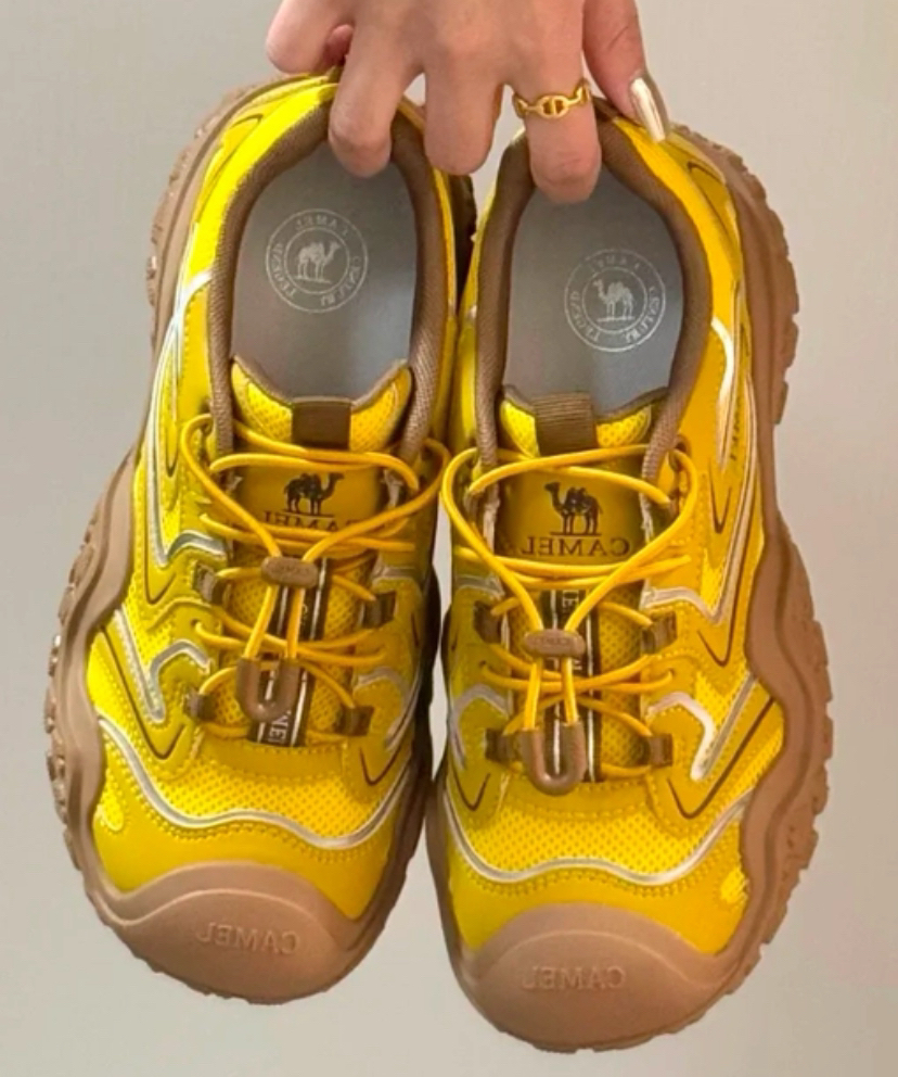 有点东西的骆驼小黄丑萌鞋,鞋柜里总要有双耐看的基础款,刚好被它填满了这个空缺! 春天穿很有活力,鞋子的外形也是丑萌丑萌的,4cm增高踩下去软乎乎的,暴走1w步也不累脚,带回家试试吧!