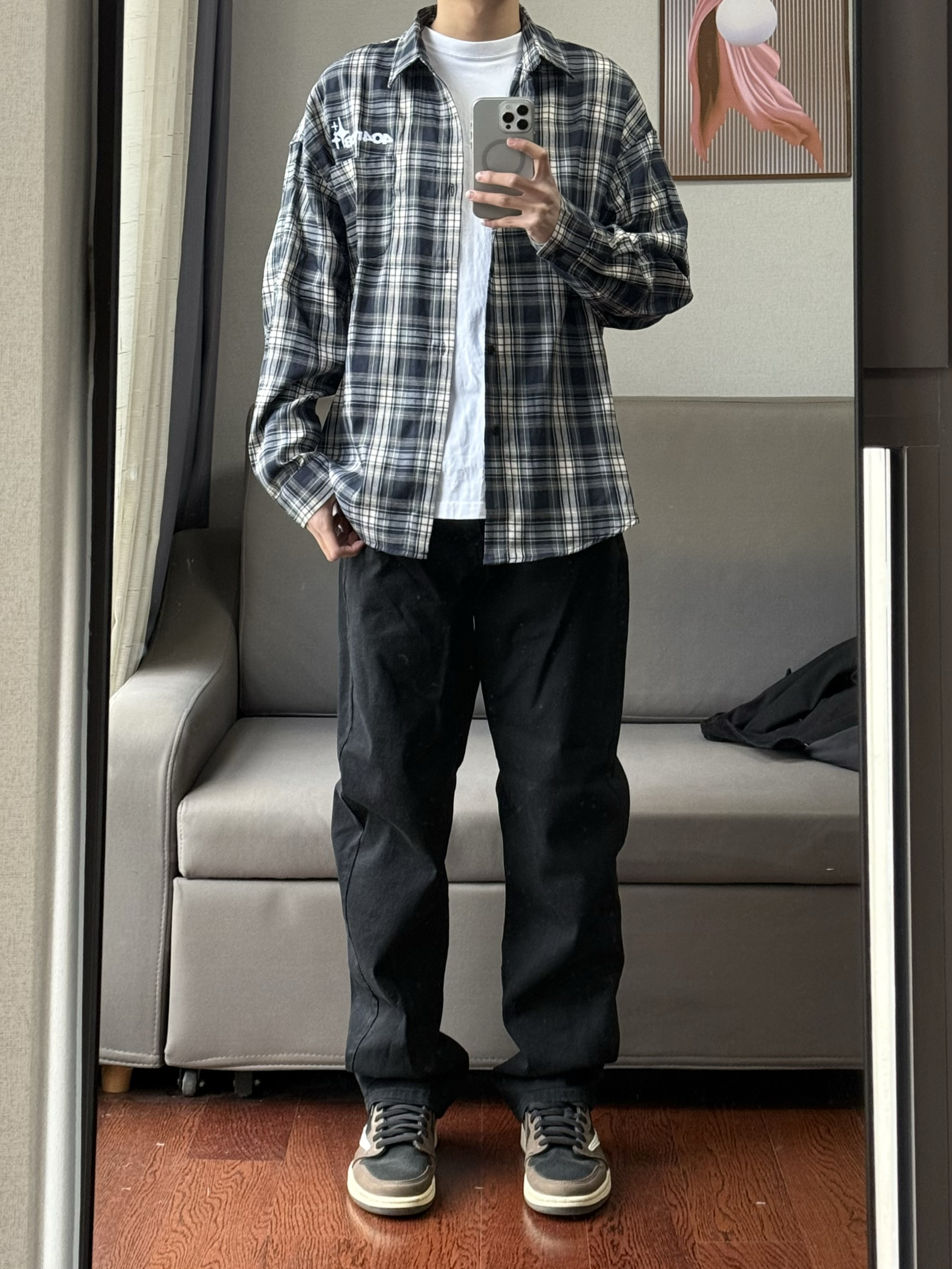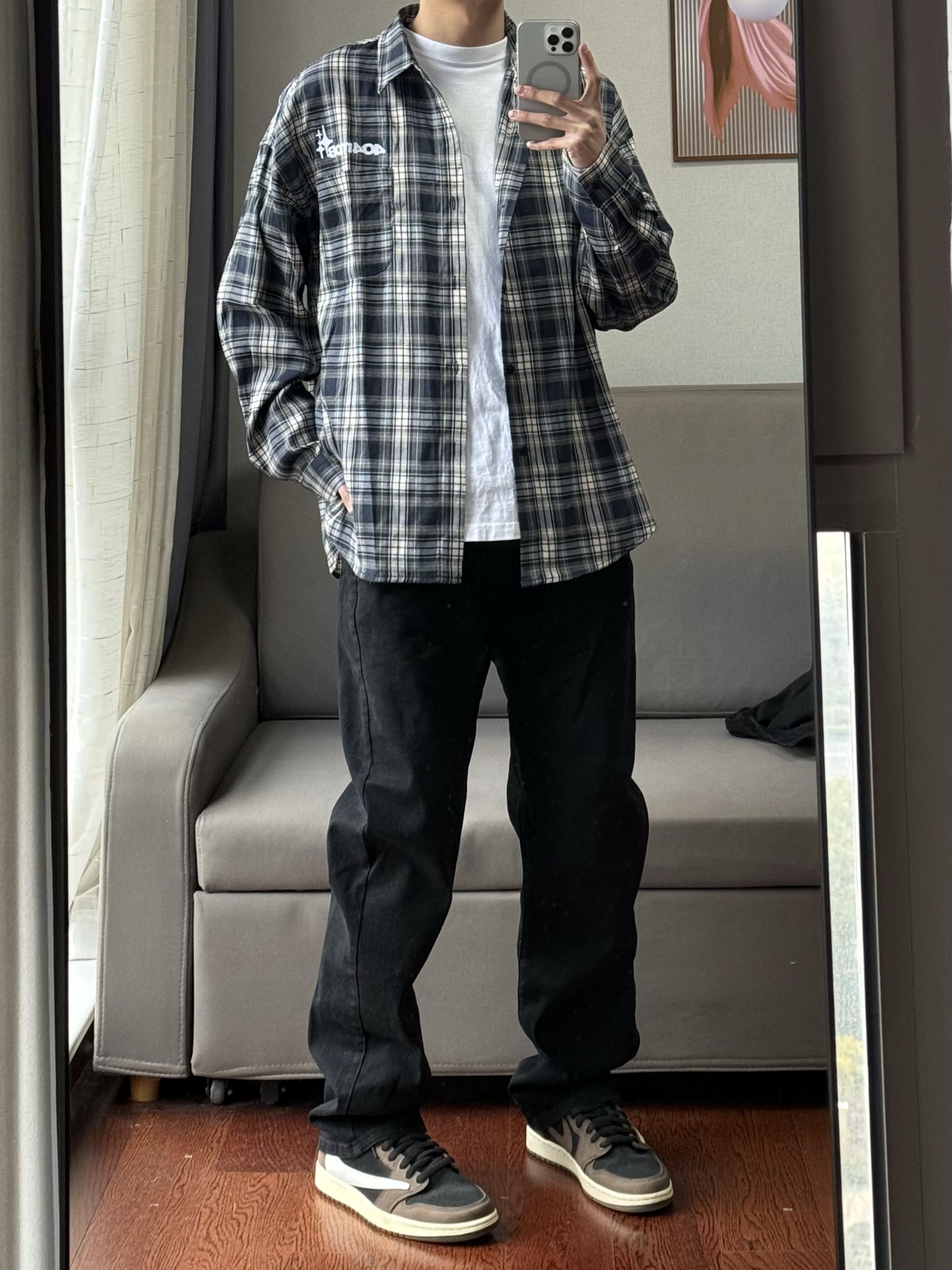 深色格子衬衫真的也太好看了吧~ 配上经典黑色牛仔布长裤,一整个氛围拿捏住了呀!