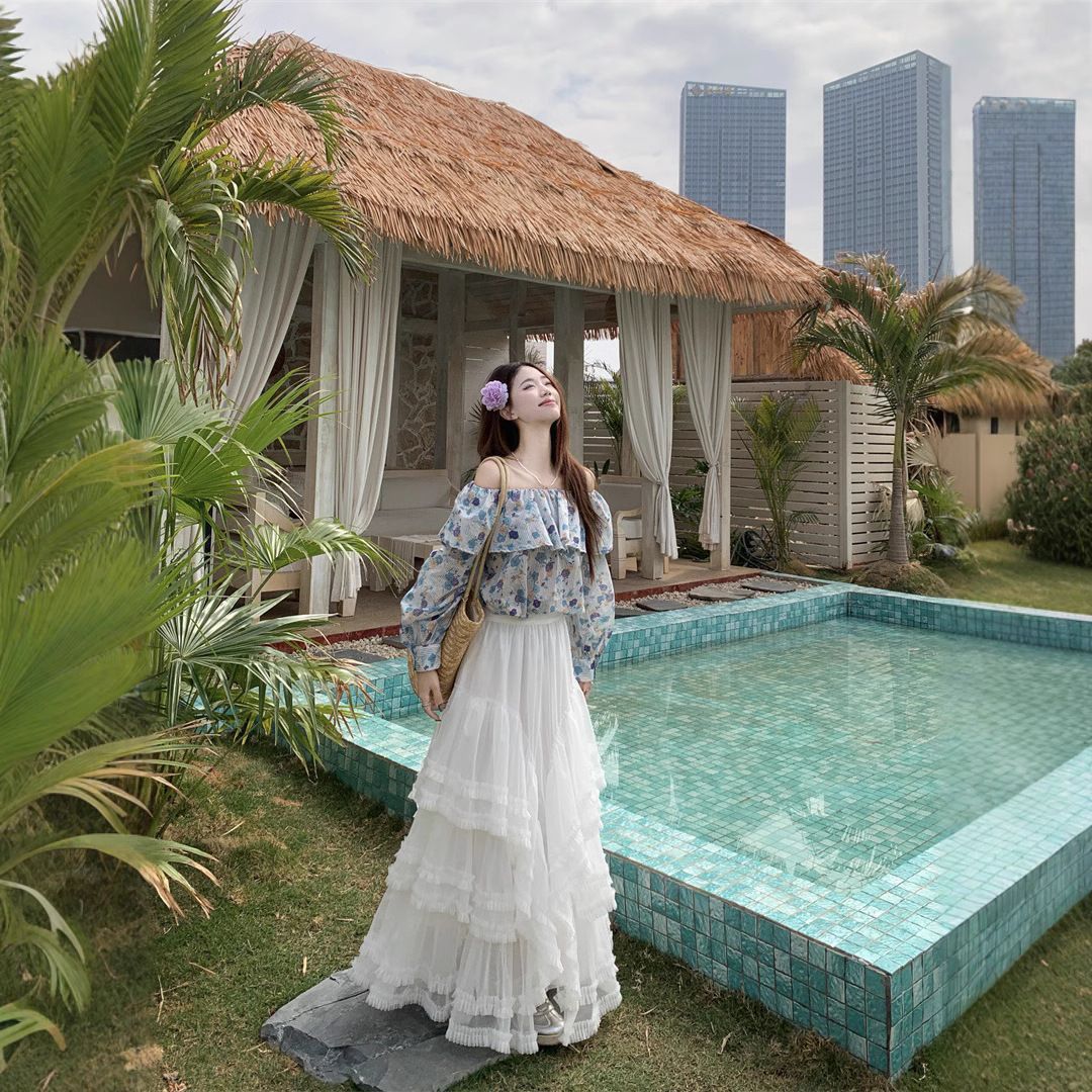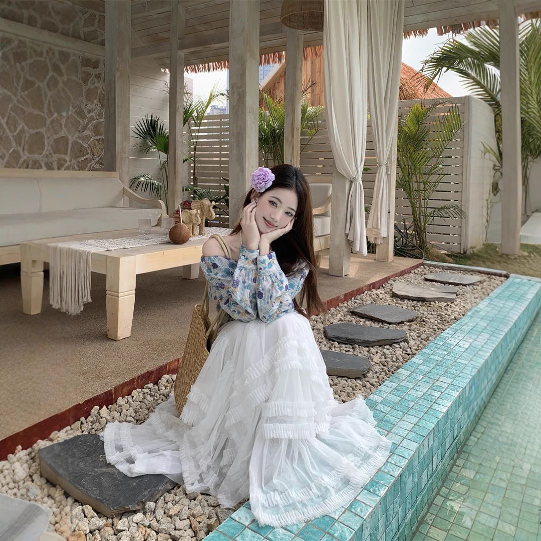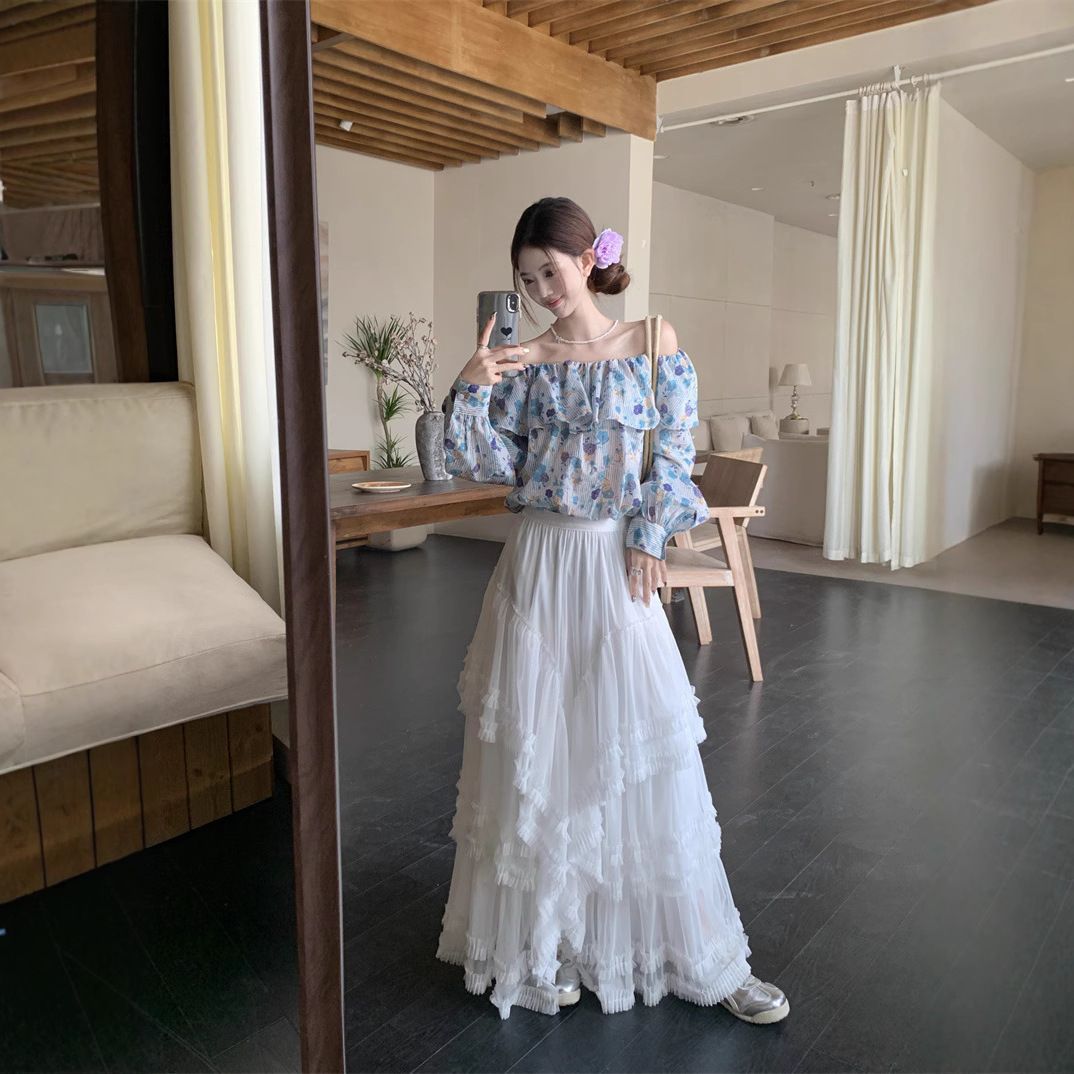 法式荷叶边一字肩碎花长袖衬衫女+重工百搭白色网纱长裙约会逛街**:温柔浪漫的蕾丝元素,让你在人群中脱颖而出,成为他眼中最美的风景! * **上班通勤**:简约大气的设计,又不失优雅气质,让你轻松应对职场各种场合! * **闺蜜聚会**:精致时尚的造型,让你成为聚会焦点,和闺蜜一起美美哒!