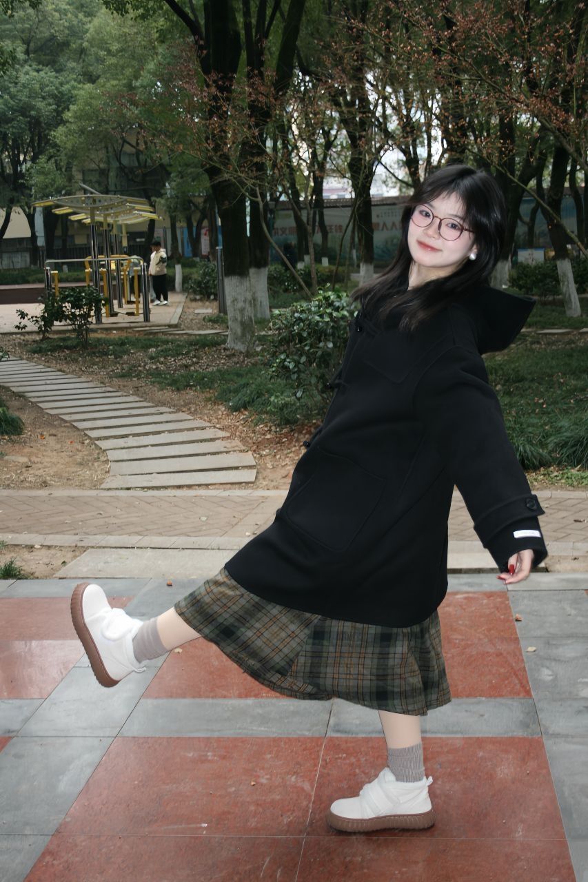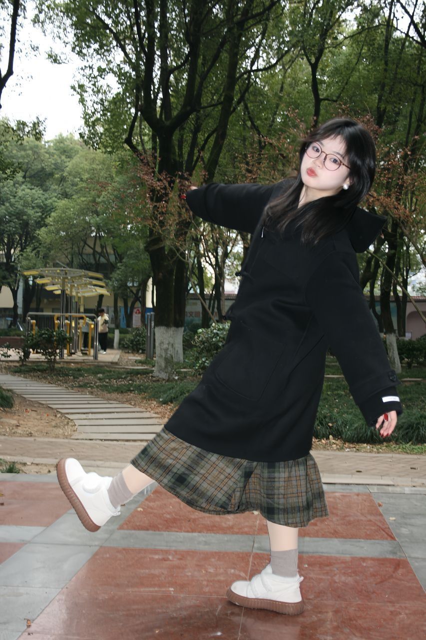 大衣这样穿真的特别青春活力呀!配上闪闪的耳环,在公园拍照真的太出片了 👔 上衣:7788呢子大衣 👖 下装:格子半身裙 👟 鞋子:南在南方
