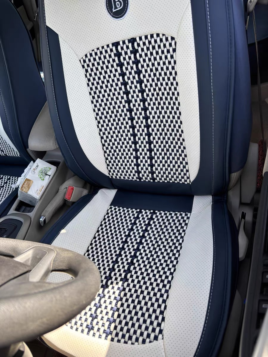 高端纳帕皮材质,四季可用,秋冬用也很可。全包围,但预留安全气囊口哦,不用担心。蓝色超级简约和高级,材质也很好打理,湿毛巾擦拭就好了。安装简单,一个人就可以安装,很有动手的乐趣。