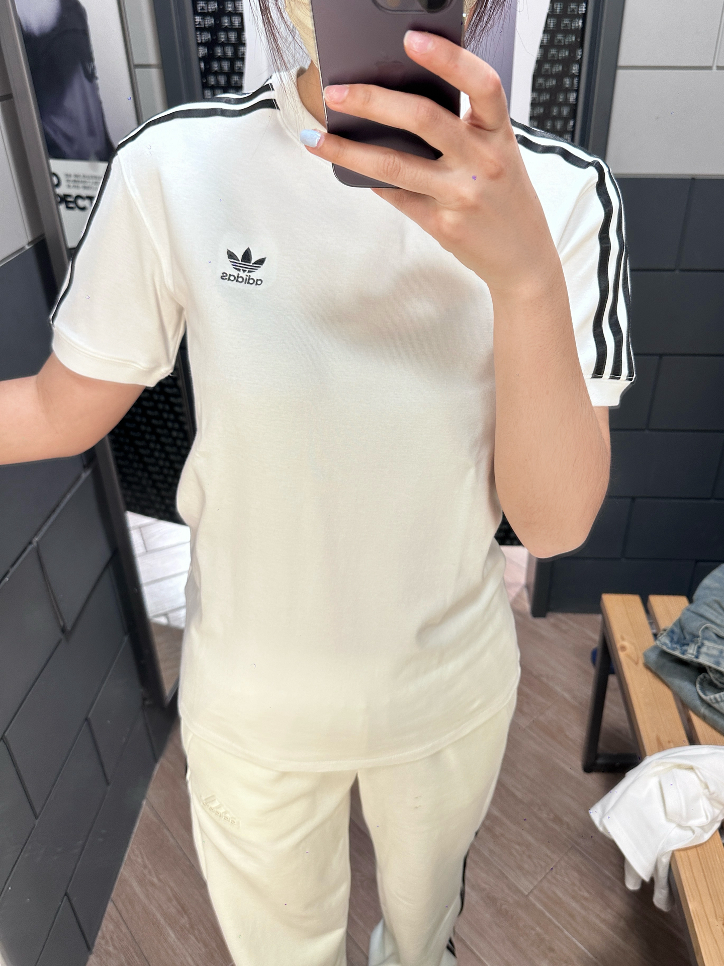 本篇笔记关联了【邝玲玲同款】adidas Originals Adicolor系列 三条纹棉质三条杠刺绣小标修身穿搭落肩袖圆领套头短袖T恤 女装 IR8052 白等商品,为用户提供真实的使用体验和购买参考。