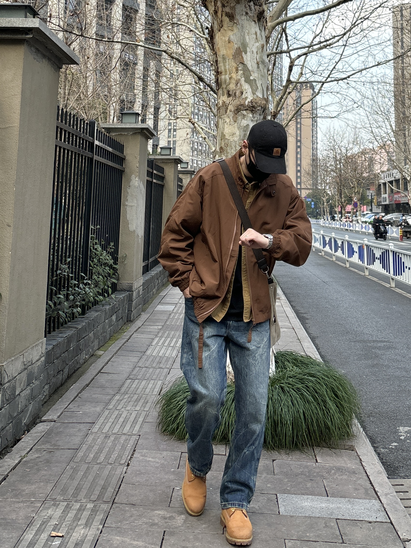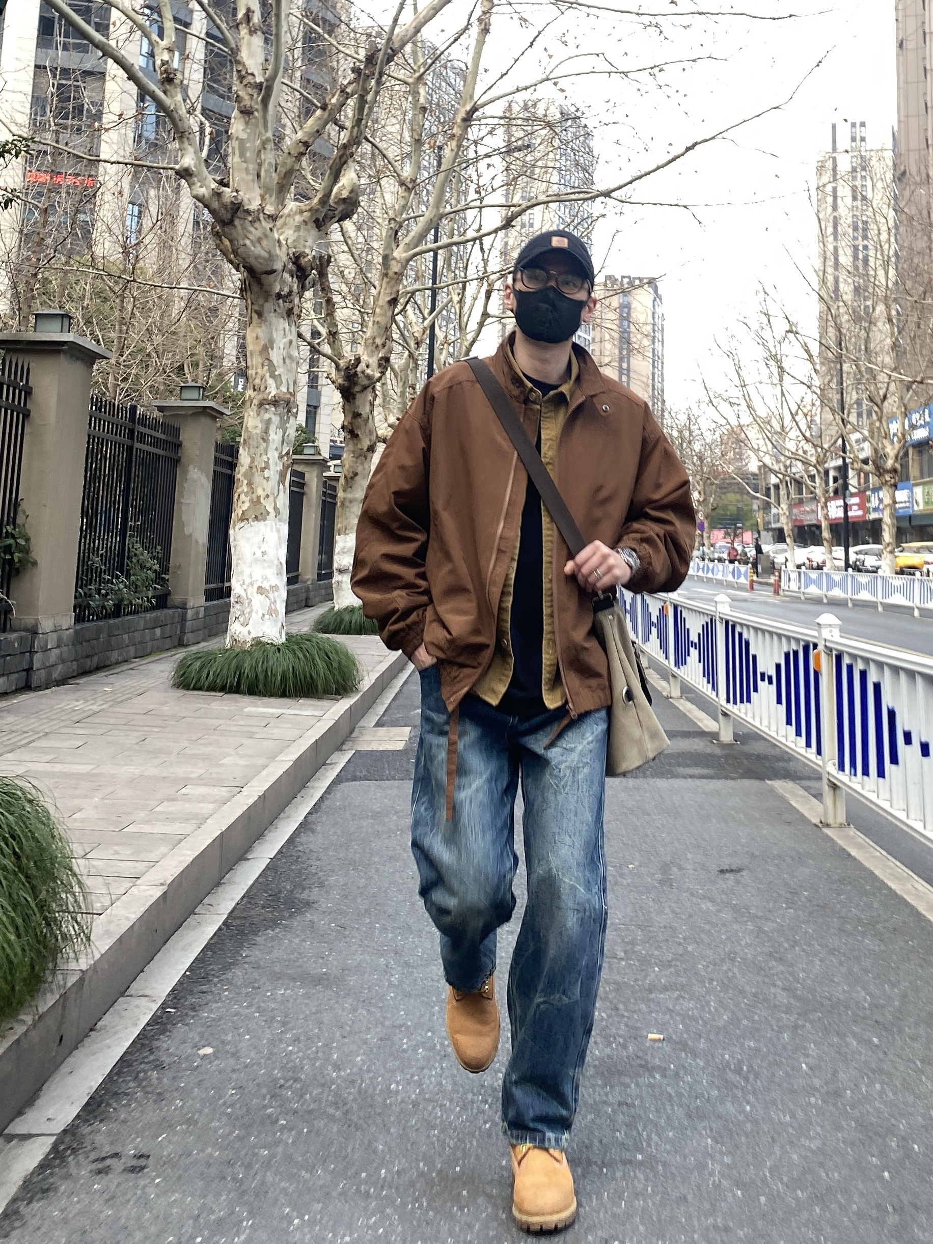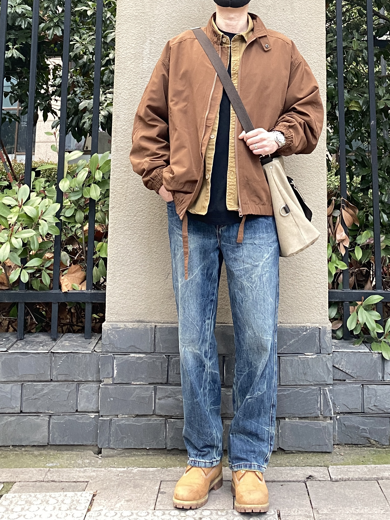 今天这套先用卡其色做旧工装衬衫做叠穿 ⬇️ 裤子选择不挑腿型的水洗直筒闪电纹牛仔裤 ⬇️ 鞋子上脚经典百搭的timberland大黄靴 ⬇️ 接着套上咖啡色宽松廓形抽绳下摆立领夹克 ⬇️ 最后背一个大容量卡其色帆布拼接手提斜挎包 - 今日搭配 衣服裤子:NICE LILI 鞋子:timberland