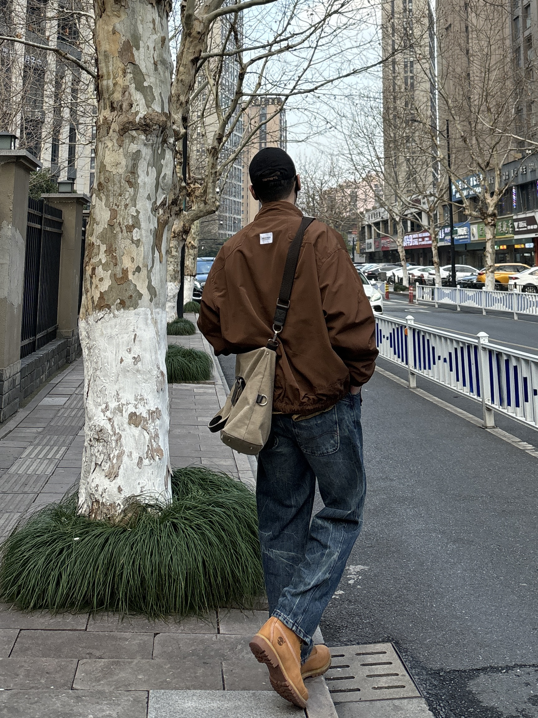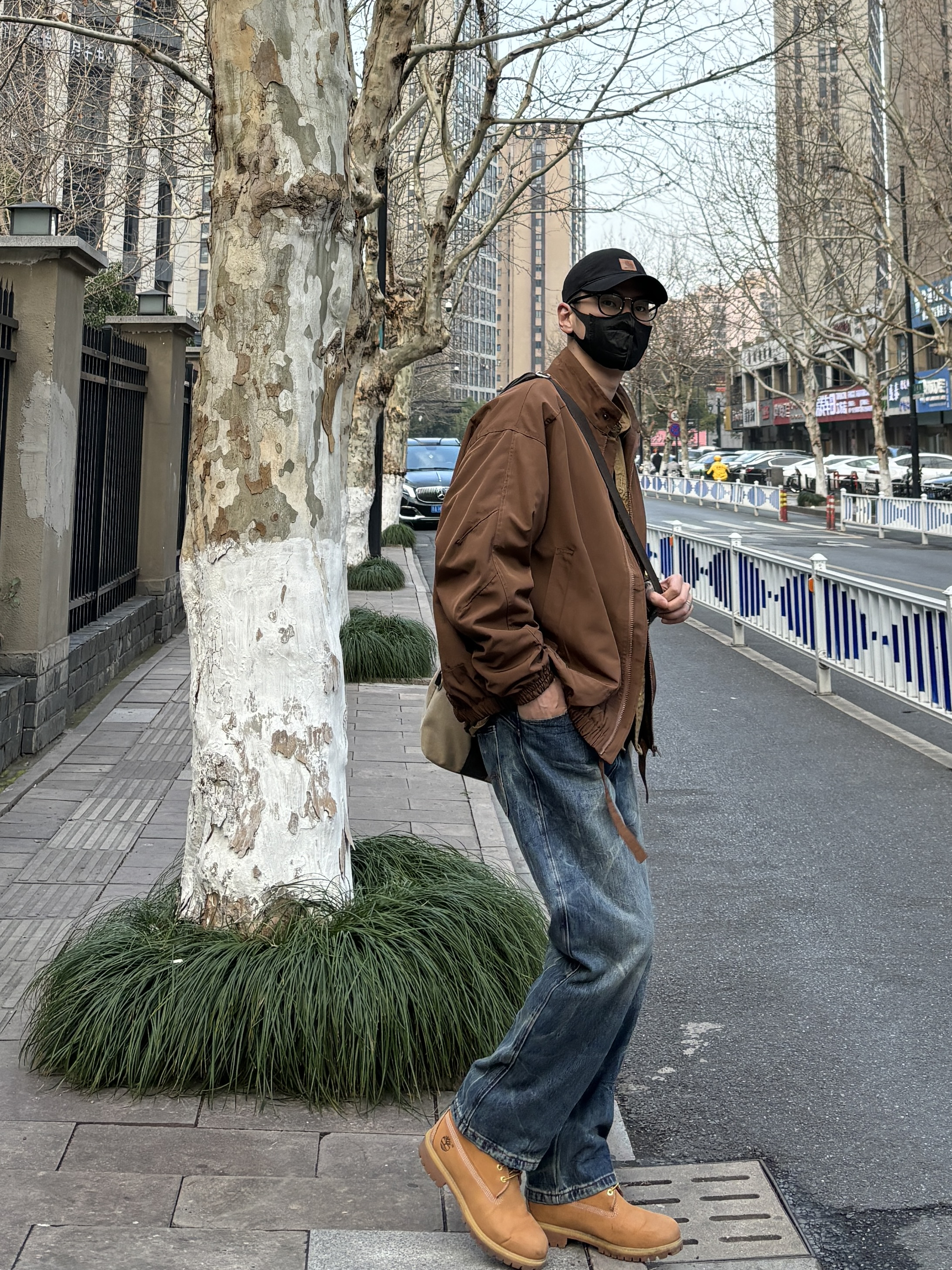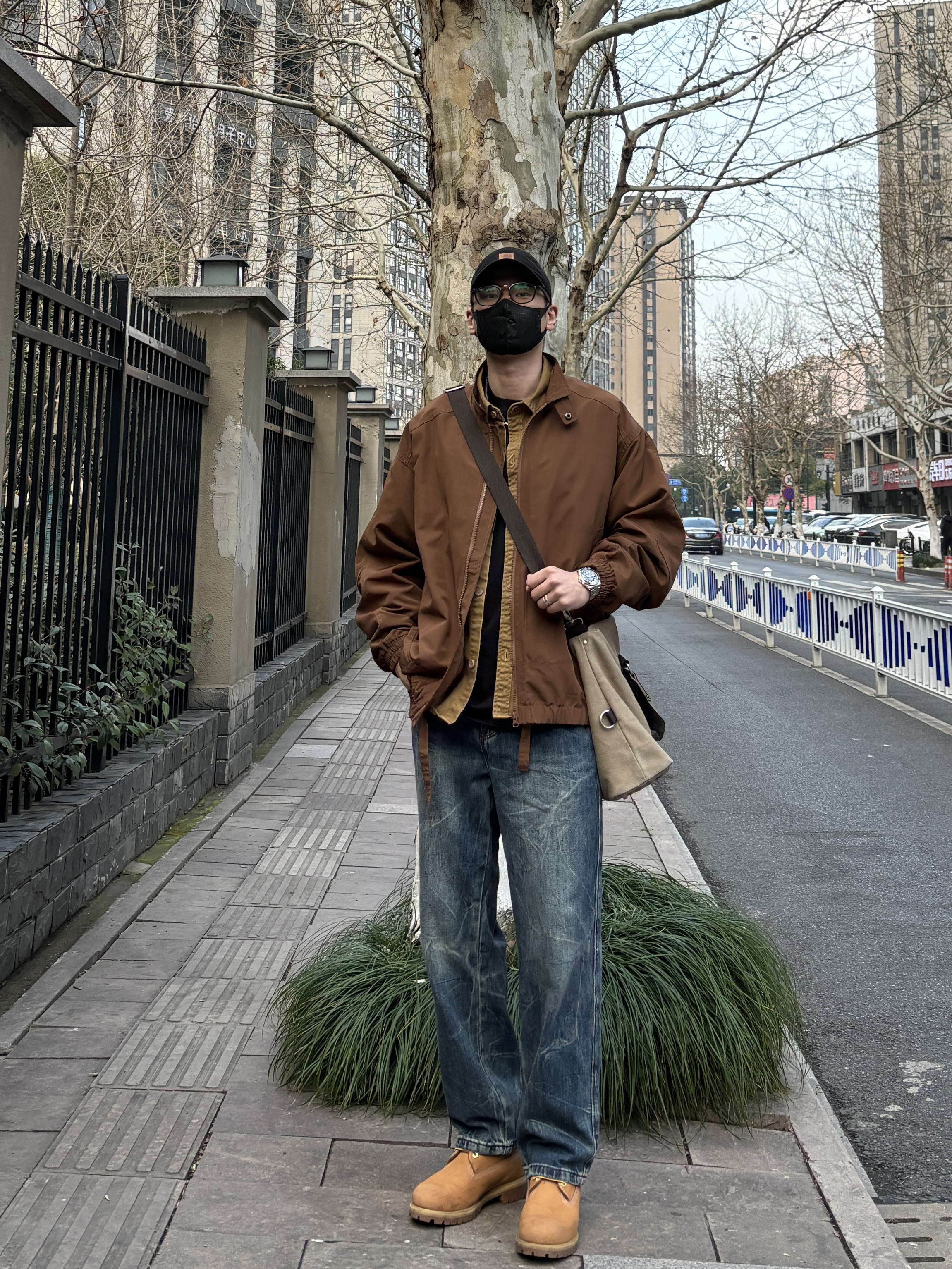 今天这套先用卡其色做旧工装衬衫做叠穿 ⬇️ 裤子选择不挑腿型的水洗直筒闪电纹牛仔裤 ⬇️ 鞋子上脚经典百搭的timberland大黄靴 ⬇️ 接着套上咖啡色宽松廓形抽绳下摆立领夹克 ⬇️ 最后背一个大容量卡其色帆布拼接手提斜挎包 - 今日搭配 衣服裤子:NICE LILI 鞋子:timberland