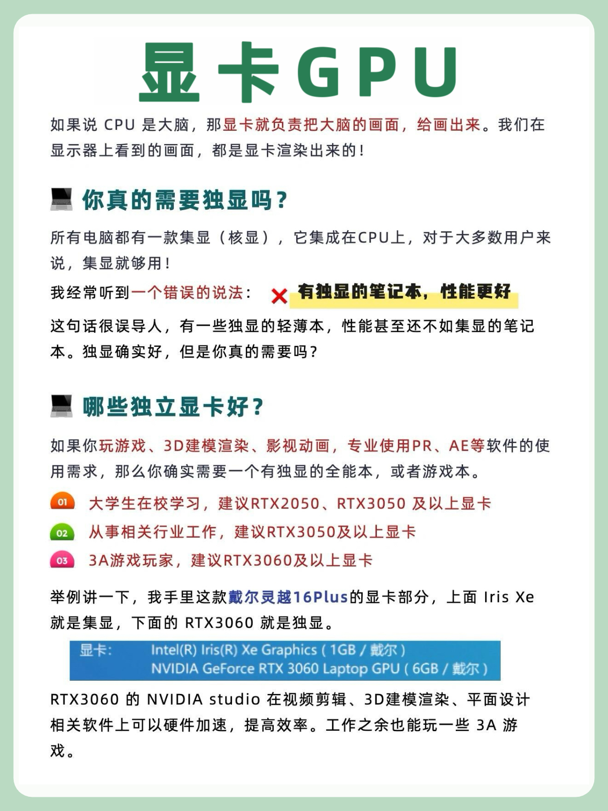 2. 显卡:对于游戏玩家和图形设计师来说,独立显卡(独显)是不可或缺的。NVIDIA和AMD是两大显卡品牌,选择时可根据个人需求和预算进行权衡。如RTX系列显卡能提供逼真的游戏画面和流畅的游戏体验,而RX系列显卡则在图形设计方面表现出色。