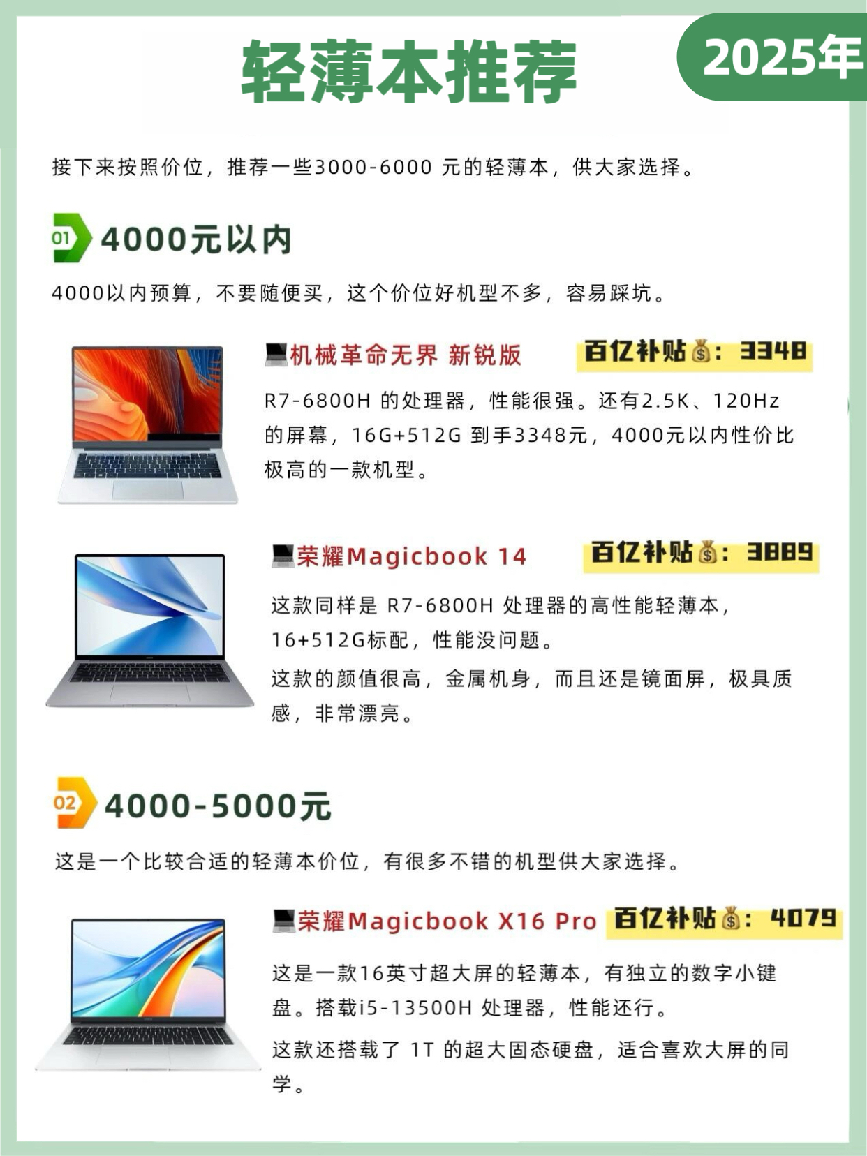 1. 5000元以下:在这个预算范围内,你可以选择一些性价比高的轻薄本或全能本。这些电脑通常能够满足日常学习和轻度娱乐的需求。