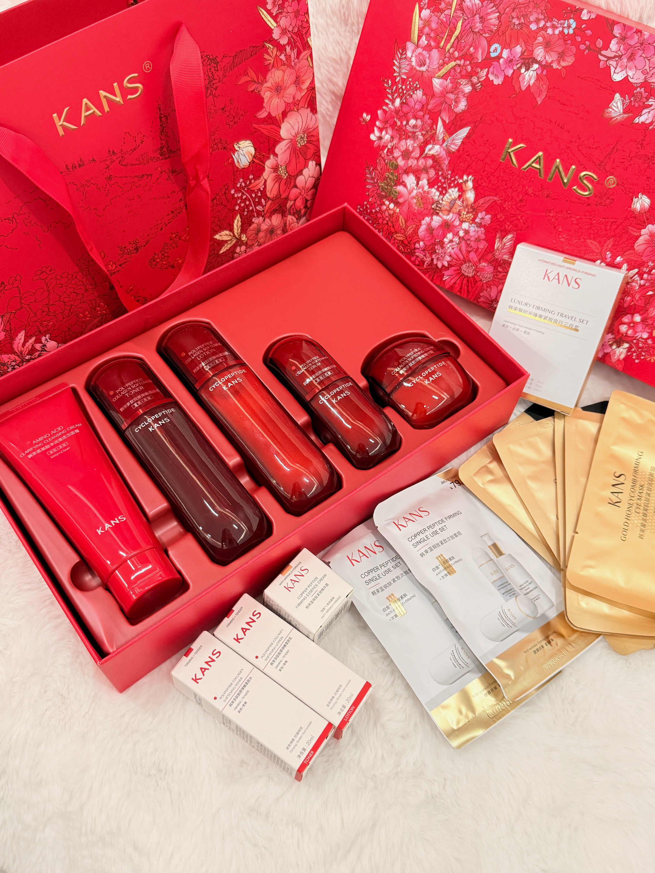 本篇笔记关联了【繁花限定】Kans/韩束 红蛮腰护肤礼盒 弹嫩保湿焕亮抗老 水100ml+乳100ml+面霜50g+精华30ml+洁面100g+礼盒等商品,为用户提供真实的使用体验和购买参考。