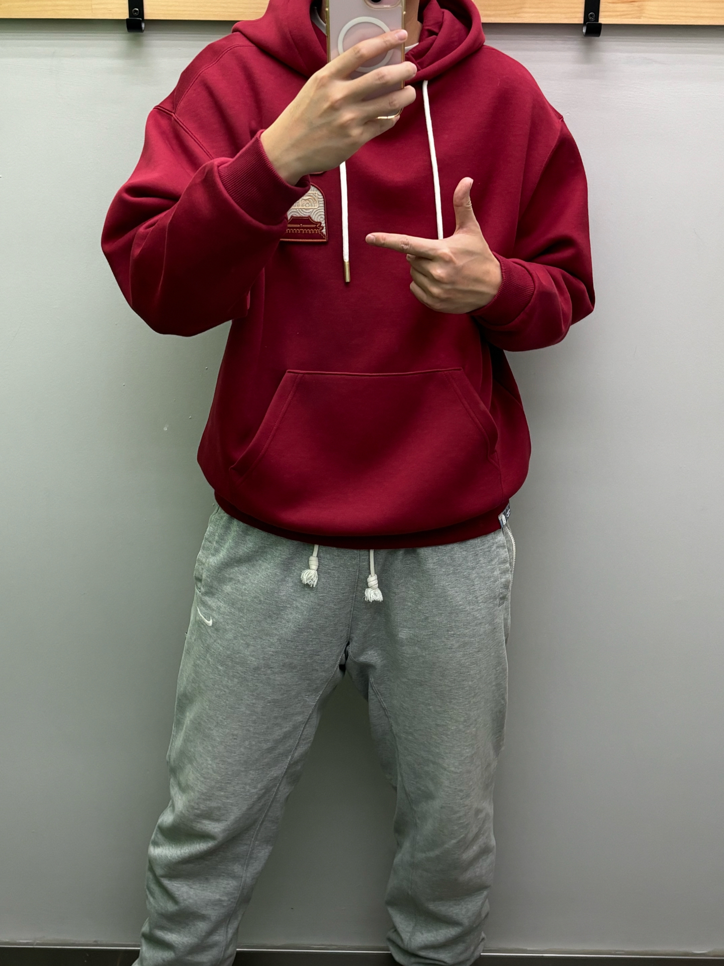 红色系肯定是必不可少了 暗红色寓意大红大紫 连帽卫衣刚好适合秋冬季节,保暖还有运动感 细节故宫摇粒绒设计和日进斗金的组合 搭配灰色束脚裤不失运动感 百搭的一件神裤,运动鞋卫衣我都穿它 上宽下窄梨形身材的兄弟们刚好 大粗腿也给你隐藏的很好 室外打球的南方 室内北方做内搭或者球场穿搭都可以 过节走访亲戚这一套就好了 图源网络侵删