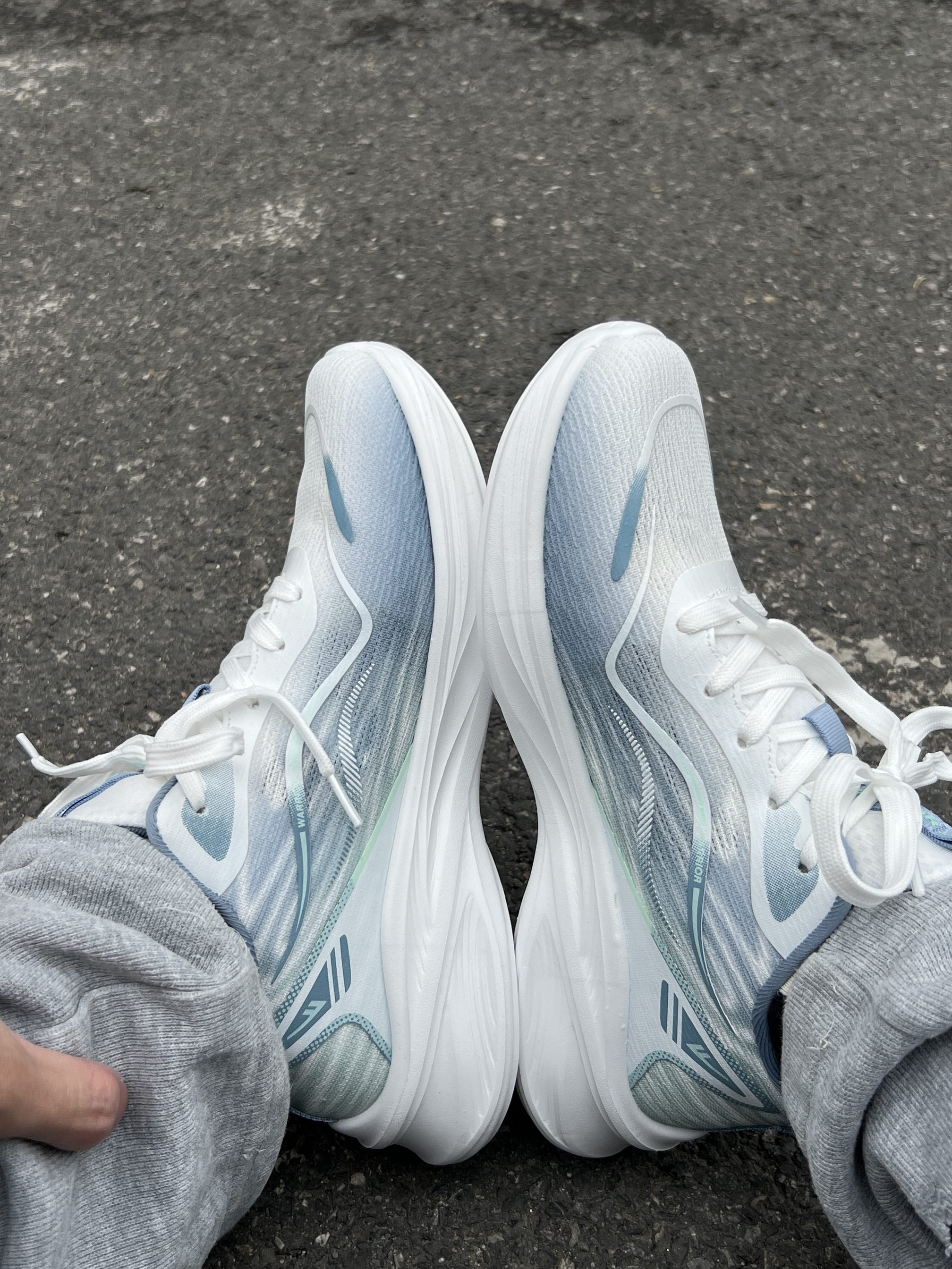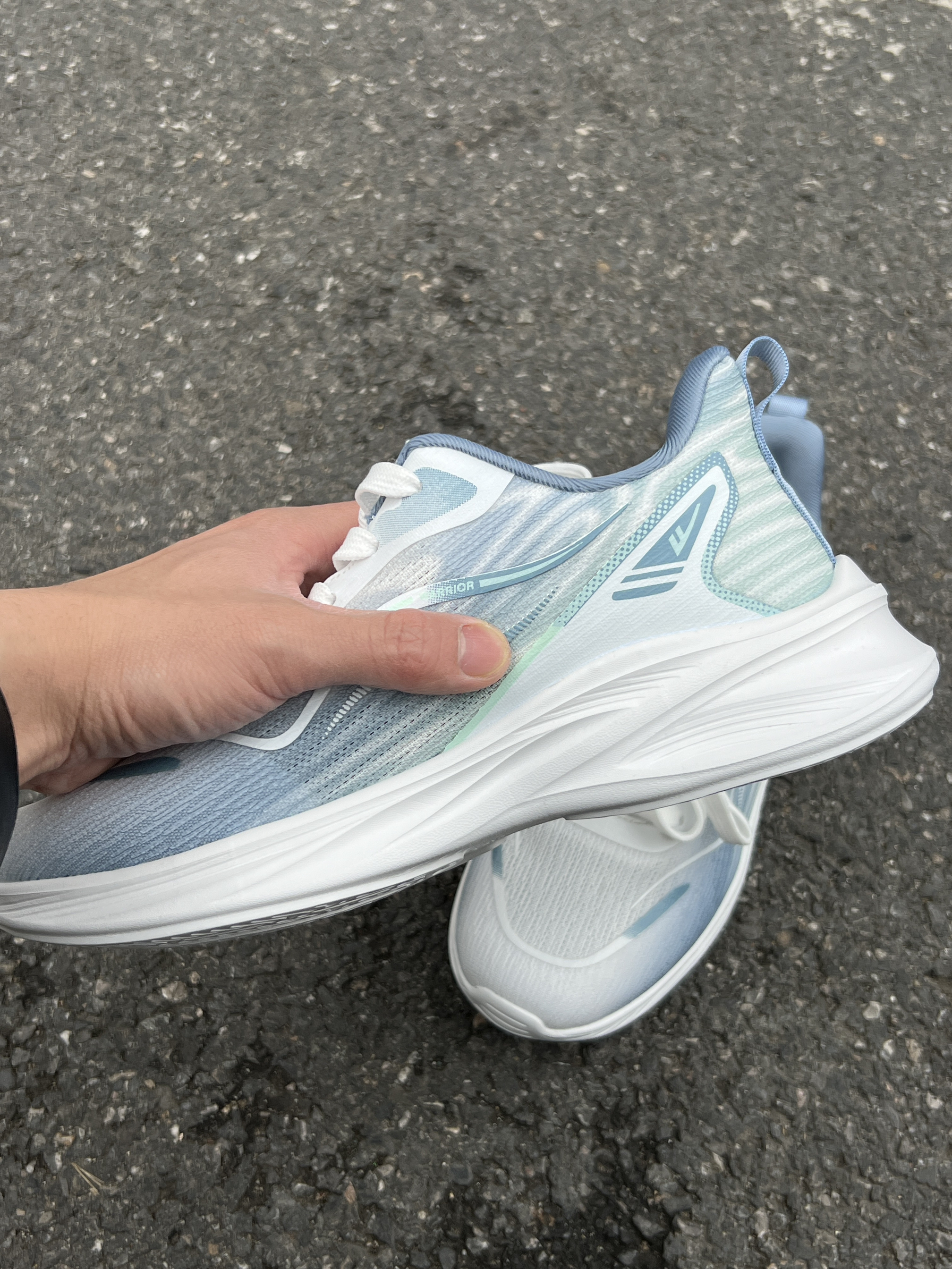 哇塞😜,回力这款竞速训练跑步鞋太赞啦😎!网面透气,夏天穿也不会闷脚。潮流的白蓝配色很吸睛,减震防滑效果也很好。男款的设计很帅气,穿上它跑步感觉超棒🤩!#回力