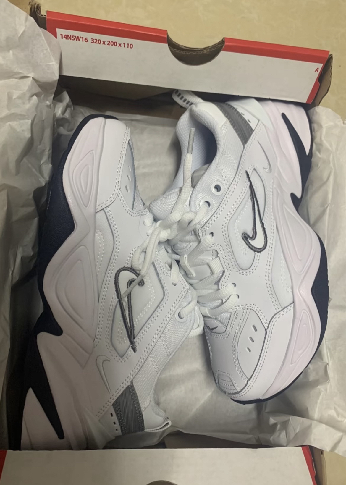跟风入的m2k 老爹鞋 比较百搭的款式 鞋底有增高 对小个子女生很友好~