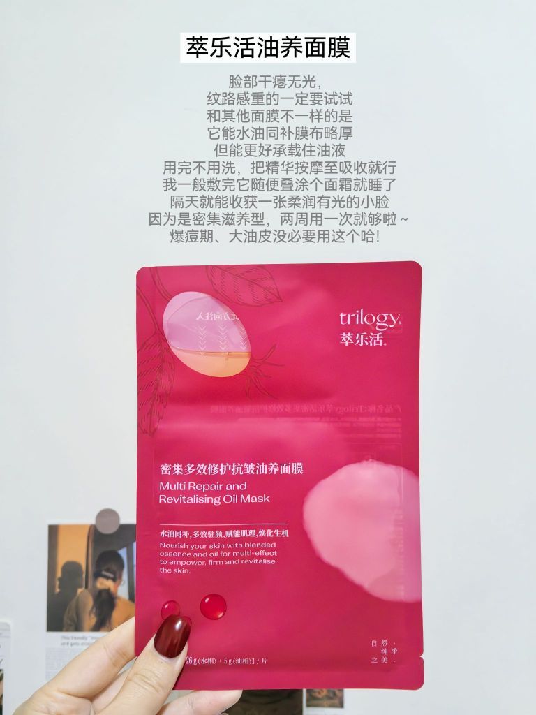 本篇笔记关联了trilogy/萃乐活 修护油敷贴片面膜 油养超红膜焕亮水油同补 密集多效修护抗皱油养面膜、L'OREAL/欧莱雅 鲜注玻色因安瓶面膜 保湿补水水光充盈膨润淡化细纹 【3.0】水润光泽、PROYA/珀莱雅 双抗弹润透亮青春精华面膜 改善暗沉细腻肌肤保湿补水焕亮抗氧化 淡黄提亮等商品,为用户提供真实的使用体验和购买参考。