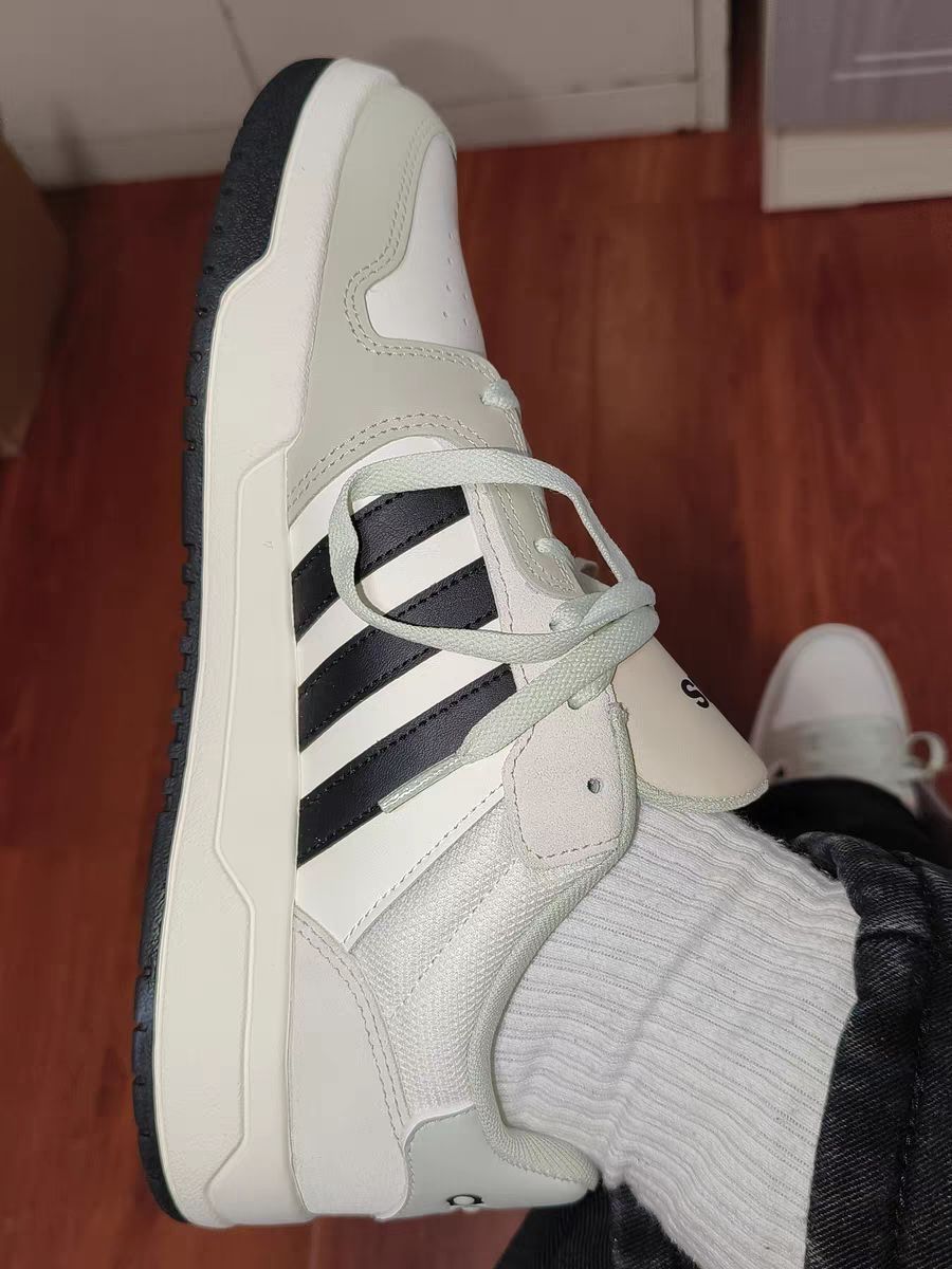 adidas neo Entrap 低帮板鞋,男女同款的白黑棕配色简直 yyds!这百搭程度,不管你是酷帅风还是休闲风,都能完美适配,轻松拿捏时尚感。 它的鞋面材质很耐造,日常通勤、运动都不怕磨损。穿着也舒服,鞋垫软乎乎,走久了脚也不疼。不过呢,它透气性一般,夏天穿可能会有点闷热。而且新鞋刚开始穿,脚跟处会有点磨,穿几次磨合好了就没问题。但综合下来,性价比超高,真心推荐给想入手一双实用板鞋的友友...