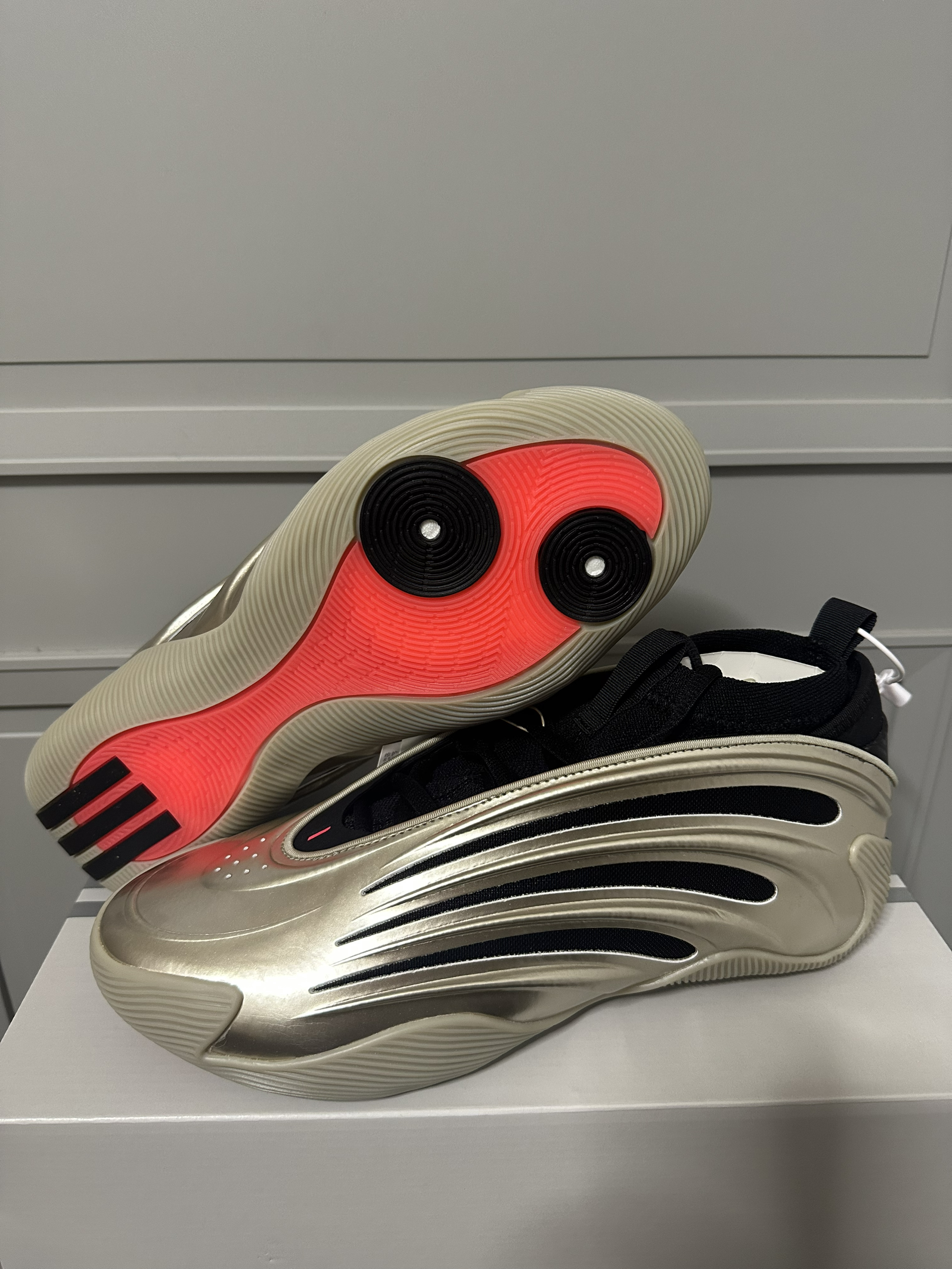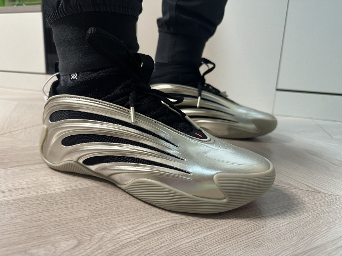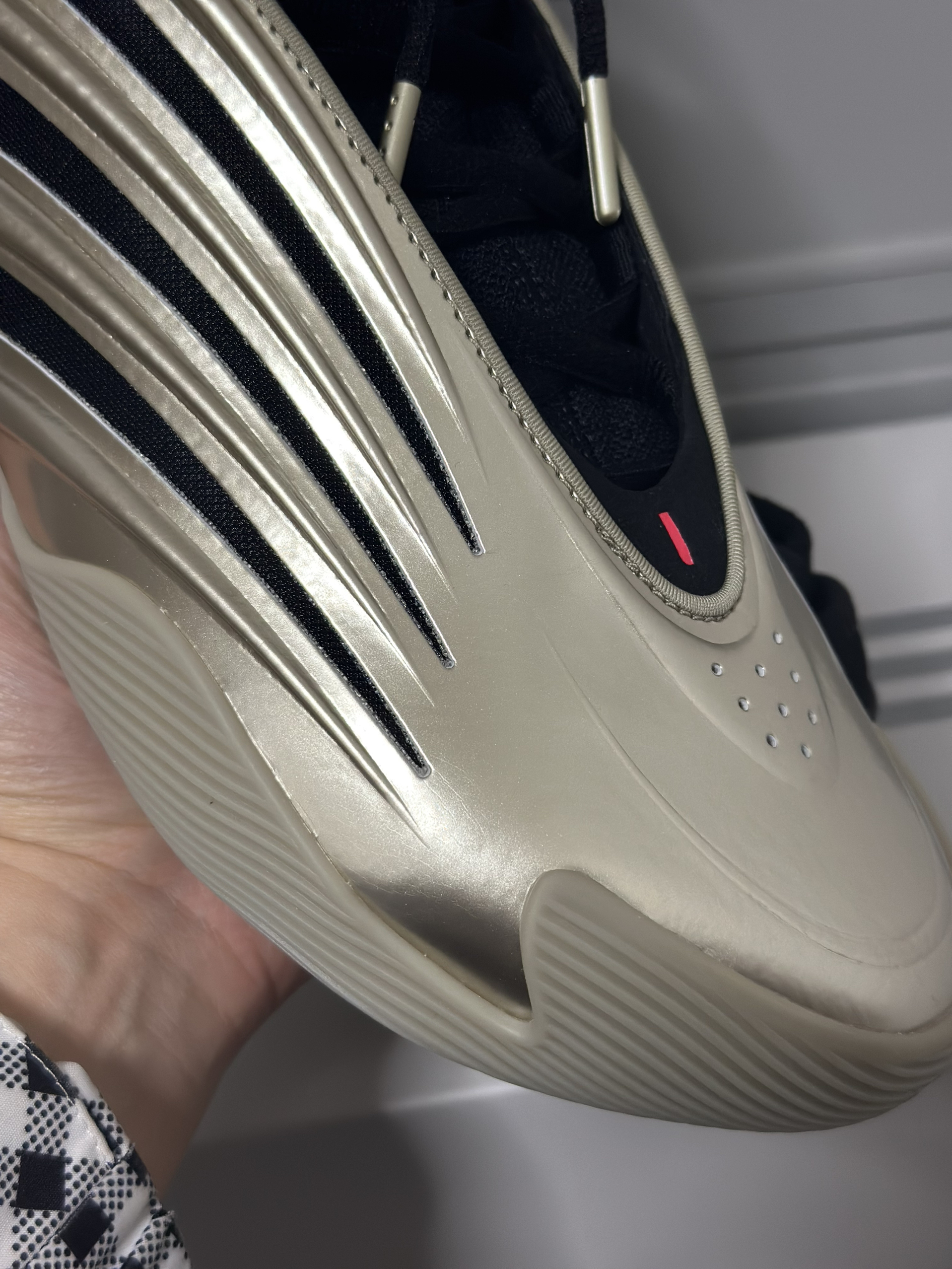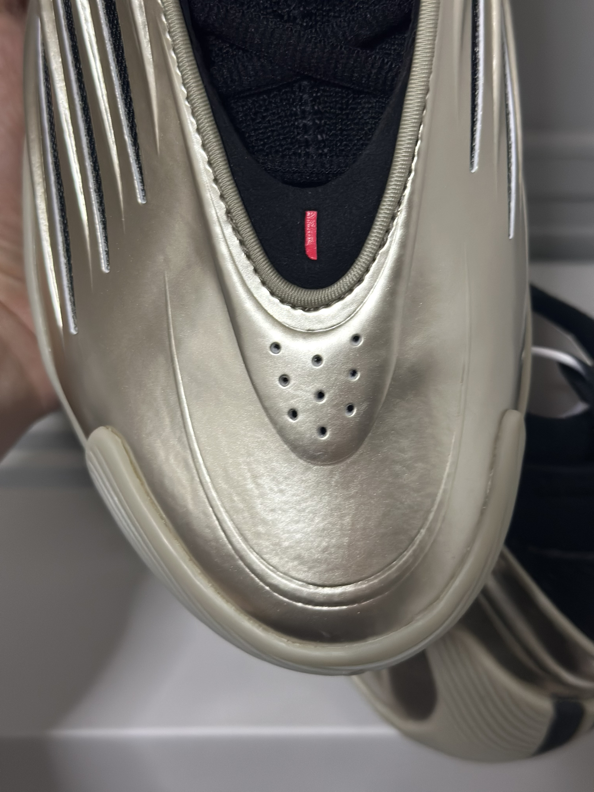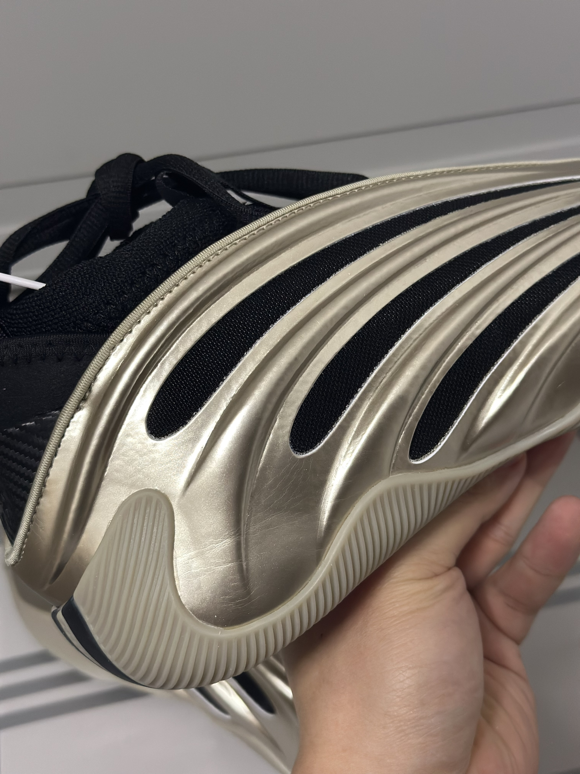 哈登9第二个配色也是全明星配色“赛博金” 一开始有点像银色的鞋子氧化的感觉,但是这种金属颜色真的非常帅 拿着手上有点不舍的穿呀 哈哈哈
