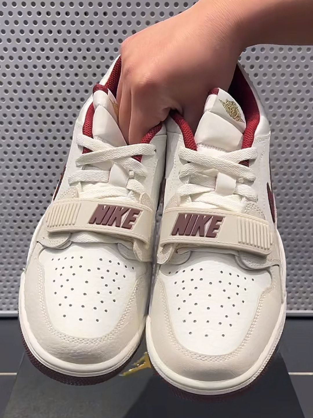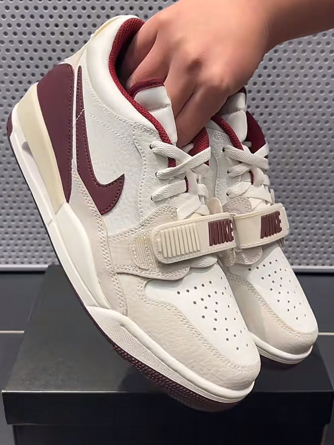AJ312米色暗红色配色真的太绝了!米色的主色调搭配暗红色的细节,复古又高级,上脚瞬间就能成为全场焦点。鞋身融合了AJ3的爆裂纹、AJ1的飞翼标志,再加上魔术贴设计,每一处细节都充满了故事感。复古与现代的完美融合,真的爱了!