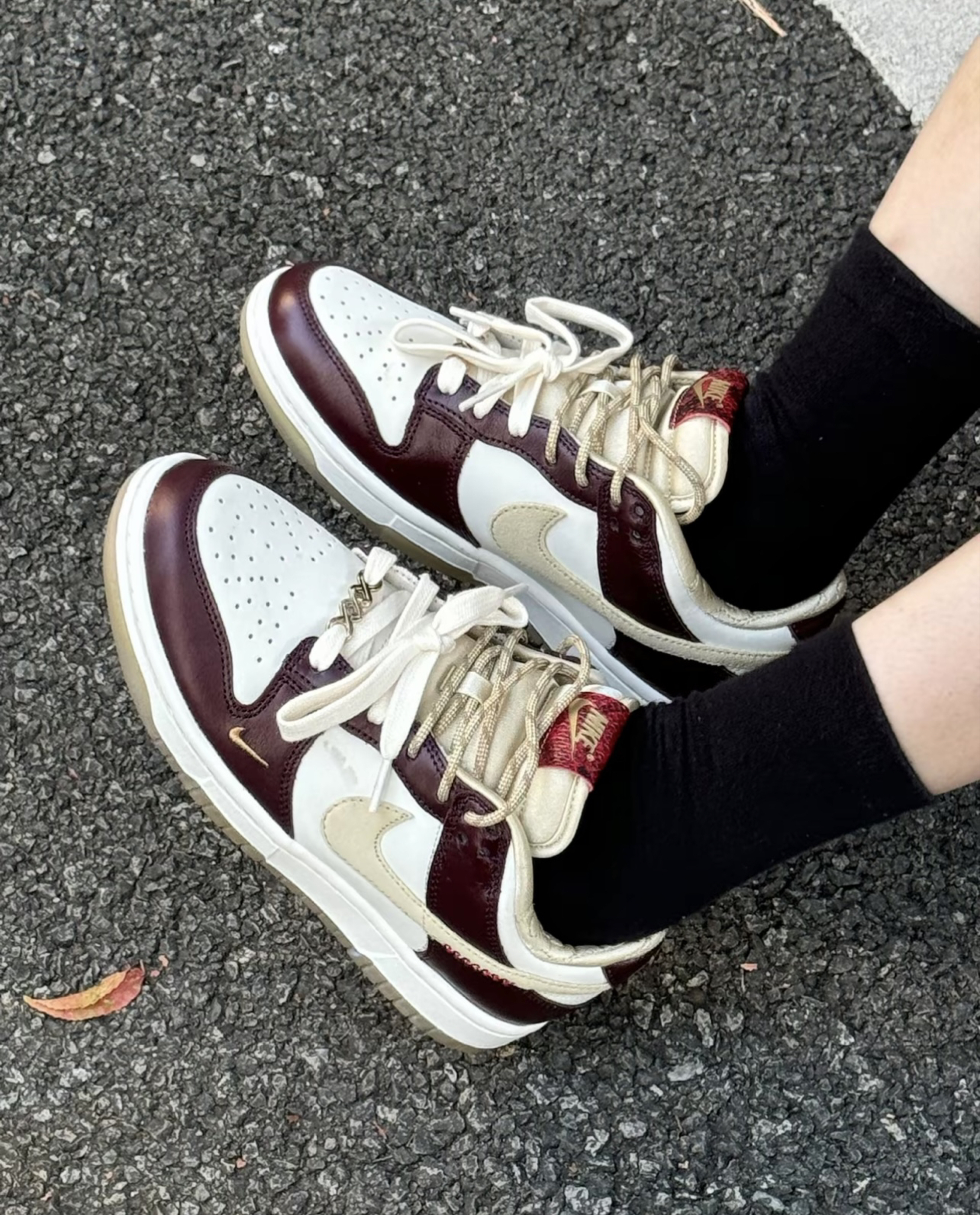 这双耐克Air Force 1系列的板鞋,鞋面主要为白色光面皮革材质,方便打理。侧边的标志性Swoosh标志、鞋后跟以及鞋底部分采用酒红色配色,整体设计经典又洋气。它具备约3.5厘米的增高效果,搭载全掌内置气垫,脚感舒适,还有刺绣logo和橡胶防滑大底,既时尚百搭又适合日常穿着 。